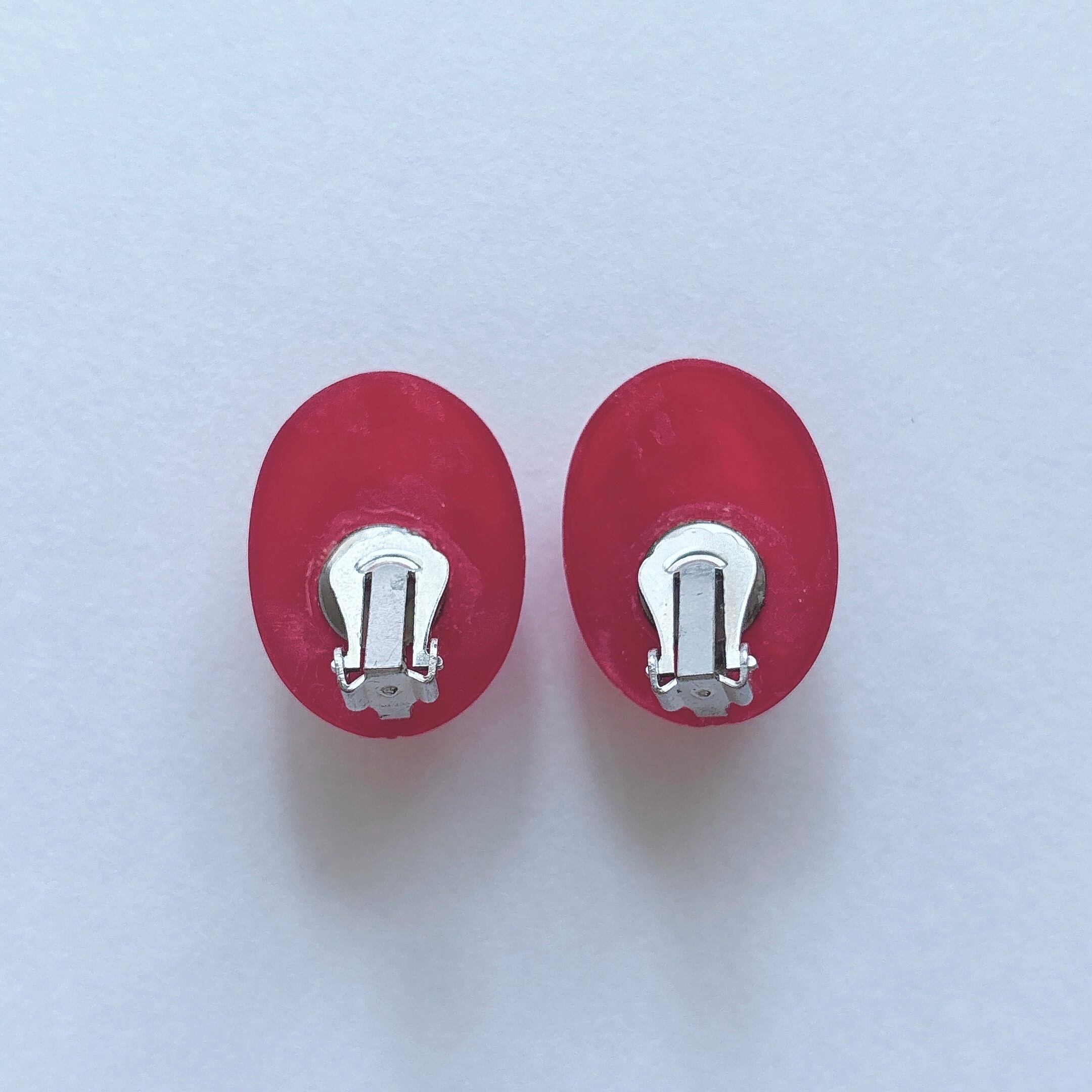Vintage 50s - 60s red plastic white faux pearl beads oval earrings ヴィンテージ 50年代 - 60年代 レッド プラスチック ホワイト フェイクパール ビーズ オーバル 楕円形 イヤリング