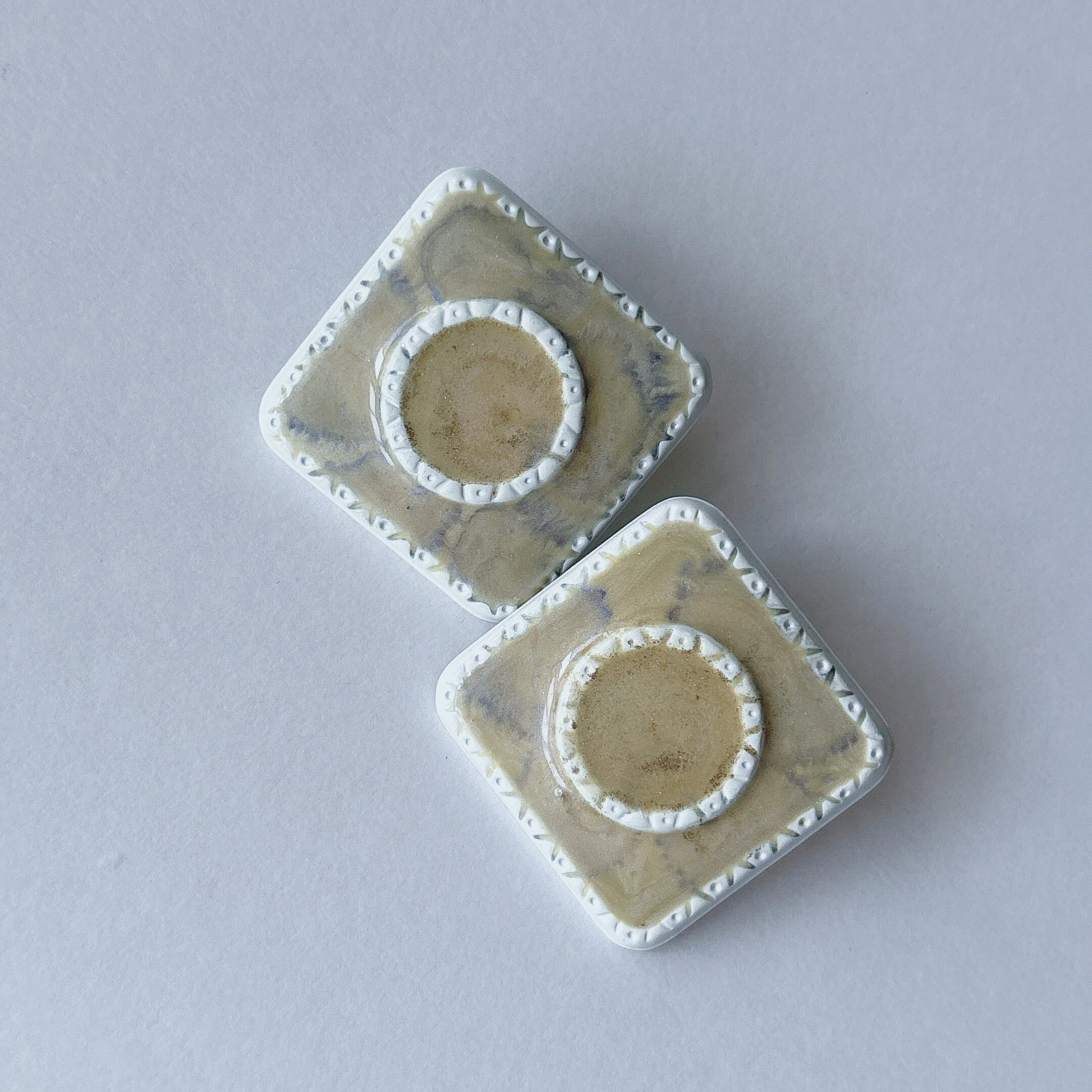 Vintage 80s white grege gray beige enamel gold blue marble square earrings ヴィンテージ 80年代 ホワイト グレージュ グレー ベージュ エナメル ゴールド ブルー マーブル スクエア 四角 ピアス | OBAKEPEACH