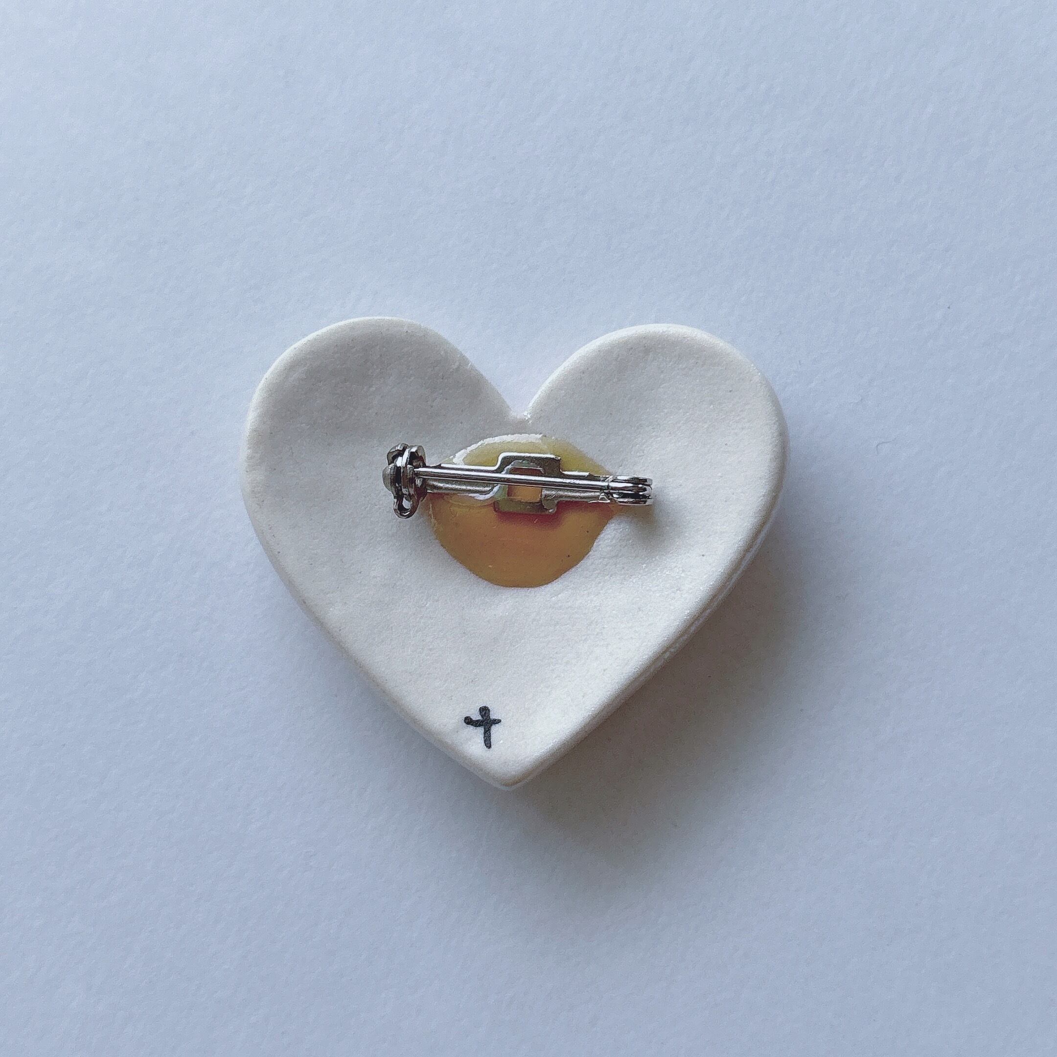 Vintage 80s white porcelain heart tulip flower ribbon brooch ヴィンテージ 80年代 ホワイト ポーセリン 陶磁器 チューリップ 花 フラワー リボン ブローチ