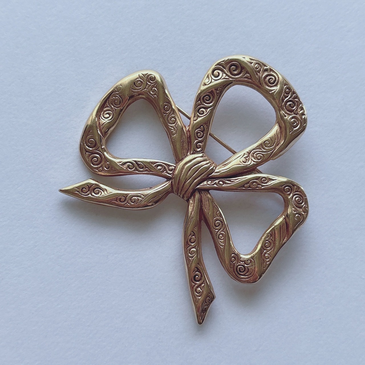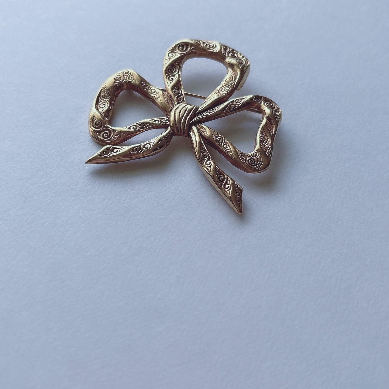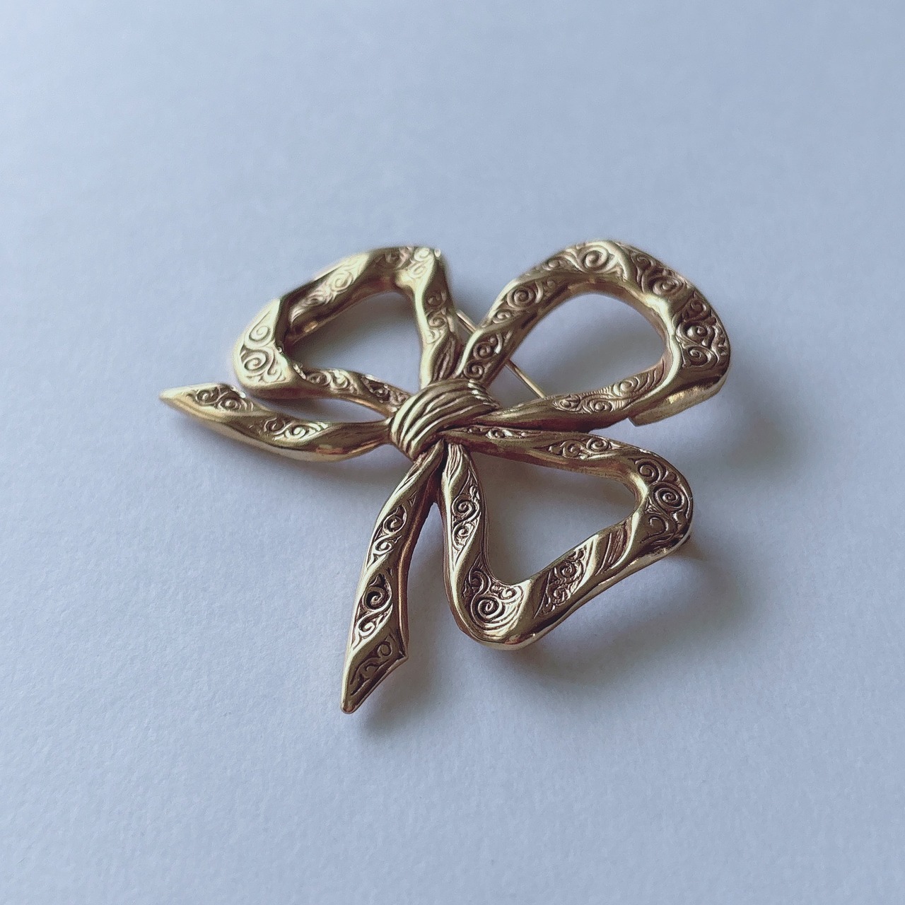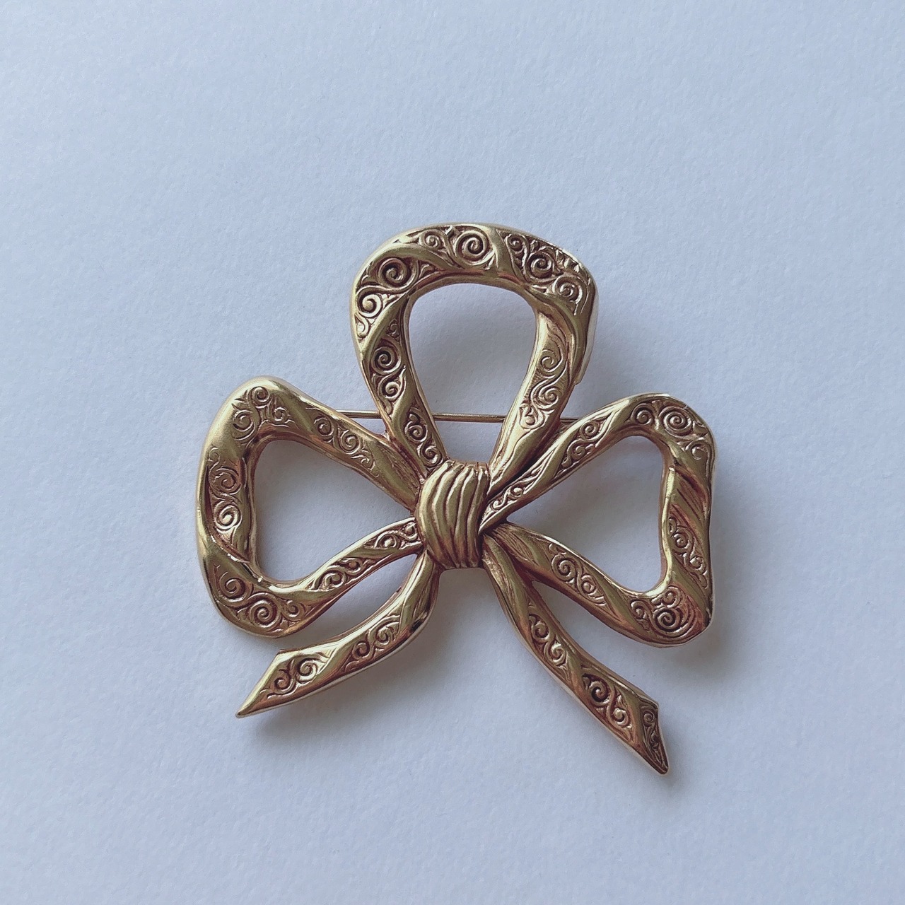 Vintage gold tone ribbon brooch ヴィンテージ ゴールドトーン リボン ブローチ