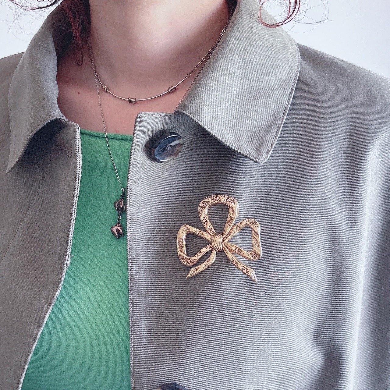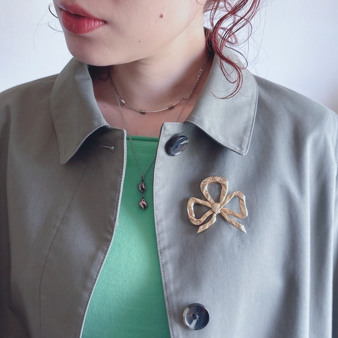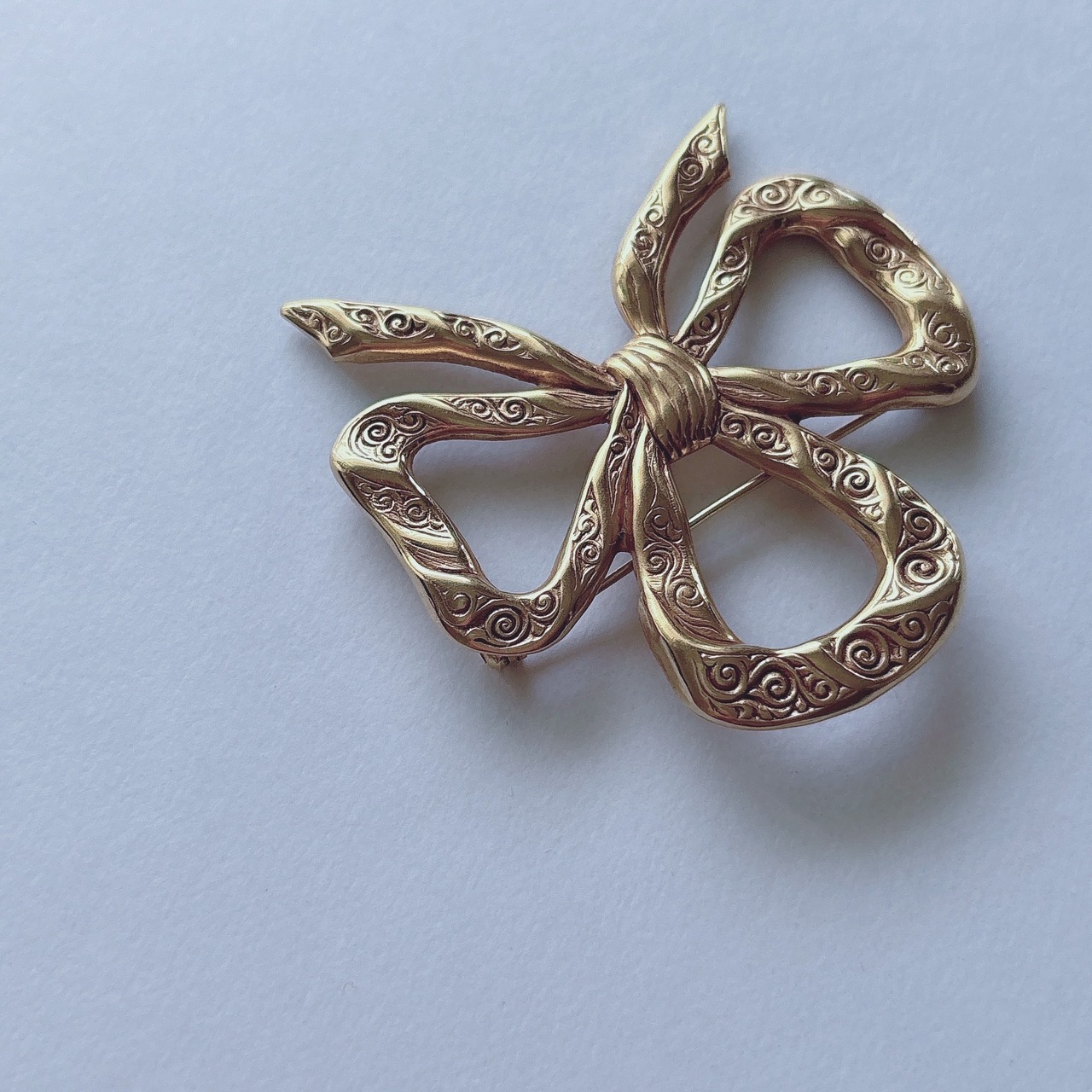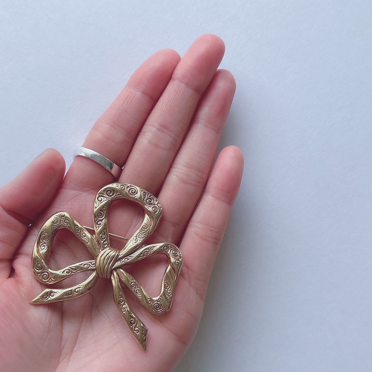 Vintage gold tone ribbon brooch ヴィンテージ ゴールドトーン リボン ブローチ