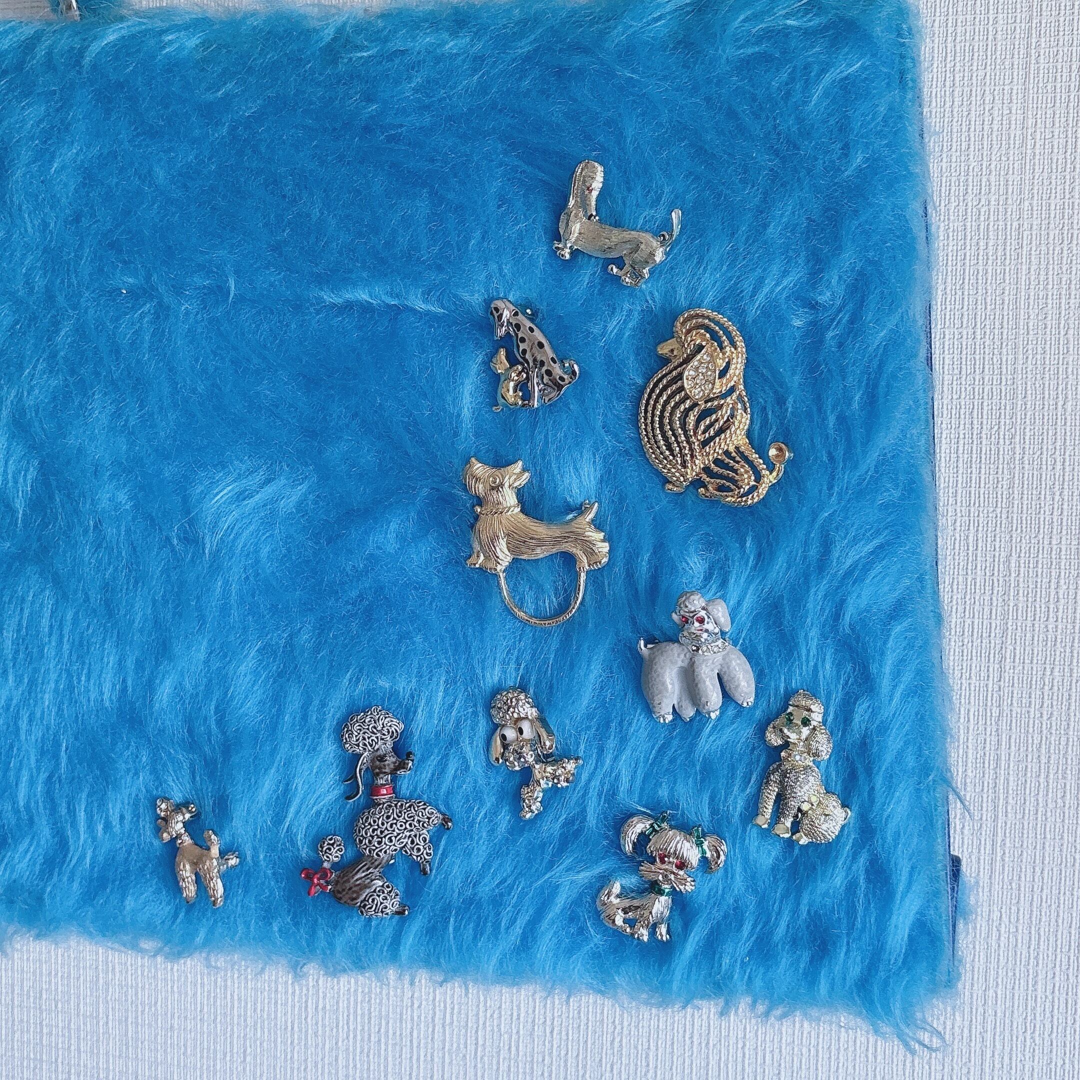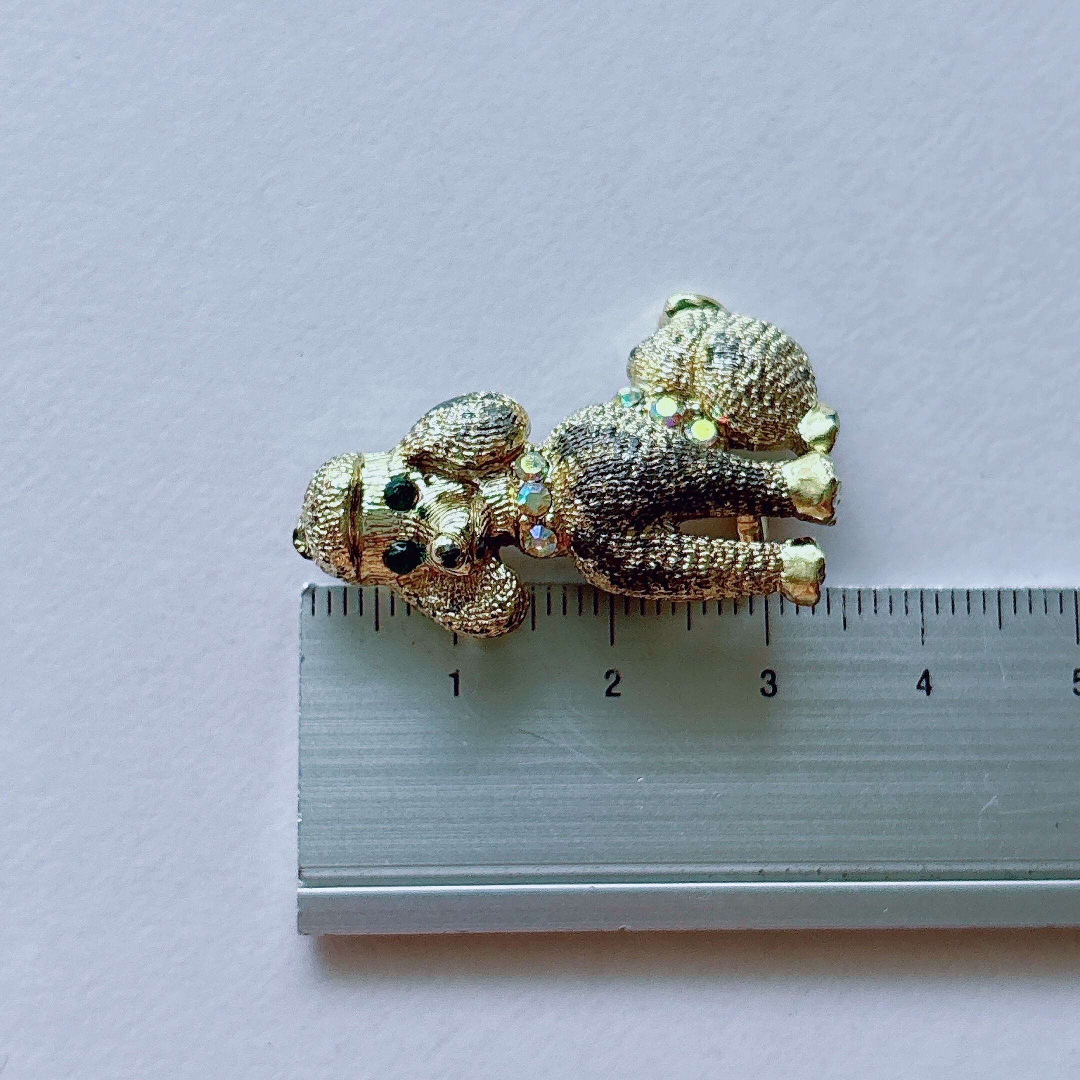 Vintage 60s - 70s gold tone clear green rhinestone dog poodle brooch ヴィンテージ 60年代 - 70年代 ゴールドトーン クリア グリーン ラインストーン 犬 プードル ブローチ | OBAKEPEACH