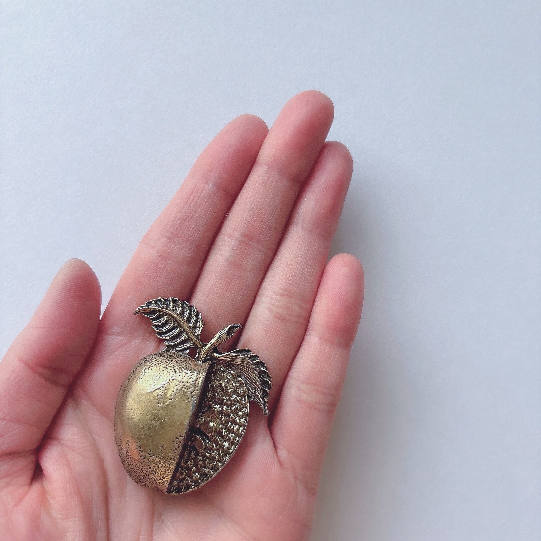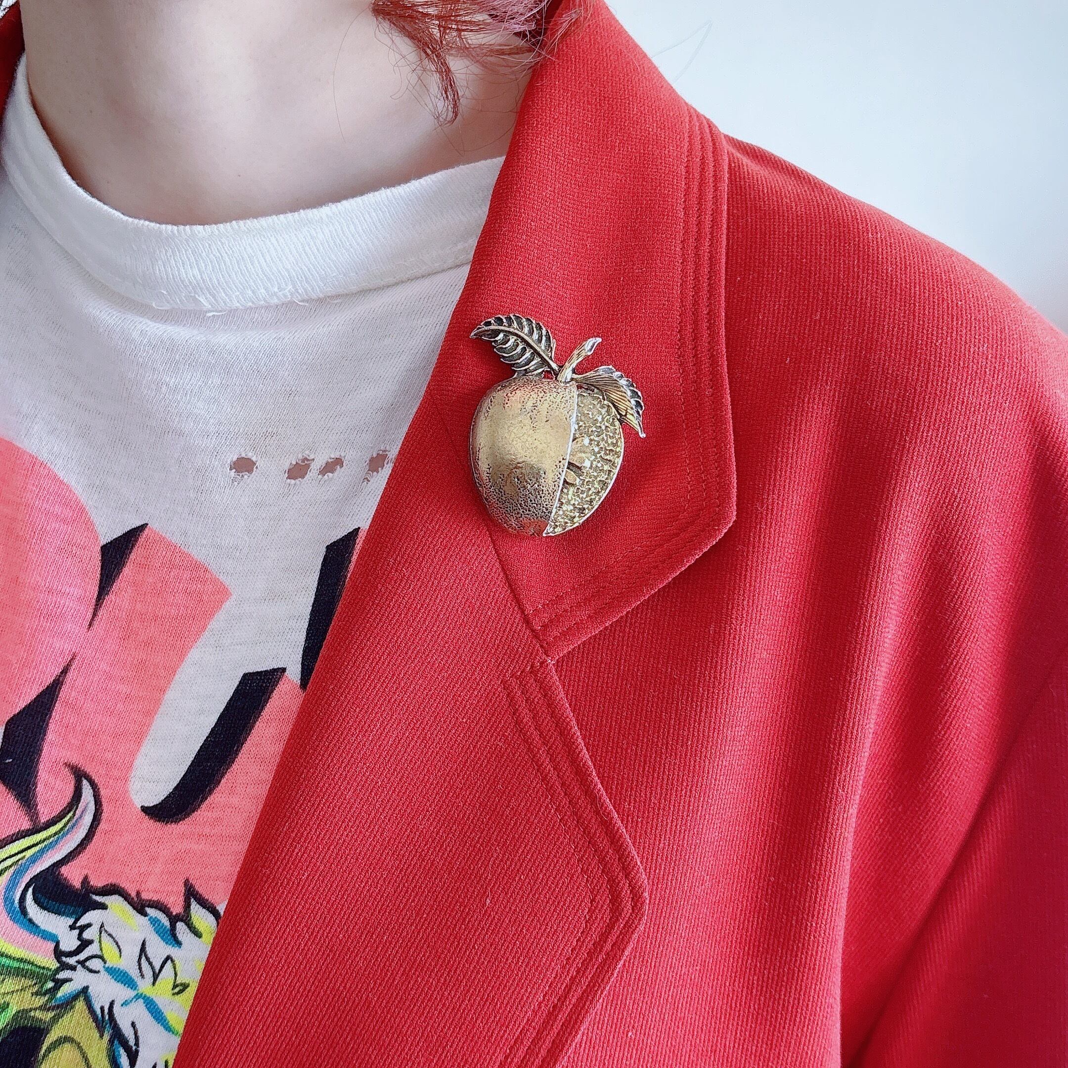 ZENTALL Vintage 60s - 70s gold tone apple brooch ヴィンテージ 60年代 - 70年代 ゴールドトーン アップル りんご ブローチ | OBAKEPEACH
