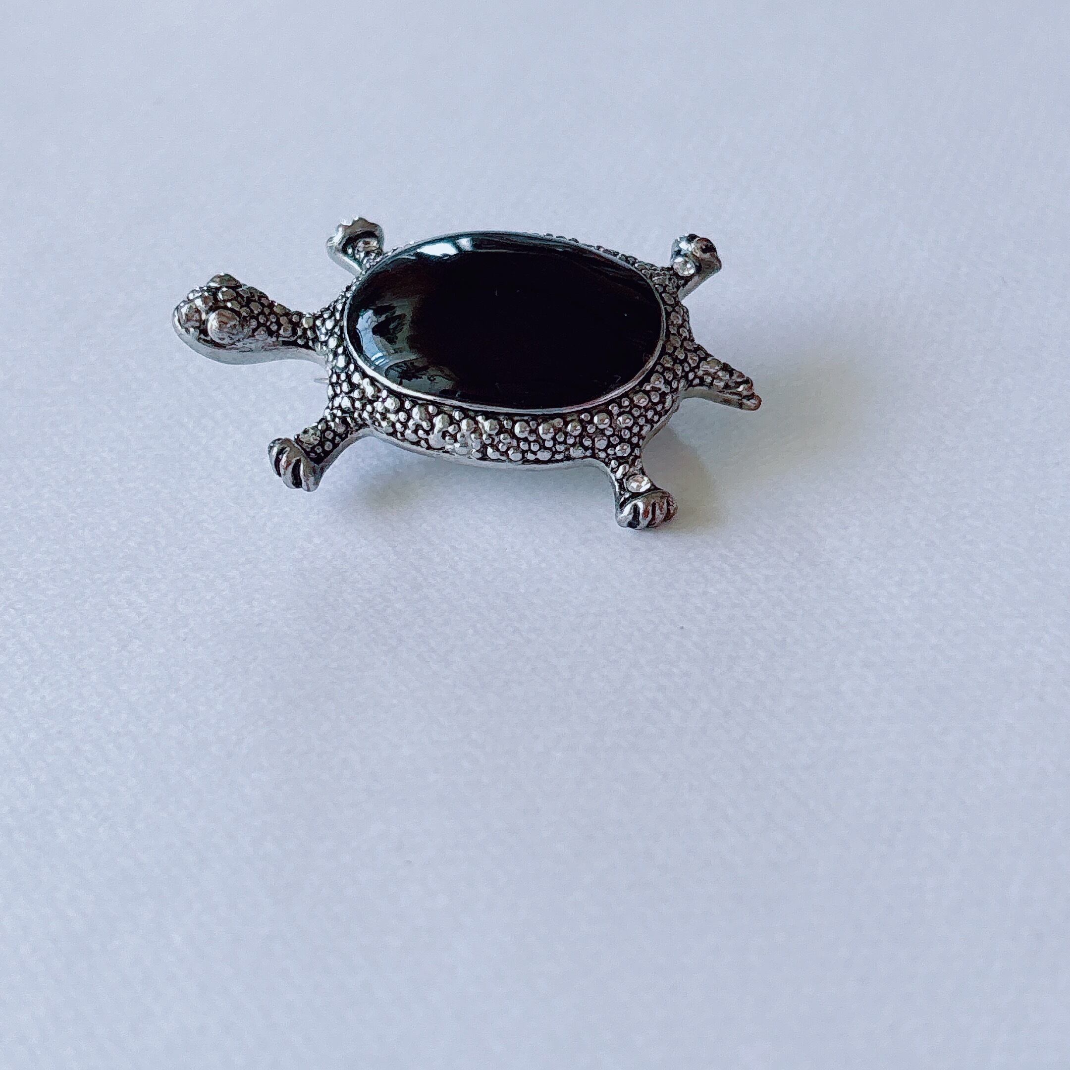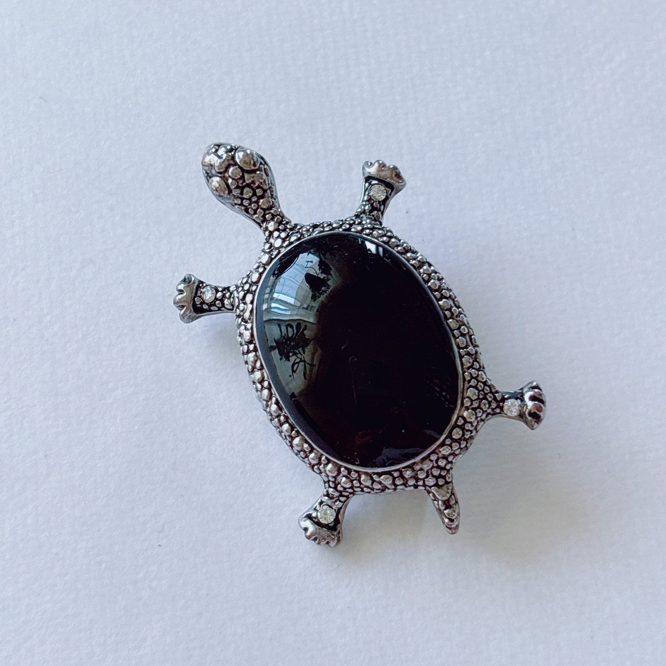 Vintage silver tone black clear rhinestone turtle brooch ヴィンテージ シルバートーン ブラック クリア ラインストーン タートル 亀 ブローチ | OBAKEPEACH