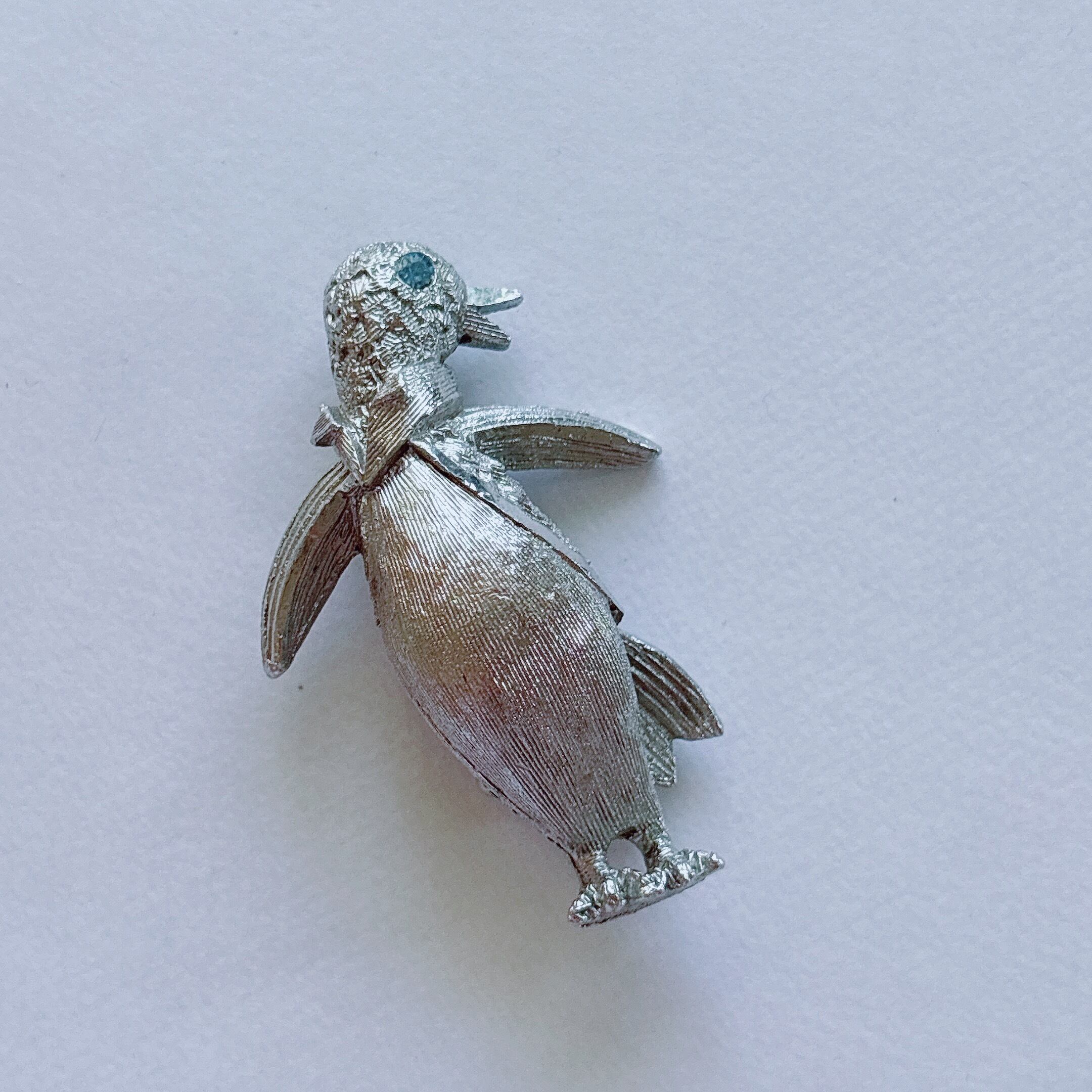 Vintage 60s - 70s silver tone blue rhinestone penguin brooch ヴィンテージ 60年代 - 70年代 シルバートーン ペンギン ブルー ラインストーン ブローチ | OBAKEPEACH