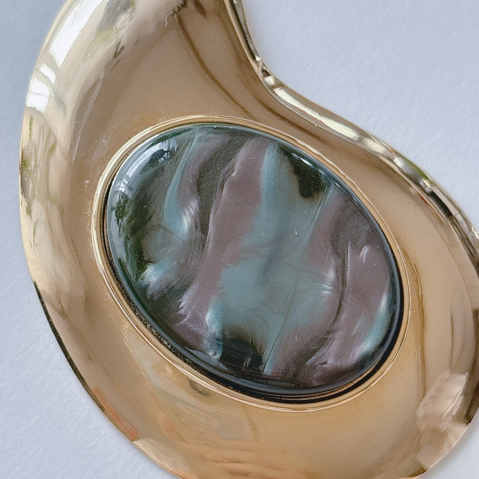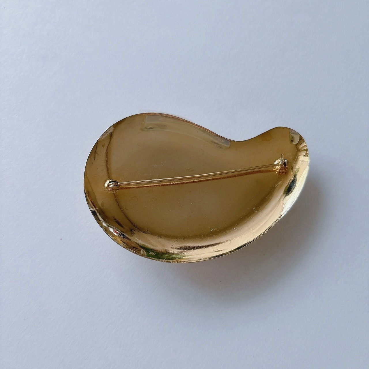 Vintage gold tone drop green oval plastic cabochon brooch ヴィンテージ ゴールドトーン ドロップ グリーン プラスチック オーバル 楕円形 プラスチック カボション ブローチ | OBAKEPEACH