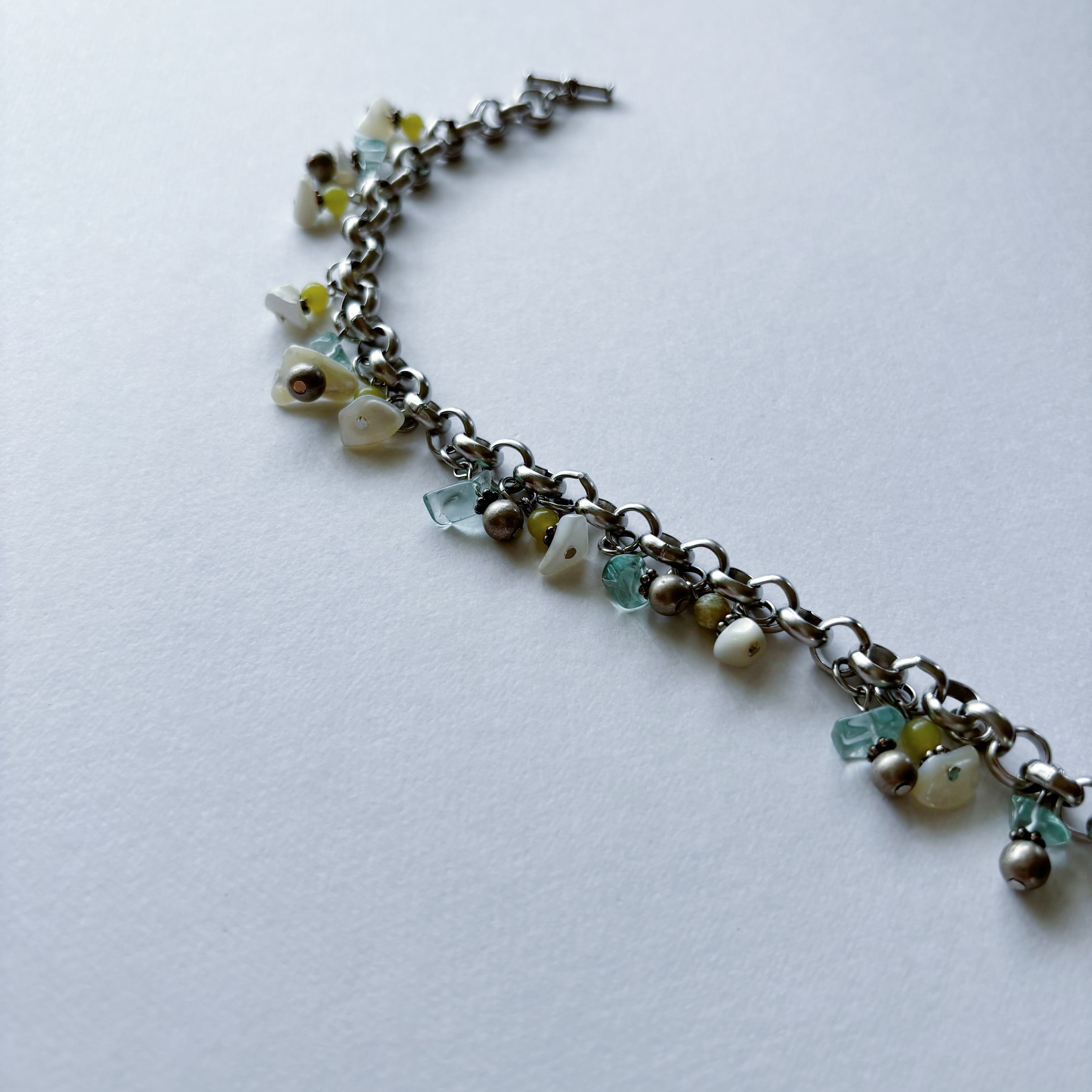 シルバーメタルのチェーンにビーズを組み合わせたデザイン。