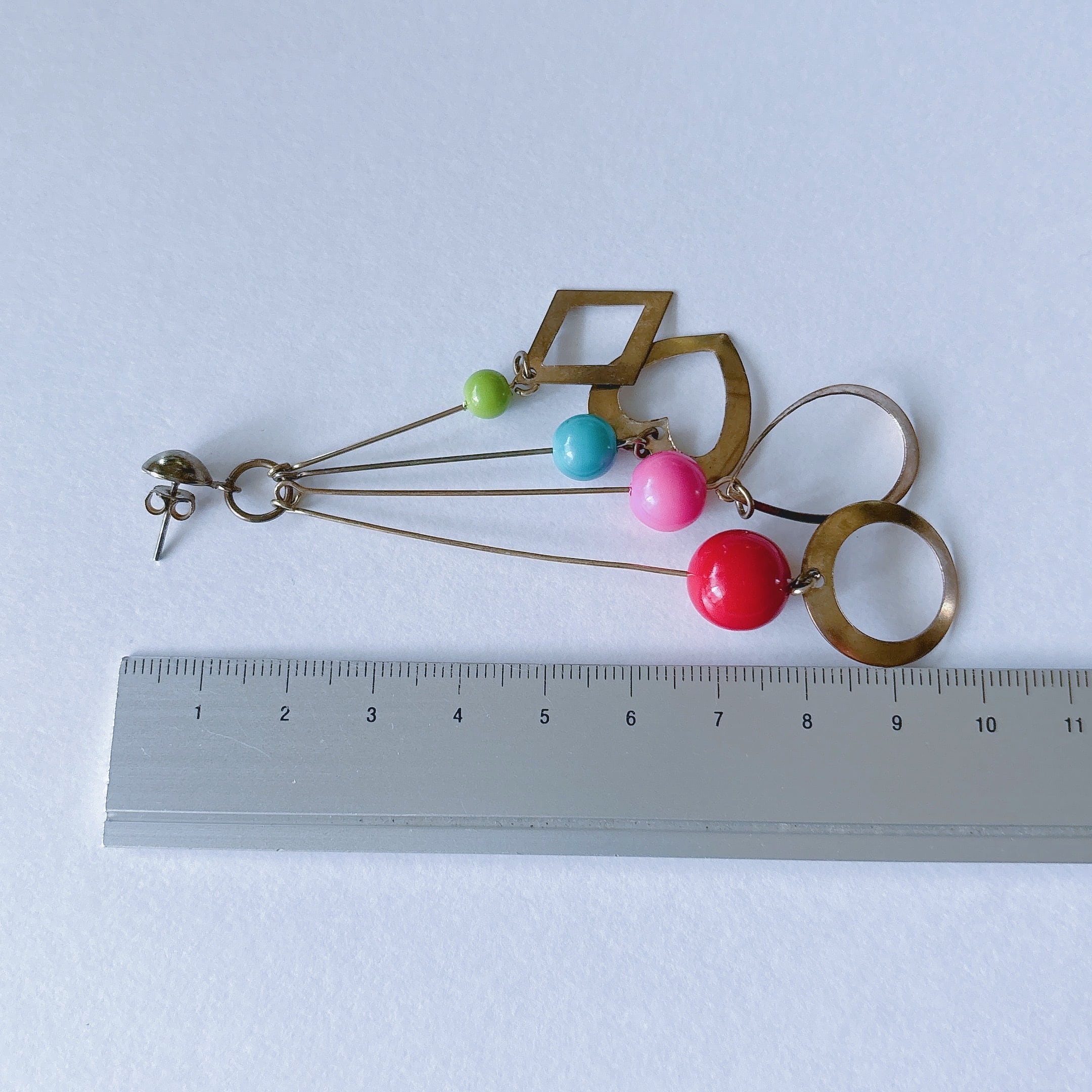 Vintage 80s gold tone red pink blue green plastic beads dangle earrings ヴィンテージ 80年代 ゴールドトーン レッド ピンク ブルー グリーン プラスチック ビーズ ダングル ピアス