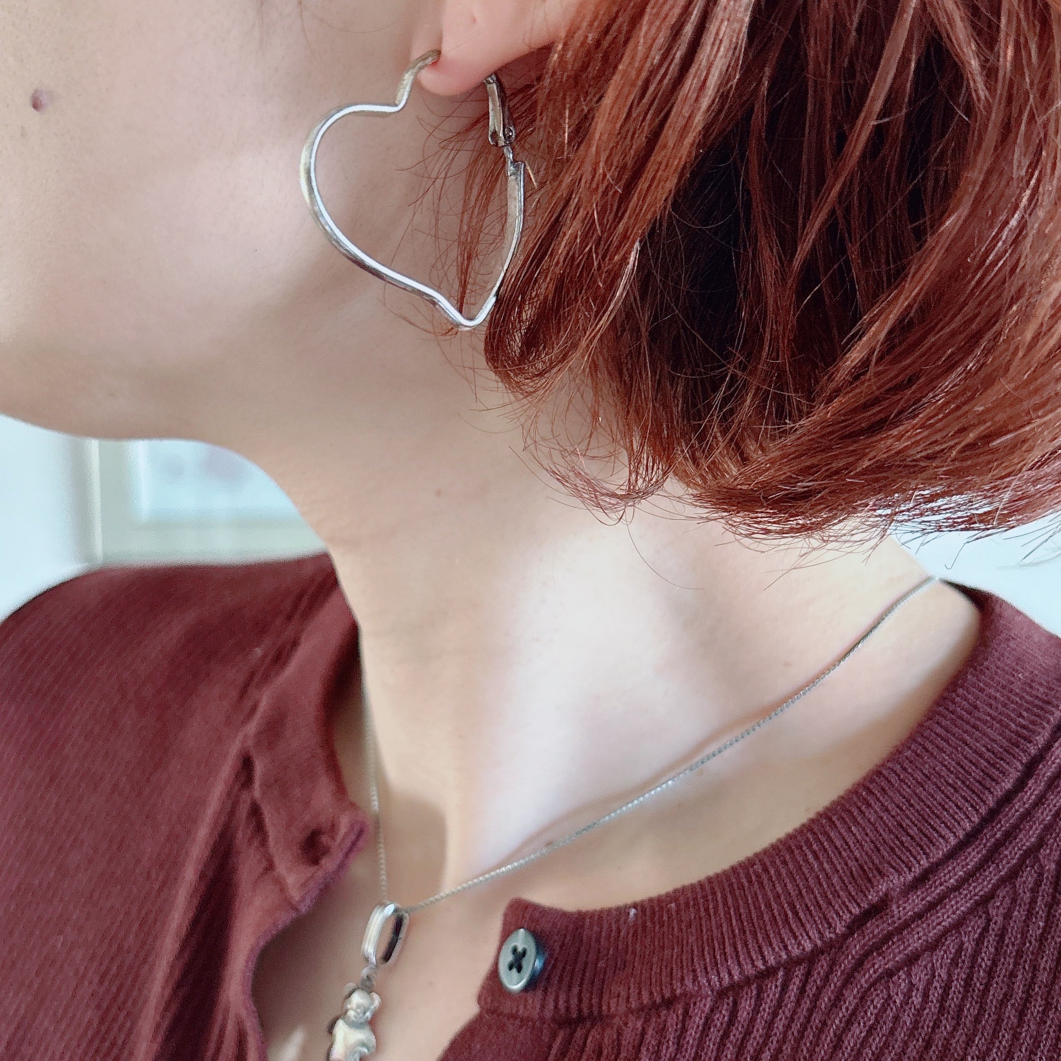 Vintage 80s - 90s silver tone heart hoop earrings ヴィンテージ 80年代 - 90年代 シルバートーン ハート ピアス
