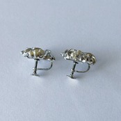Vintage 50s - 60s silver tone faux pearl clear rhinestone flower earrings ヴィンテージ 50年代 - 60年代 シルバートーン フェイクパール クリア ラインストーン フラワー 花 イヤリング | OBAKEPEACH