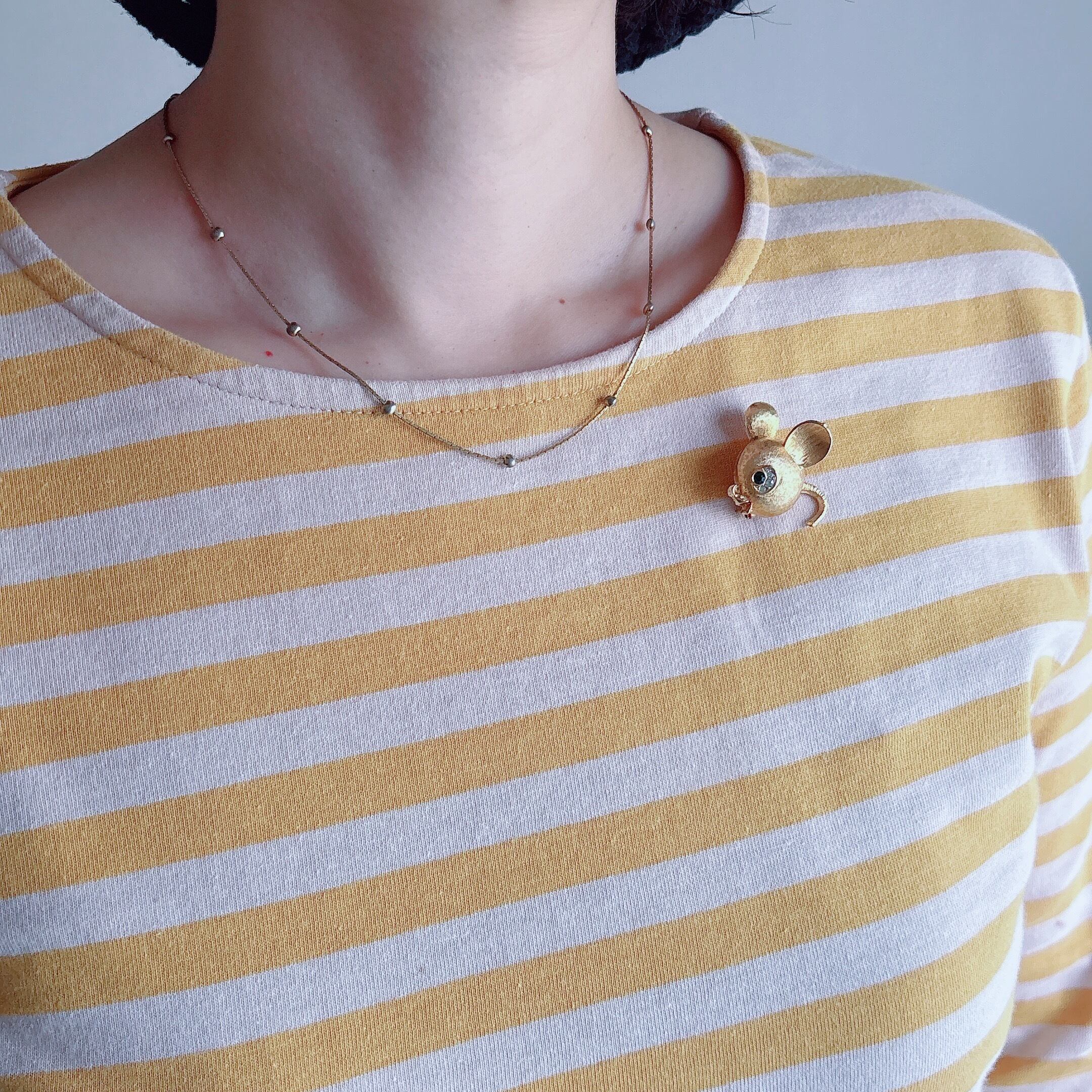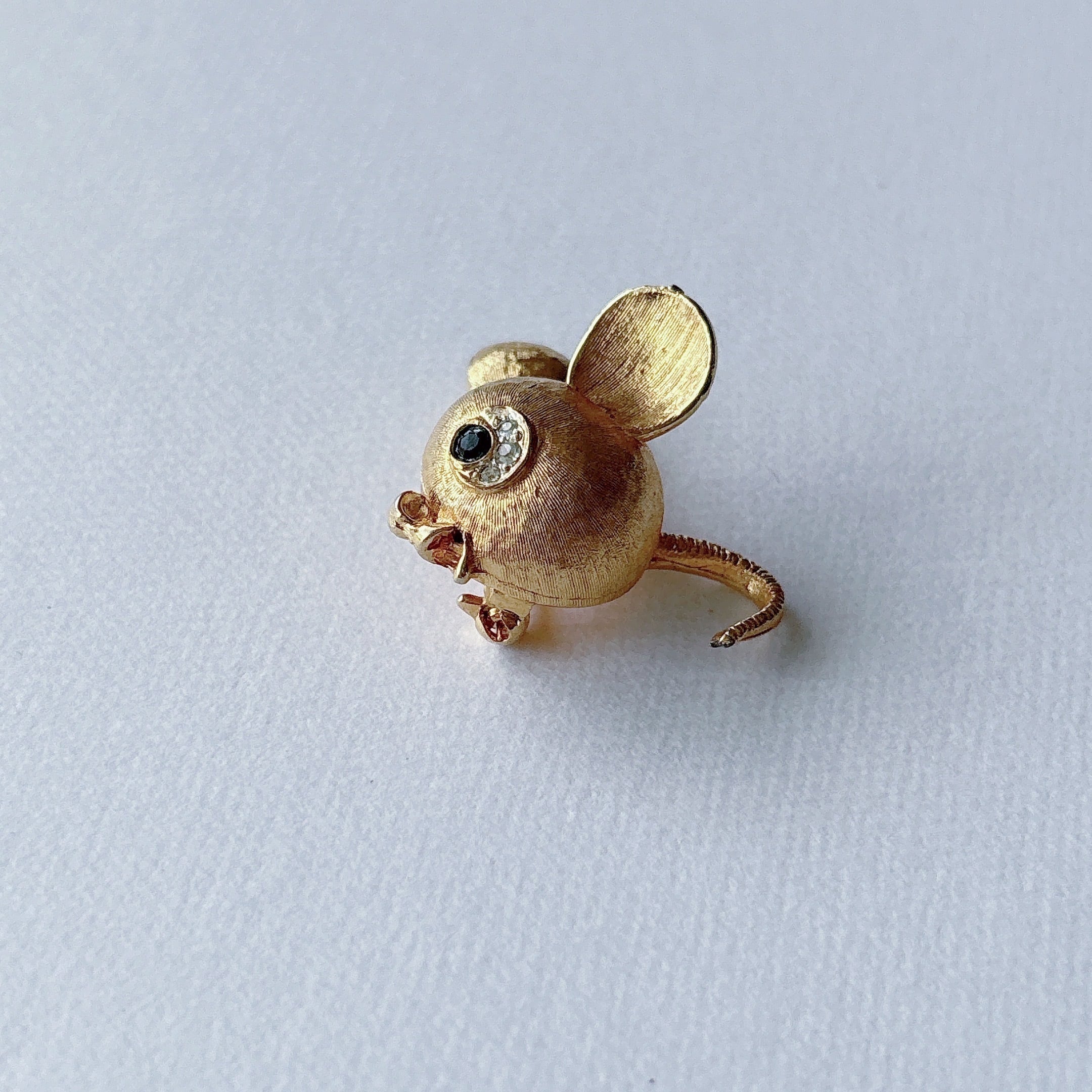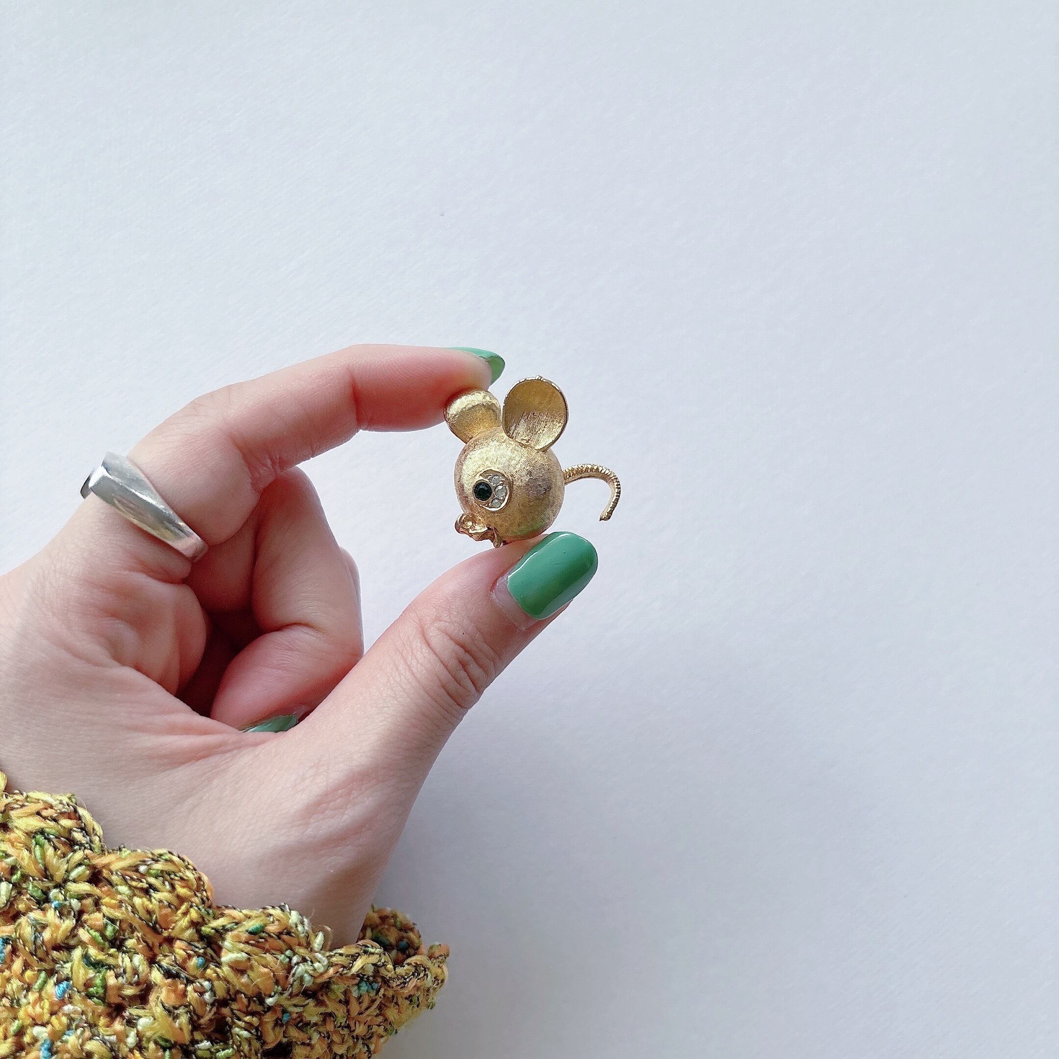MANDLE Vintage 60s gold tone mouse brooch ヴィンテージ 60年代 ゴールドトーン マウス ネズミ ブローチ