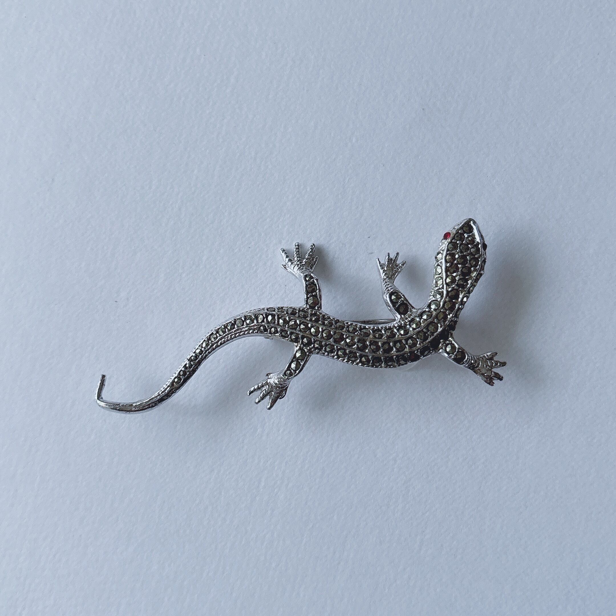 Vintage silver tone lizard marcasite red eye rhinestone brooch ヴィンテージ シルバートーン リザード トカゲ マーカサイト マルカジット レッド ラインストーン ブローチ