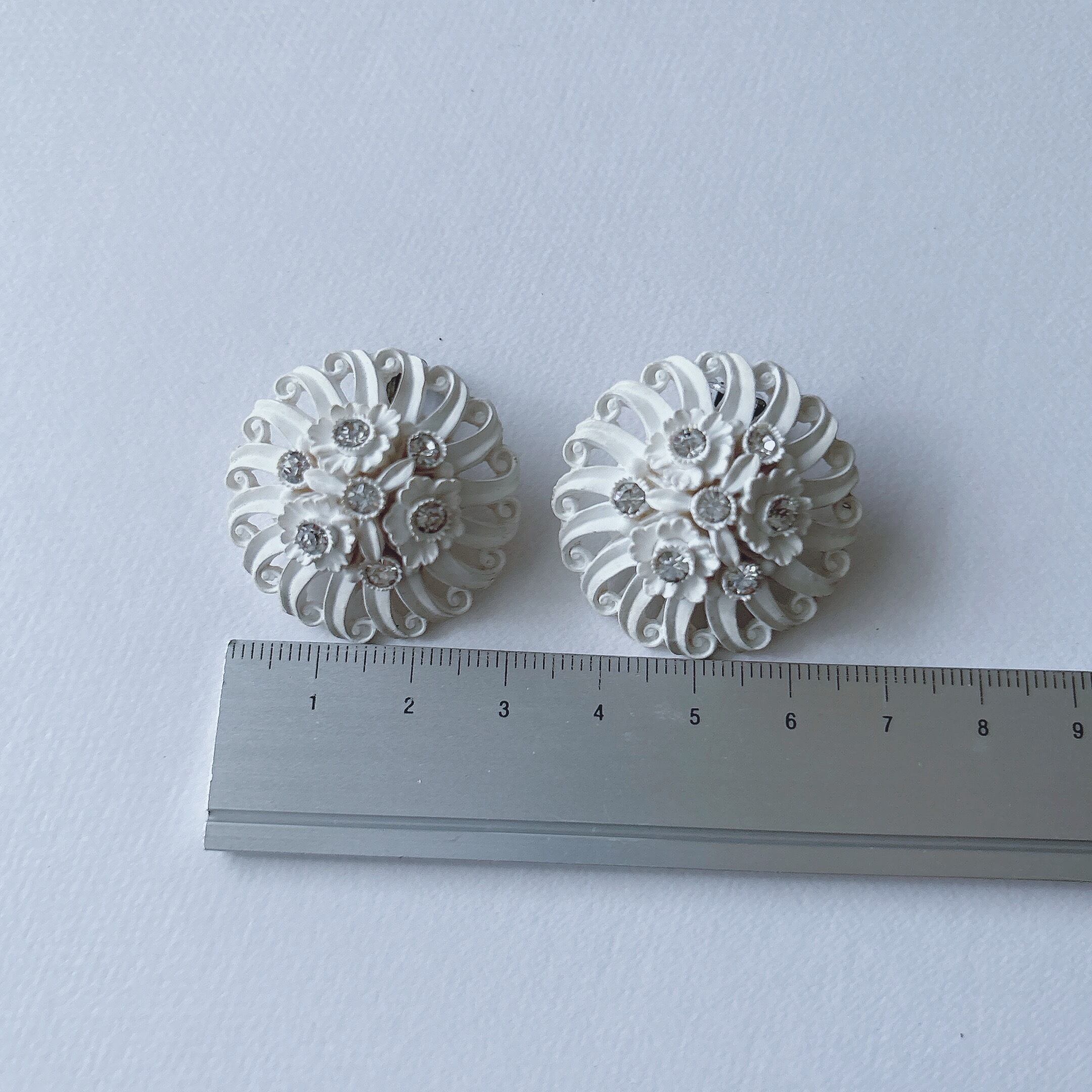 Vintage 50s white celluloid clear rhinestone earrings ヴィンテージ 50年代 ホワイト セルロイド クリア ラインストーン イヤリング | OBAKEPEACH