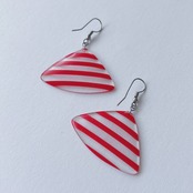 Vintage 80s clear red stripes triangle dangle earrings ヴィンテージ 80年代 クリア レッド ボーダー トライアングル 三角形 ダングル ピアス | OBAKEPEACH