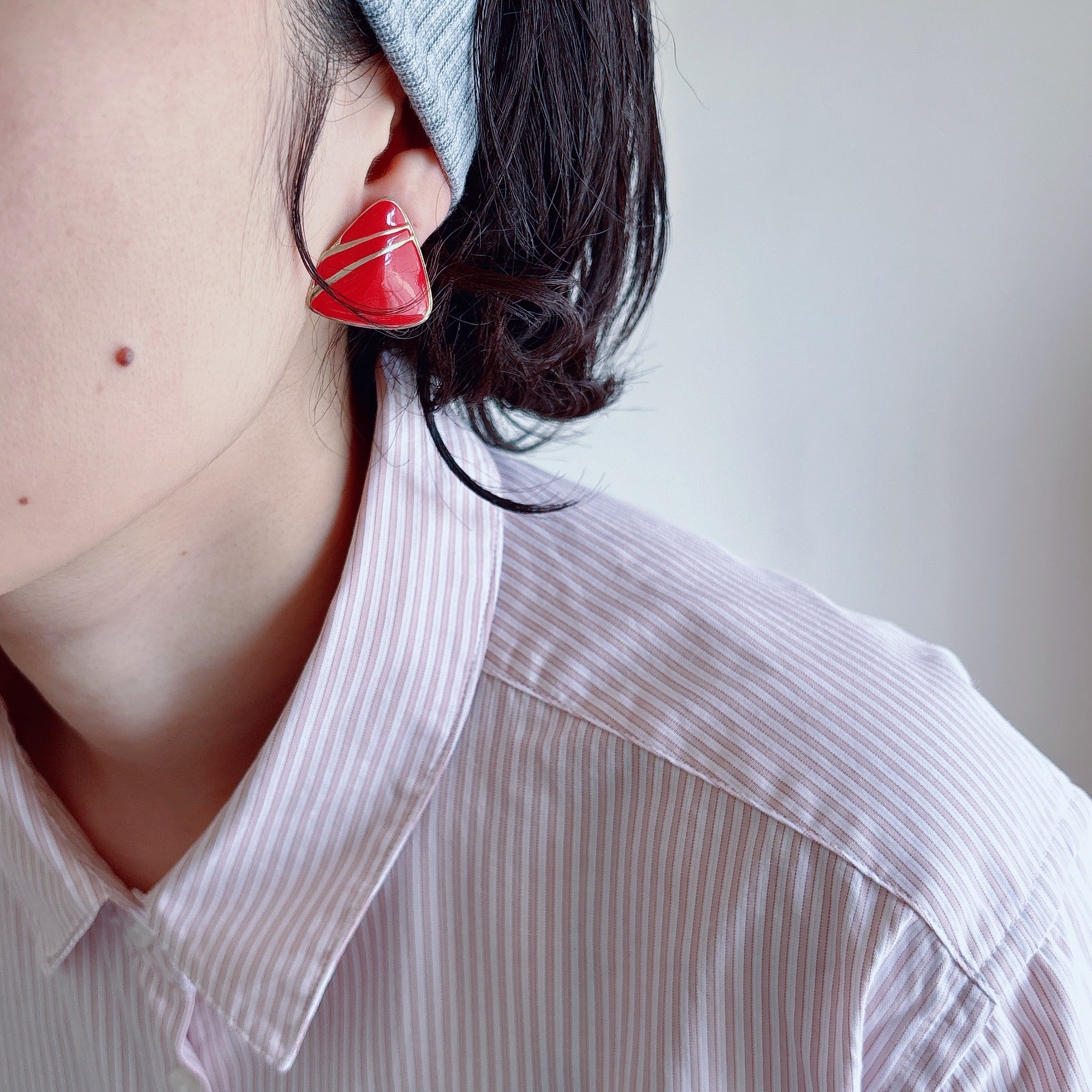 Vintage 80s gold tone red enamel triangle earrings ヴィンテージ 80年代 ゴールドトーン レッド エナメル トライアングル ピアス | OBAKEPEACH