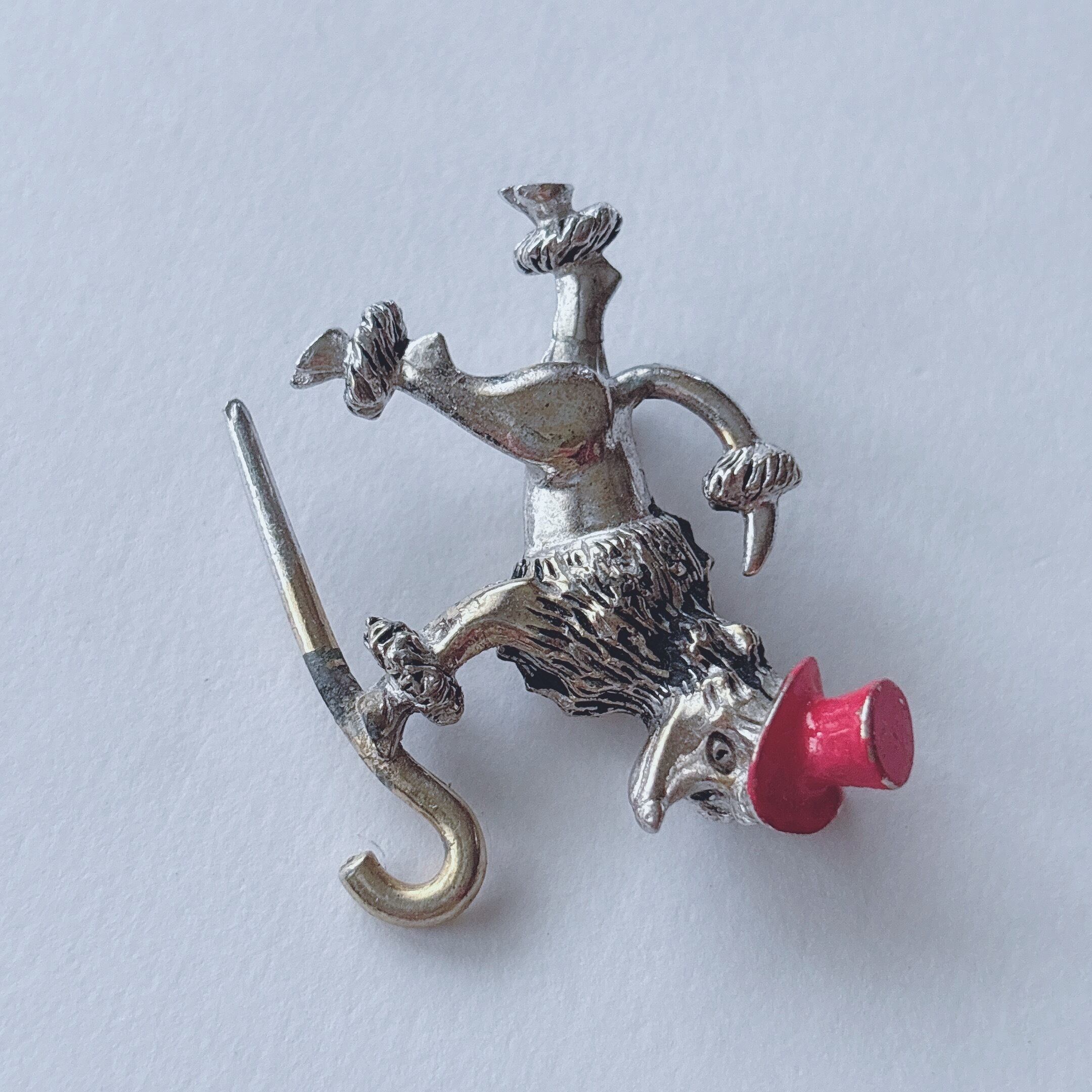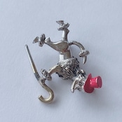Vintage 50s - 60s silver tone red enamel hat cane poodle dog brooch ヴィンテージ 50年代 - 60年代 シルバートーン レッド エナメル ハット 帽子 ケーン ステッキ 杖 プードル ブローチ