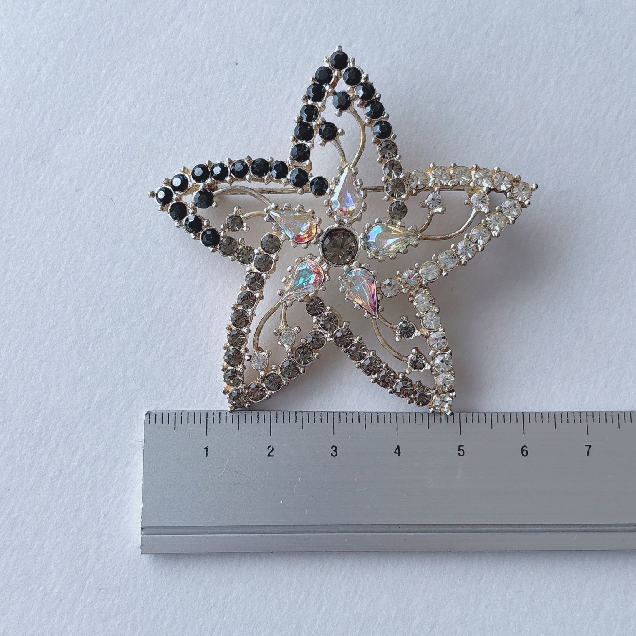 Vintage 60s - 70s gold tone clear gray black rhinestone star brooch ヴィンテージ 60年代 - 70年代 ゴールドトーン クリア グレー ブラック ラインストーン スター 星 ブローチ | OBAKEPEACH
