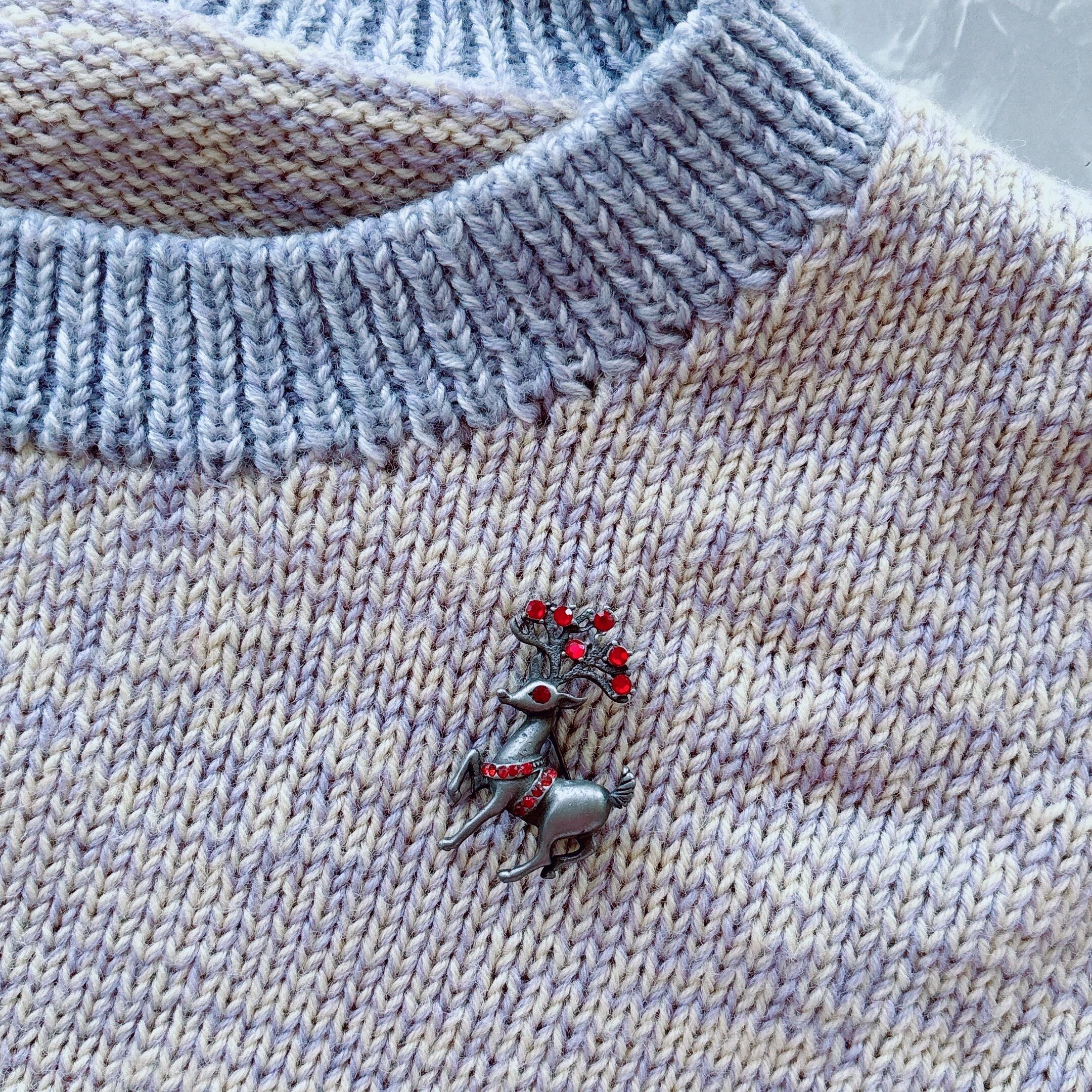 SILVER STARR Vintage 80s silver tone reindeer red rhinestone brooch ヴィンテージ 80年代 シルバートーン レッド ラインストーン トナカイ ブローチ | OBAKEPEACH