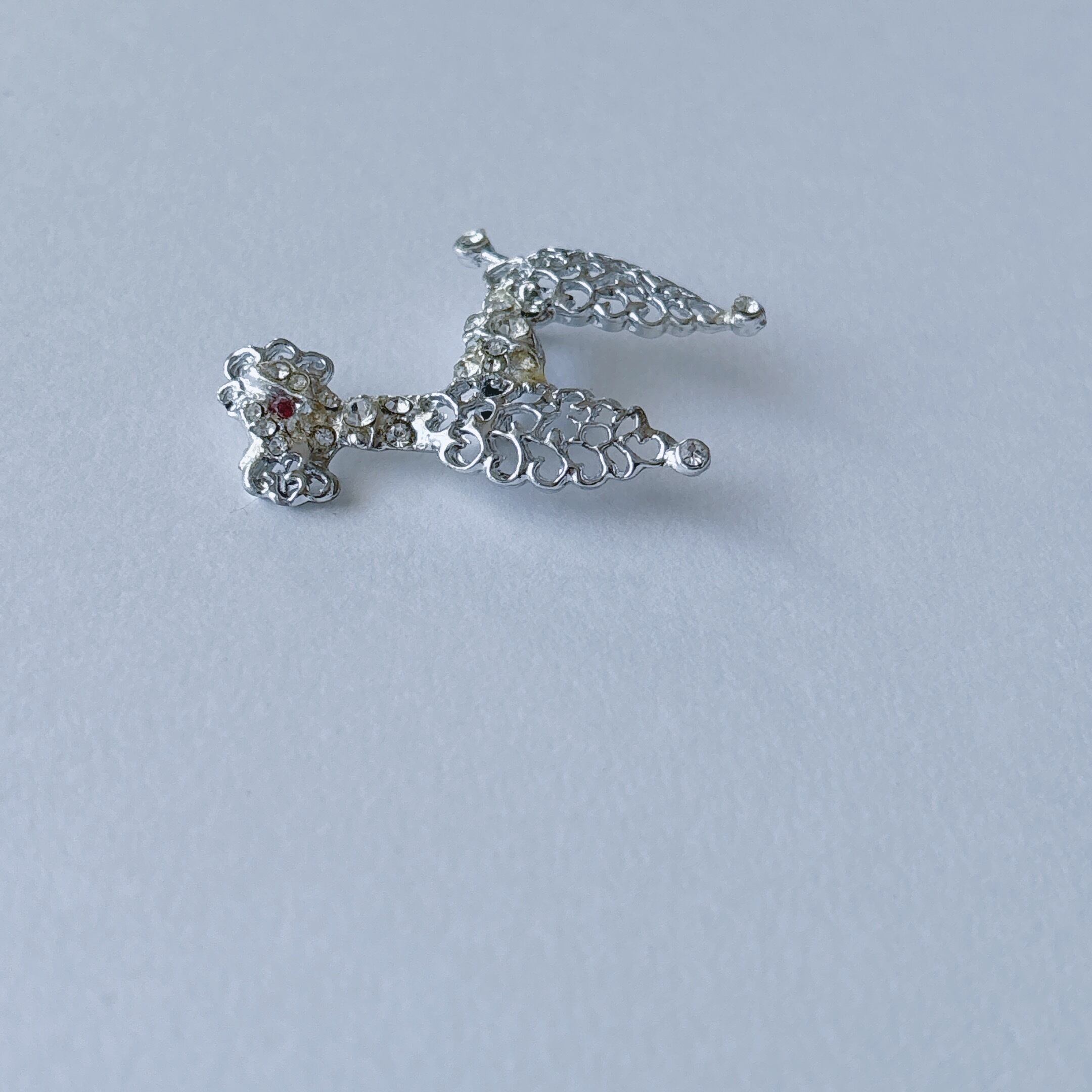 Vintage 50s - 60s silver tone clear red rhinestone dog poodle brooch ヴィンテージ 50年代 - 60年代 シルバートーン クリア レッド ラインストーン プードル 犬 ブローチ
