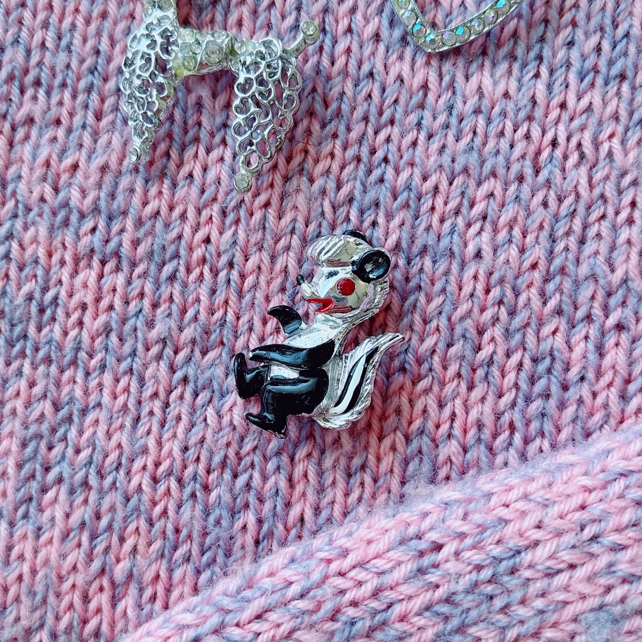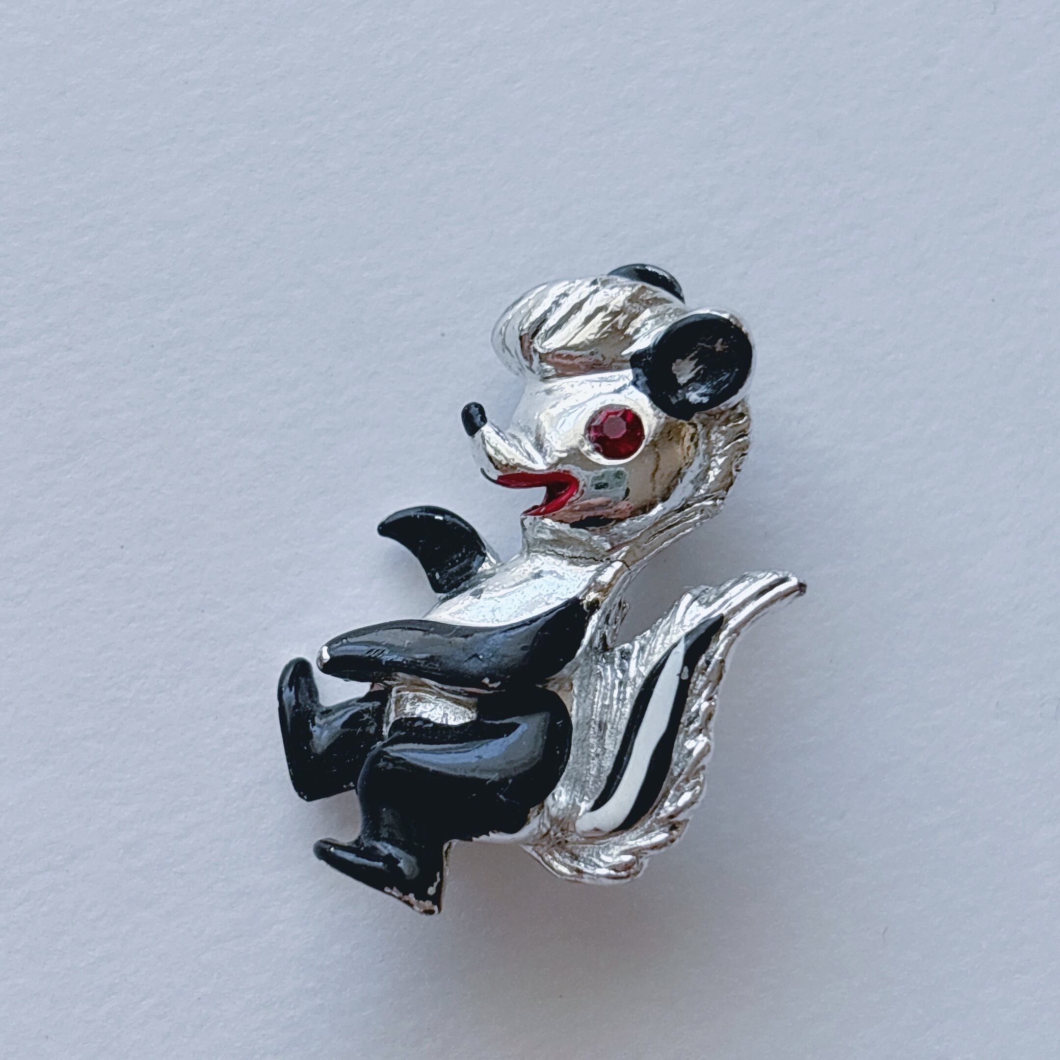 Vintage 50s - 60s silver tone black enamel red rhinestone skunk brooch ヴィンテージ 50年代 - 60年代 シルバートーン ブラック エナメル レッド ラインストーン スカンク ブローチ