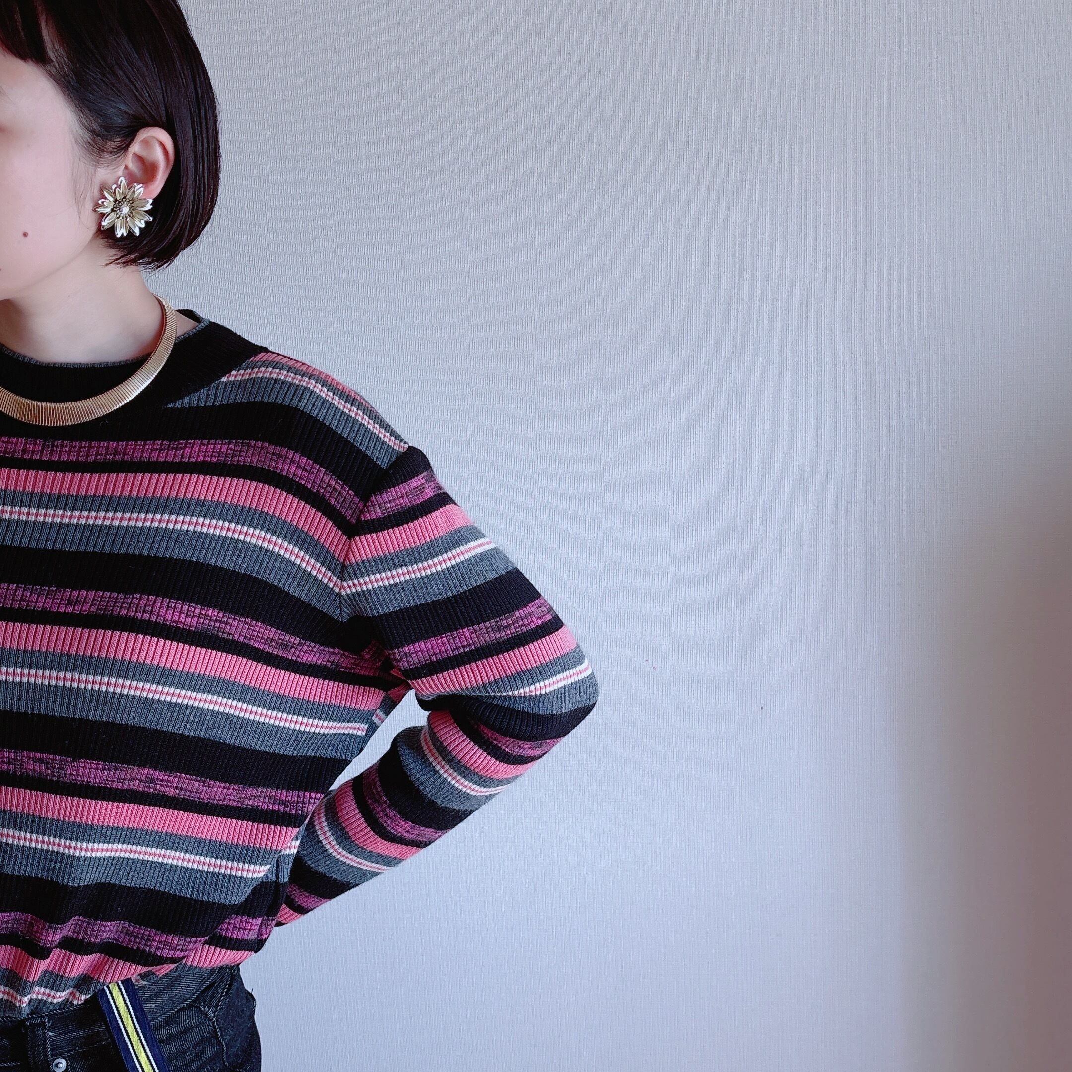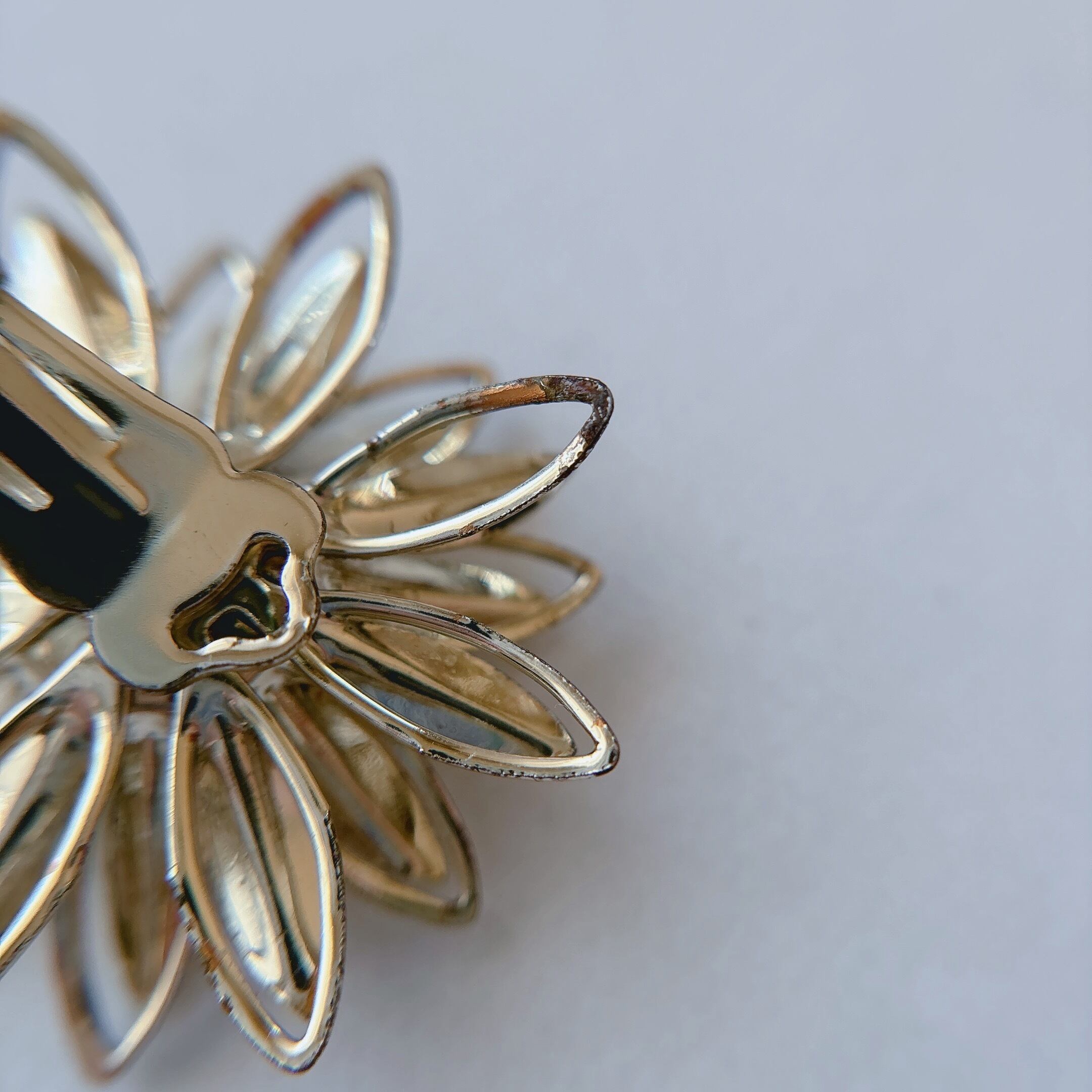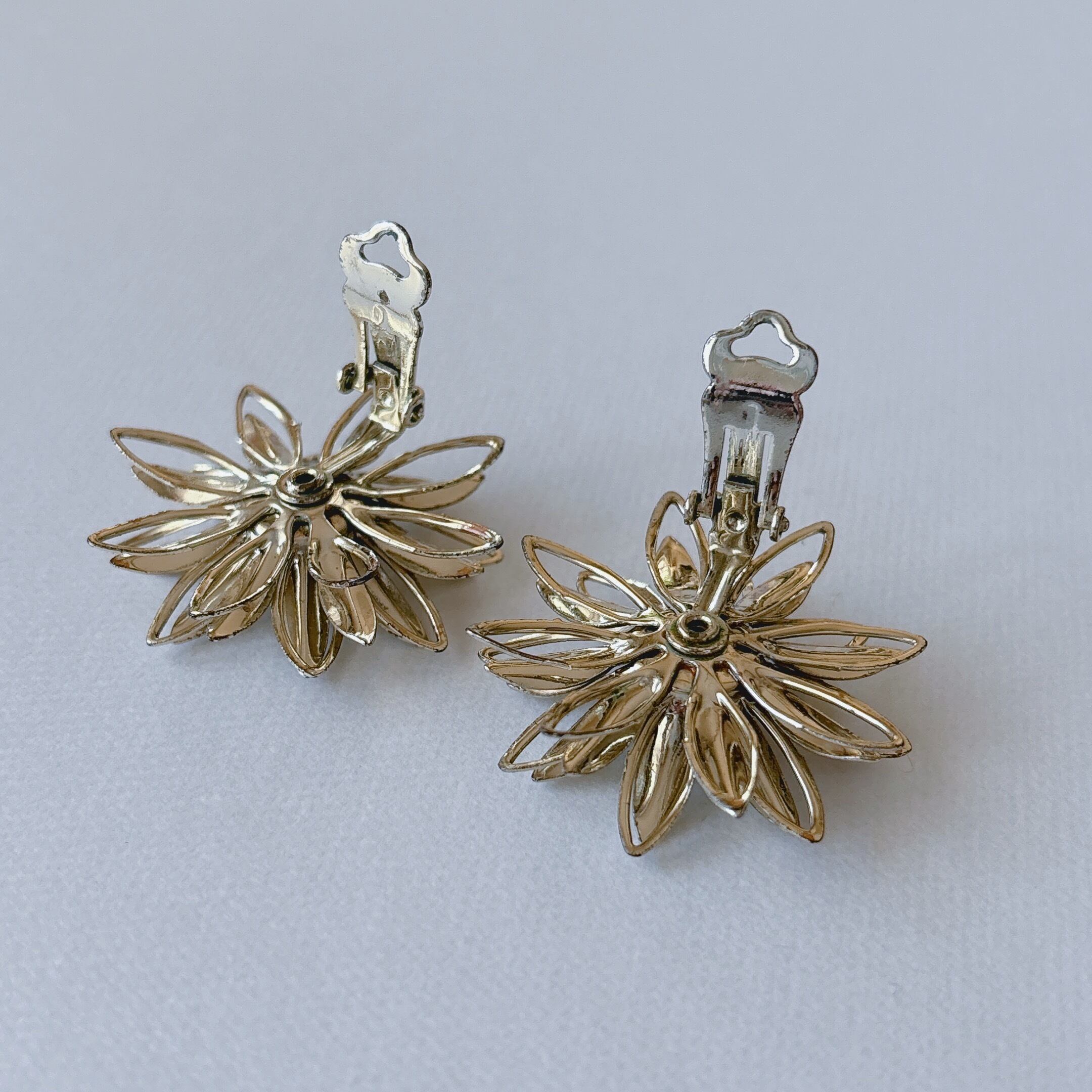 Vintage 60s gold tone clear rhinestone flower earrings ヴィンテージ 60年代 ゴールドトーン クリア ラインストーン フラワー 花 イヤリング