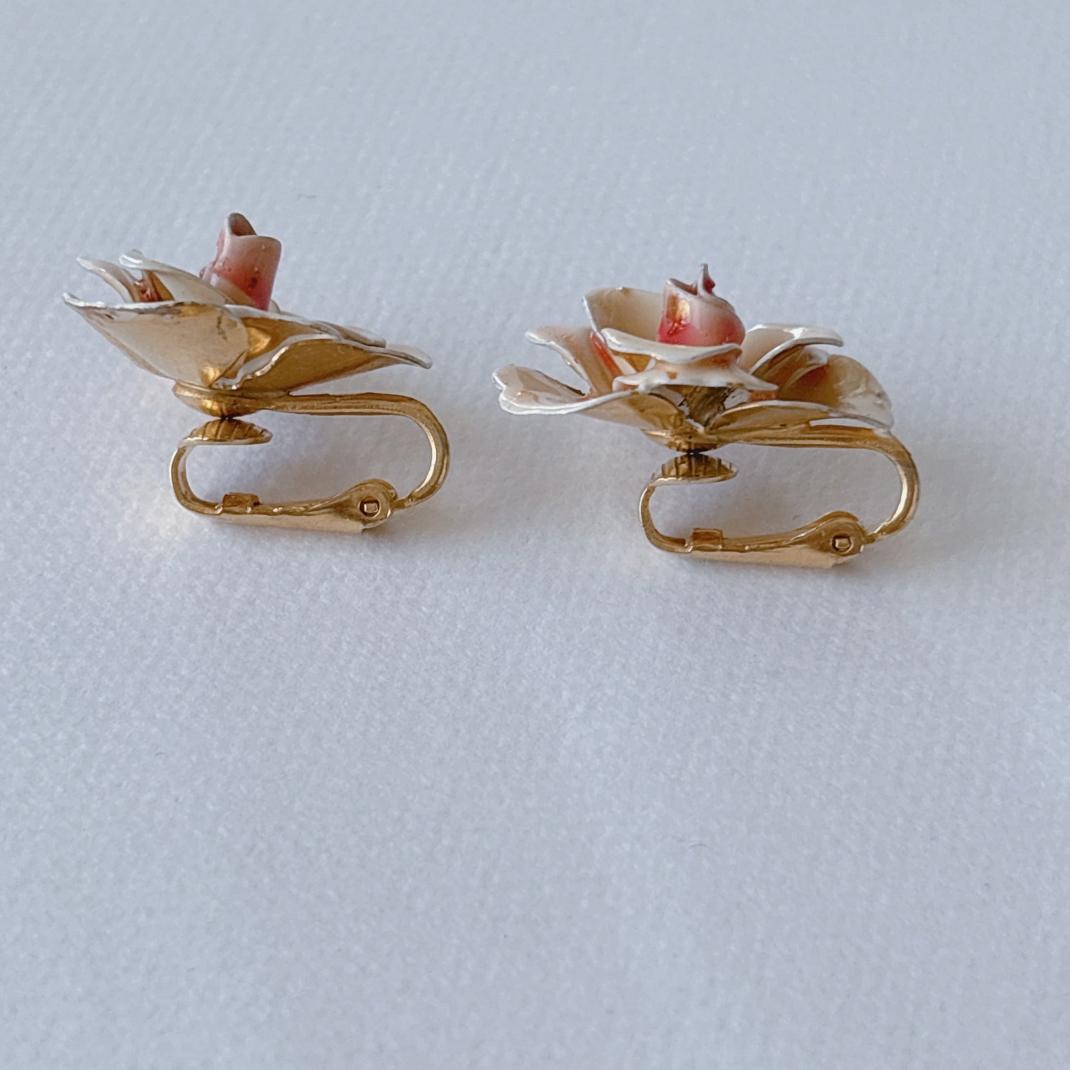 Vintage 60s - 70s pink enamel flower earrings ヴィンテージ 60年代 - 70年代 ピンク エナメル フラワー 花 イヤリング