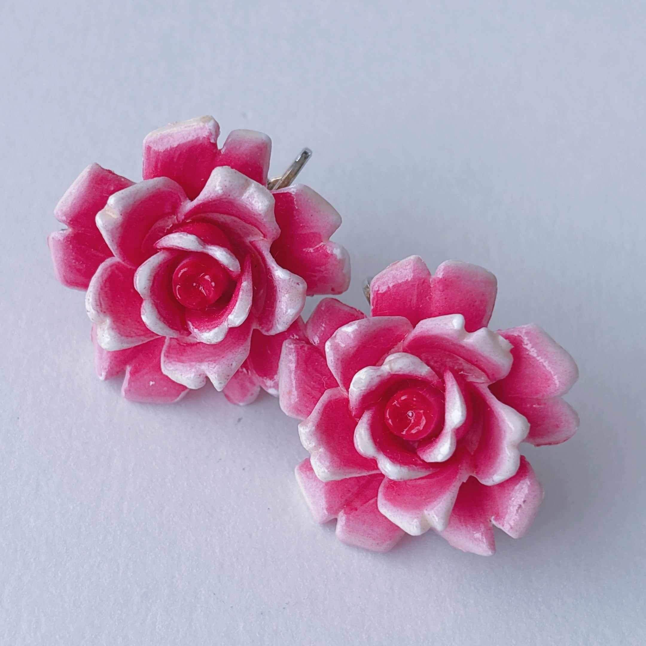 Vintage 50s - 60s GERMANY pink plastic flower earrings ヴィンテージ 50年代 - 60年代 ドイツ製 ピンク プラスチック フラワー 花 イヤリング