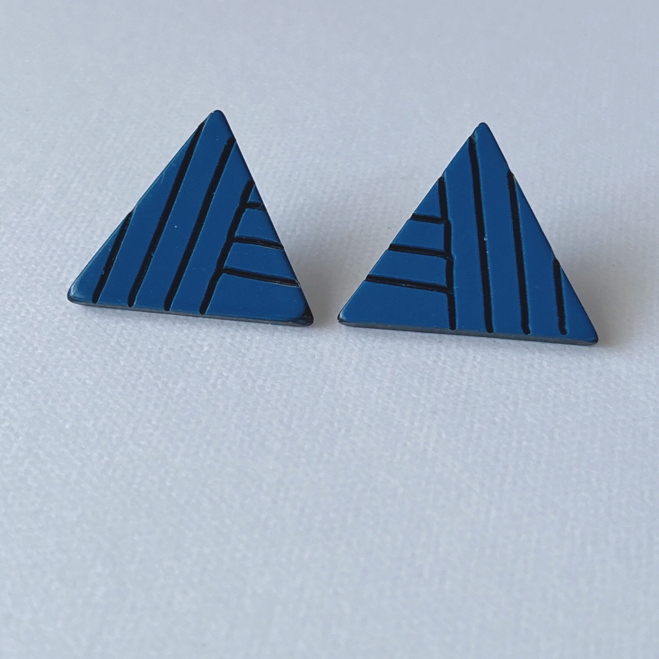 Vintage 80s blue plastic triangle earrings ヴィンテージ 80年代 ブルー プラスチック トライアングル 三角形 ピアス