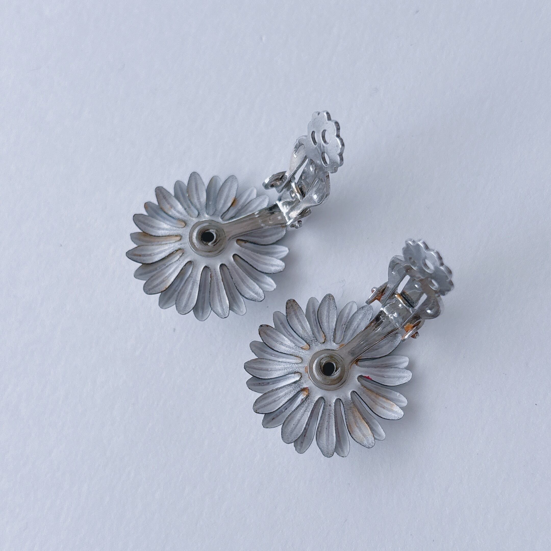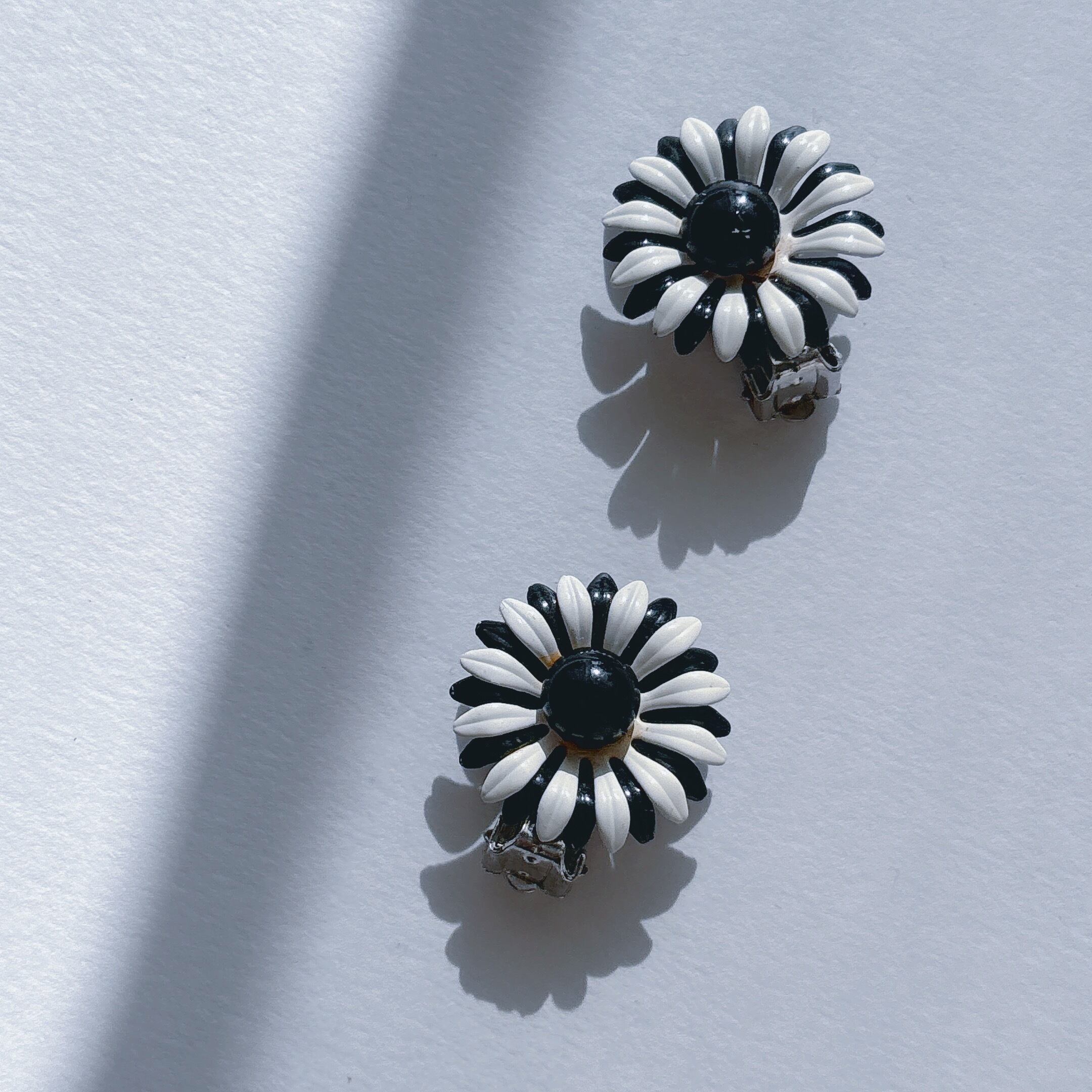 Vintage 60s - 70s black white enamel flower earrings ヴィンテージ 60年代 - 70年代 ブラック ホワイト エナメル フラワー 花 イヤリング
