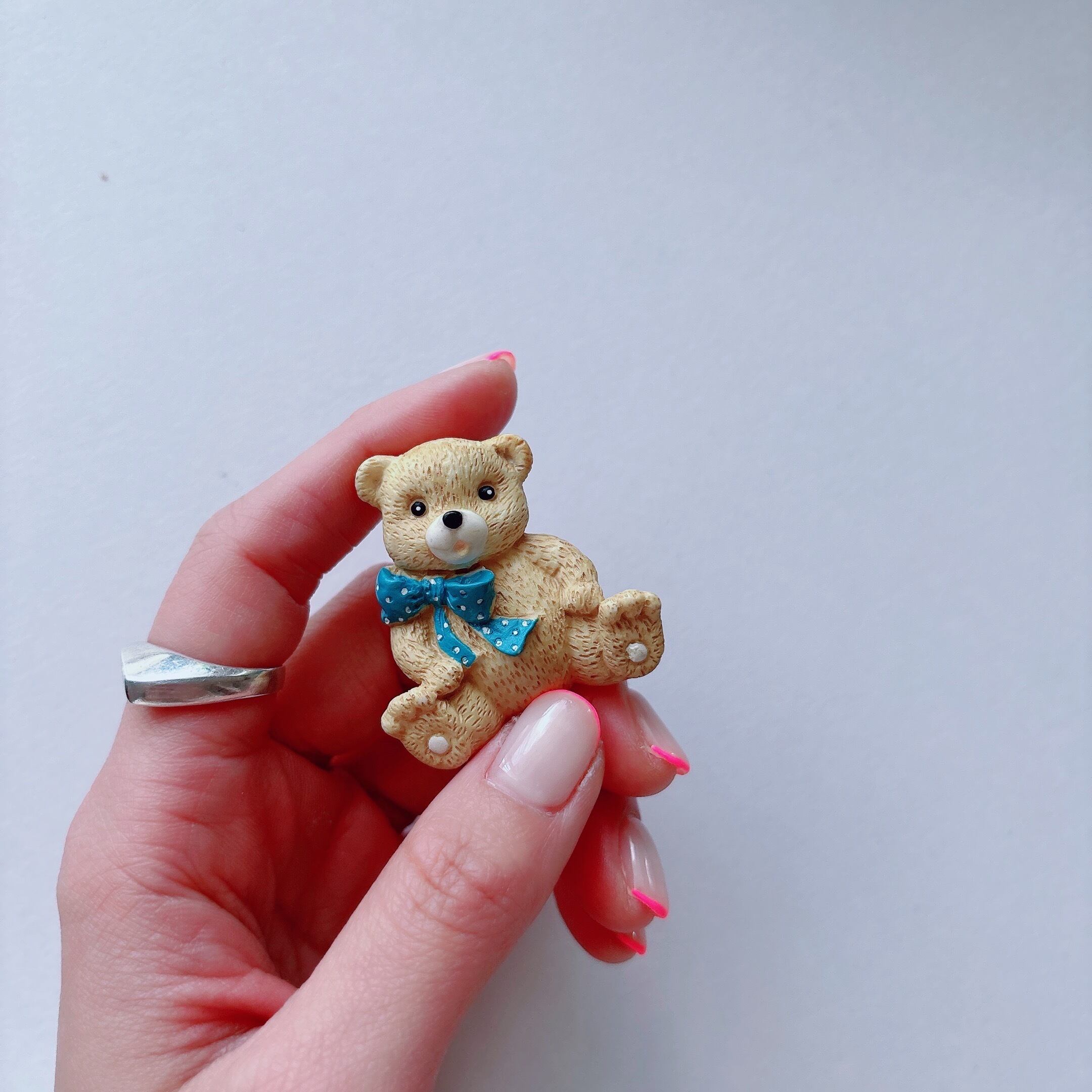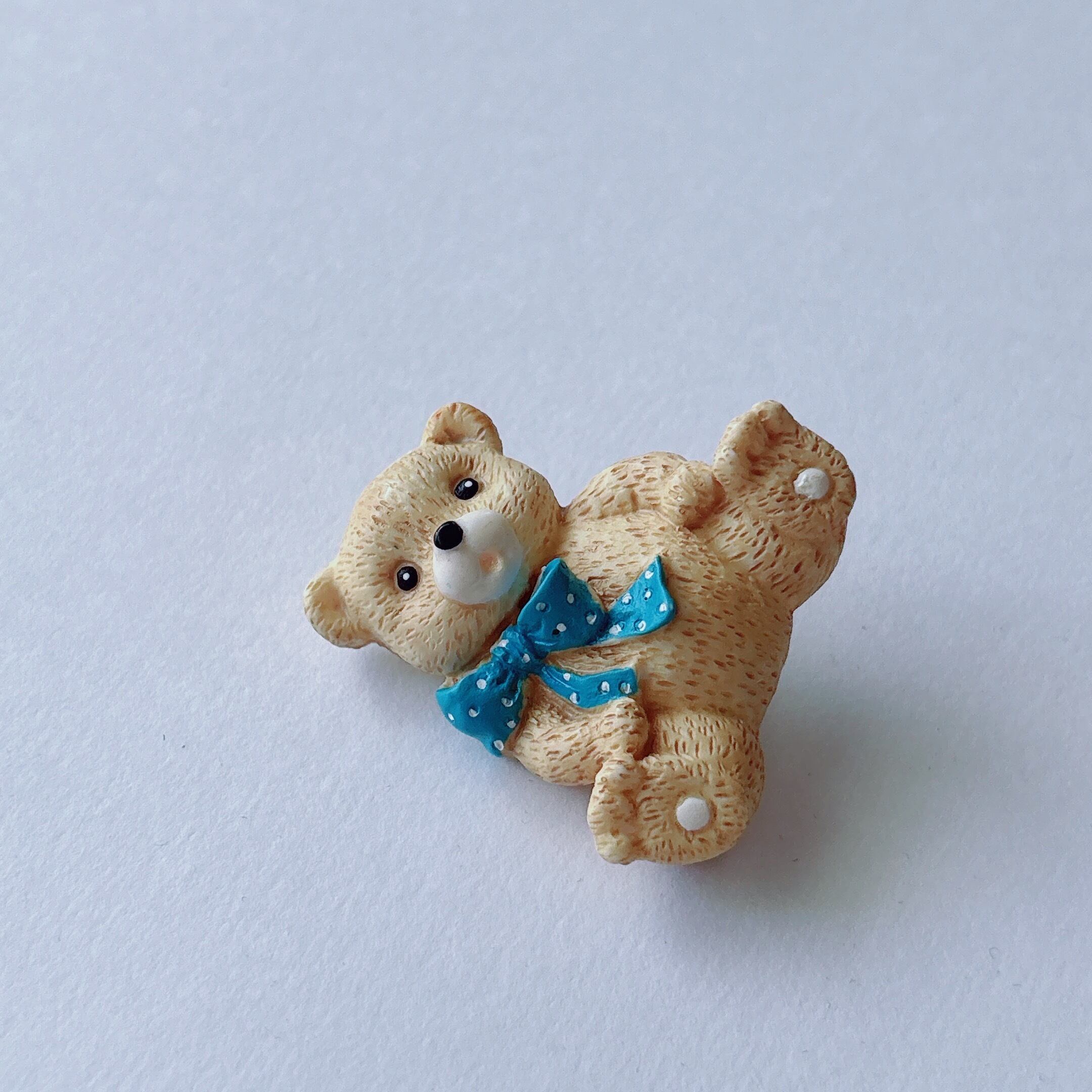 Vintage 90s plastic teddy bear blue ribbon brooch ヴィンテージ 90年代 プラスチック テディベア ブルー リボン ブローチ