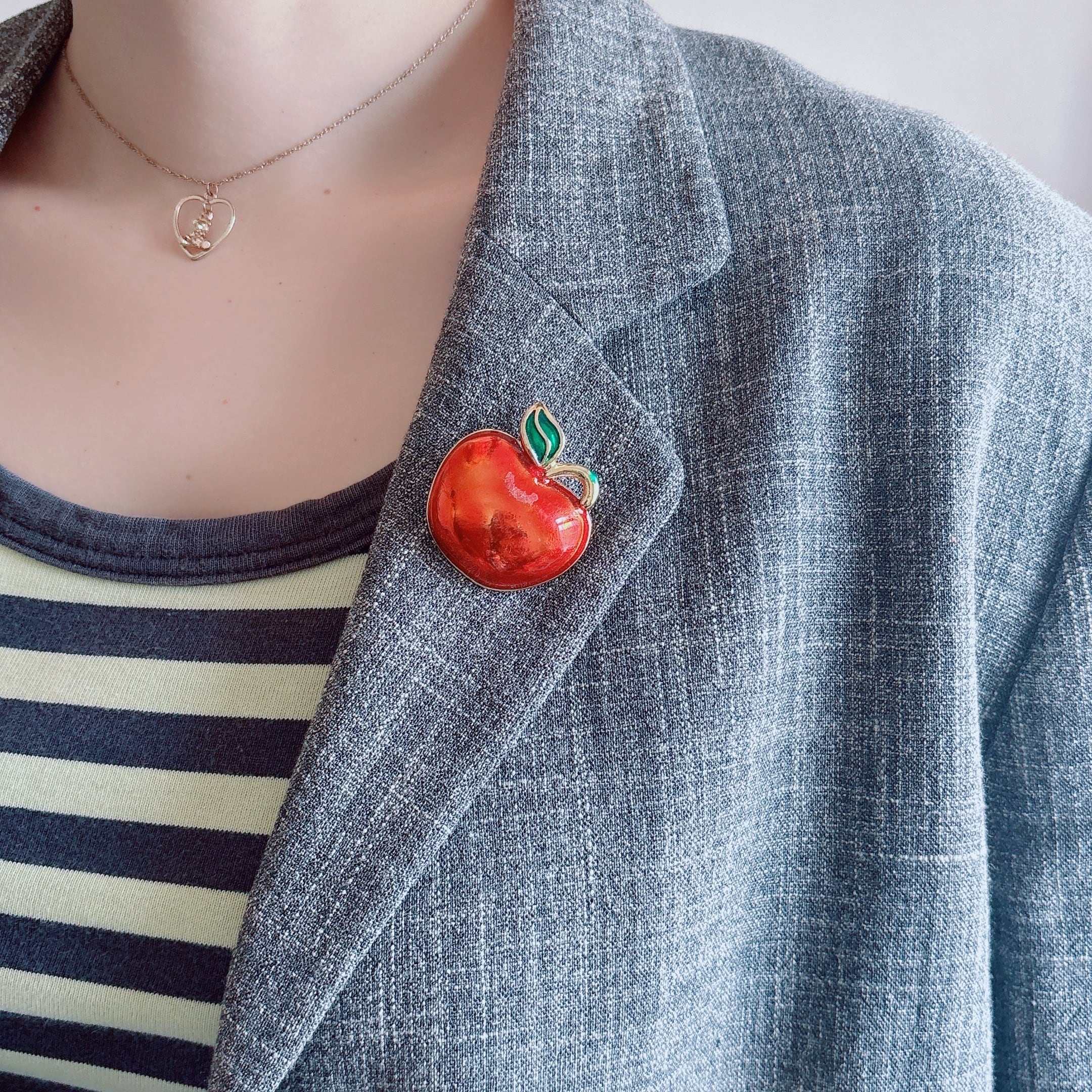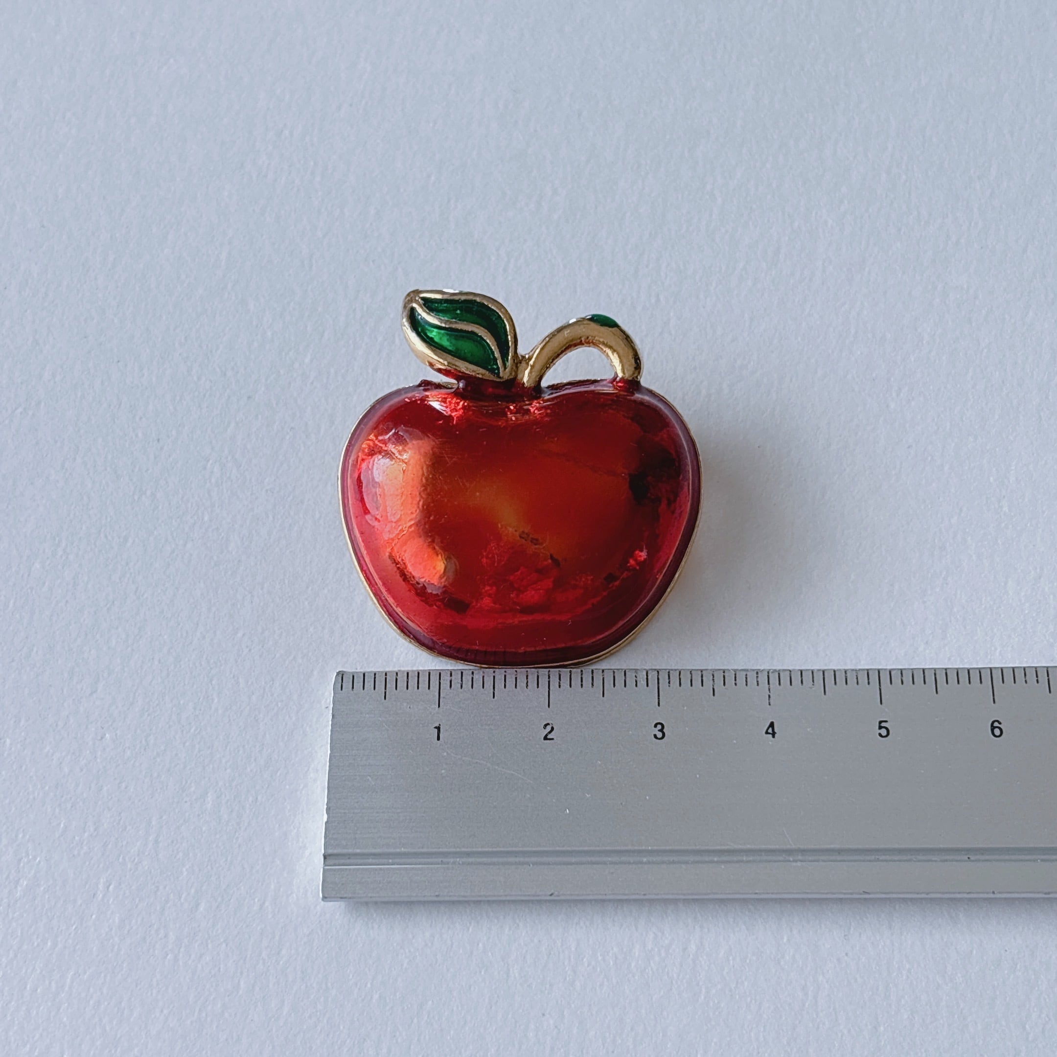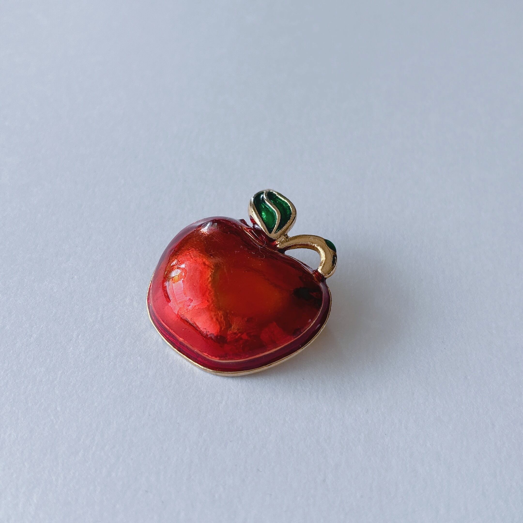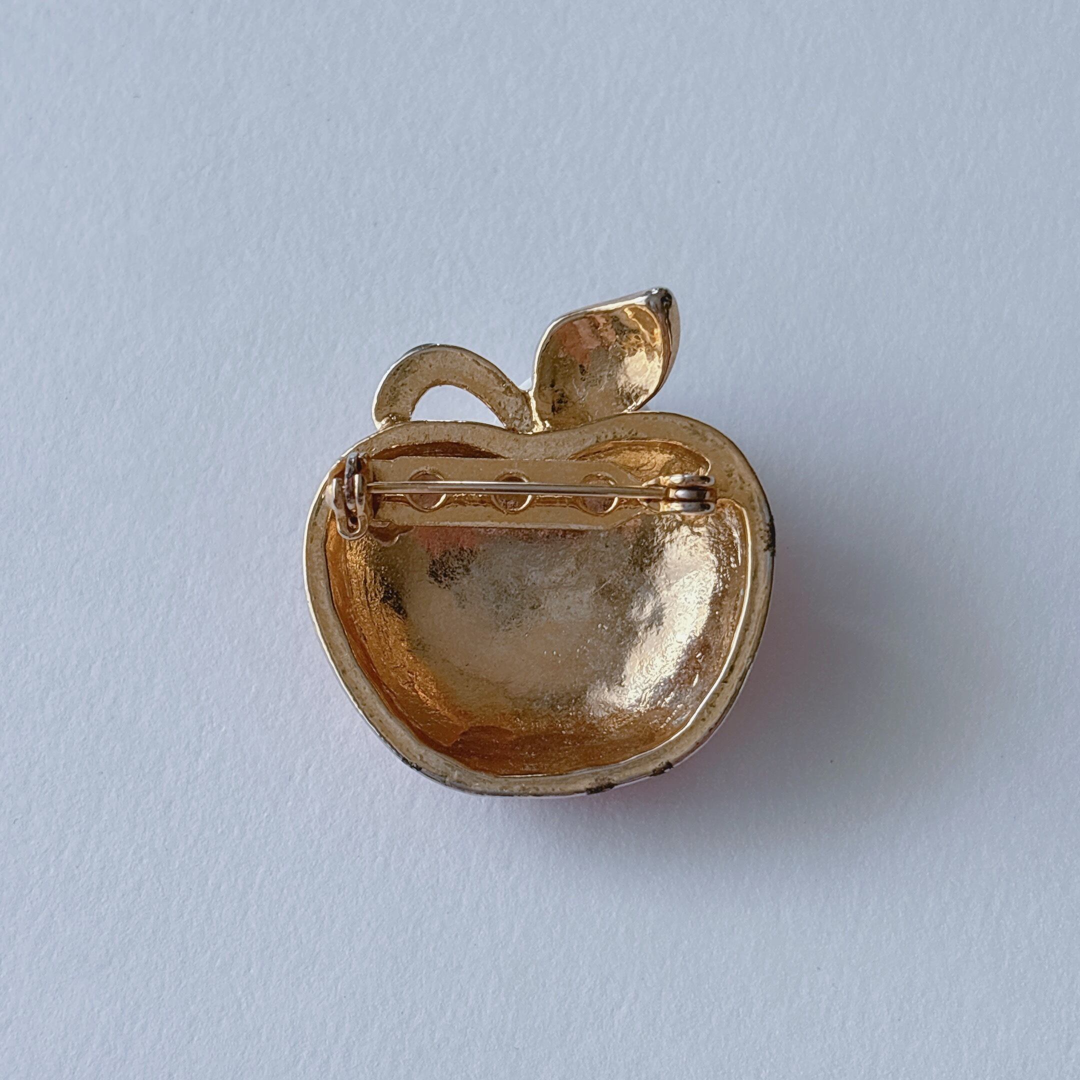 Vintage 60s - 70s gold tone red green enamel apple brooch ヴィンテージ 60年代 - 70年代 ゴールドトーン レッド グリーン エナメル アップル リンゴ ブローチ