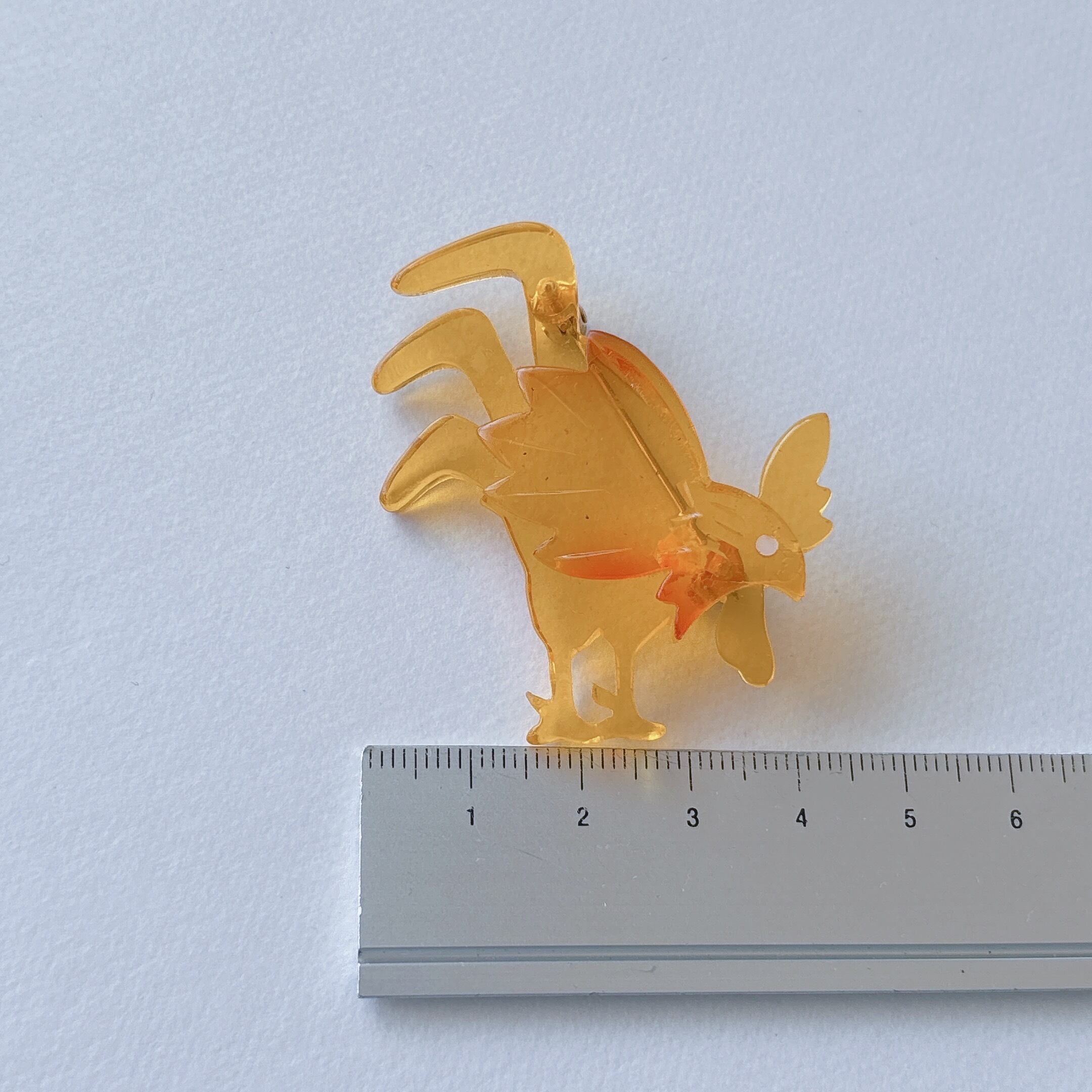 Vintage yellow acrylic plastic chicken brooch ヴィンテージ イエロー アクリル プラスチック チキン 鶏 ブローチ