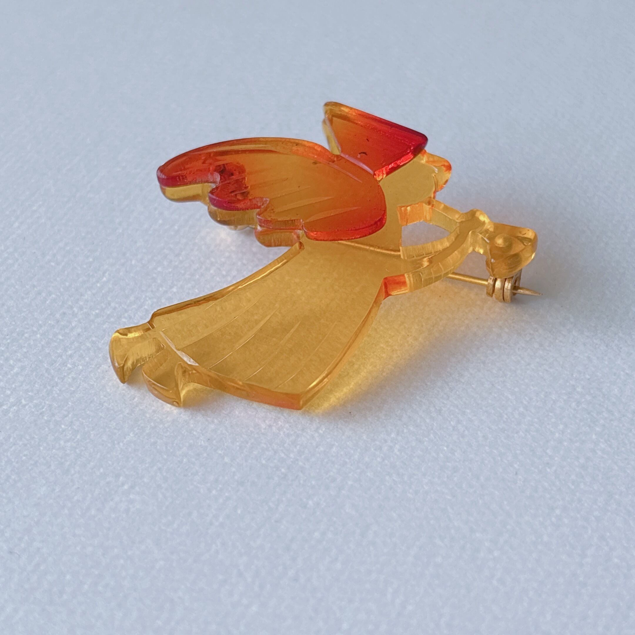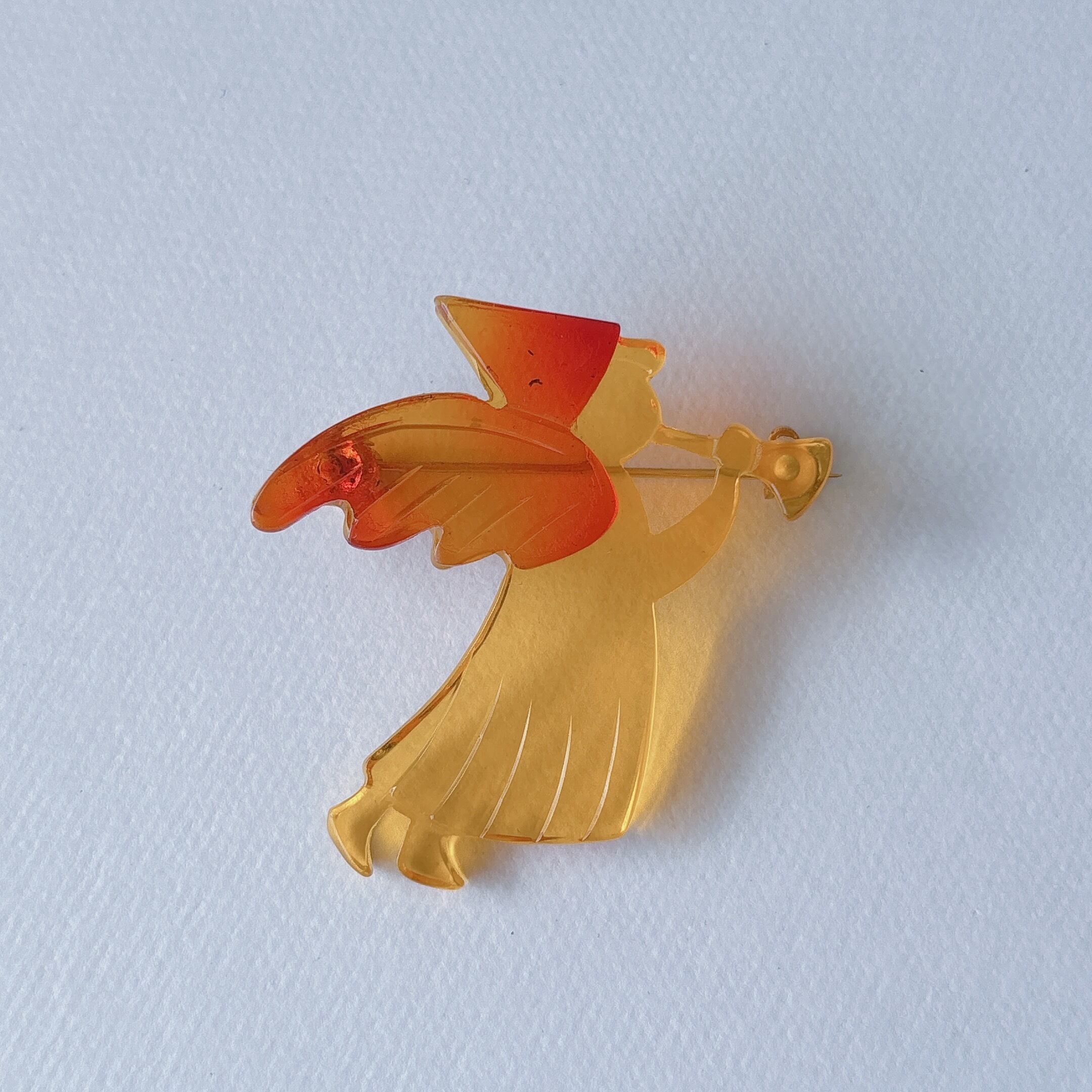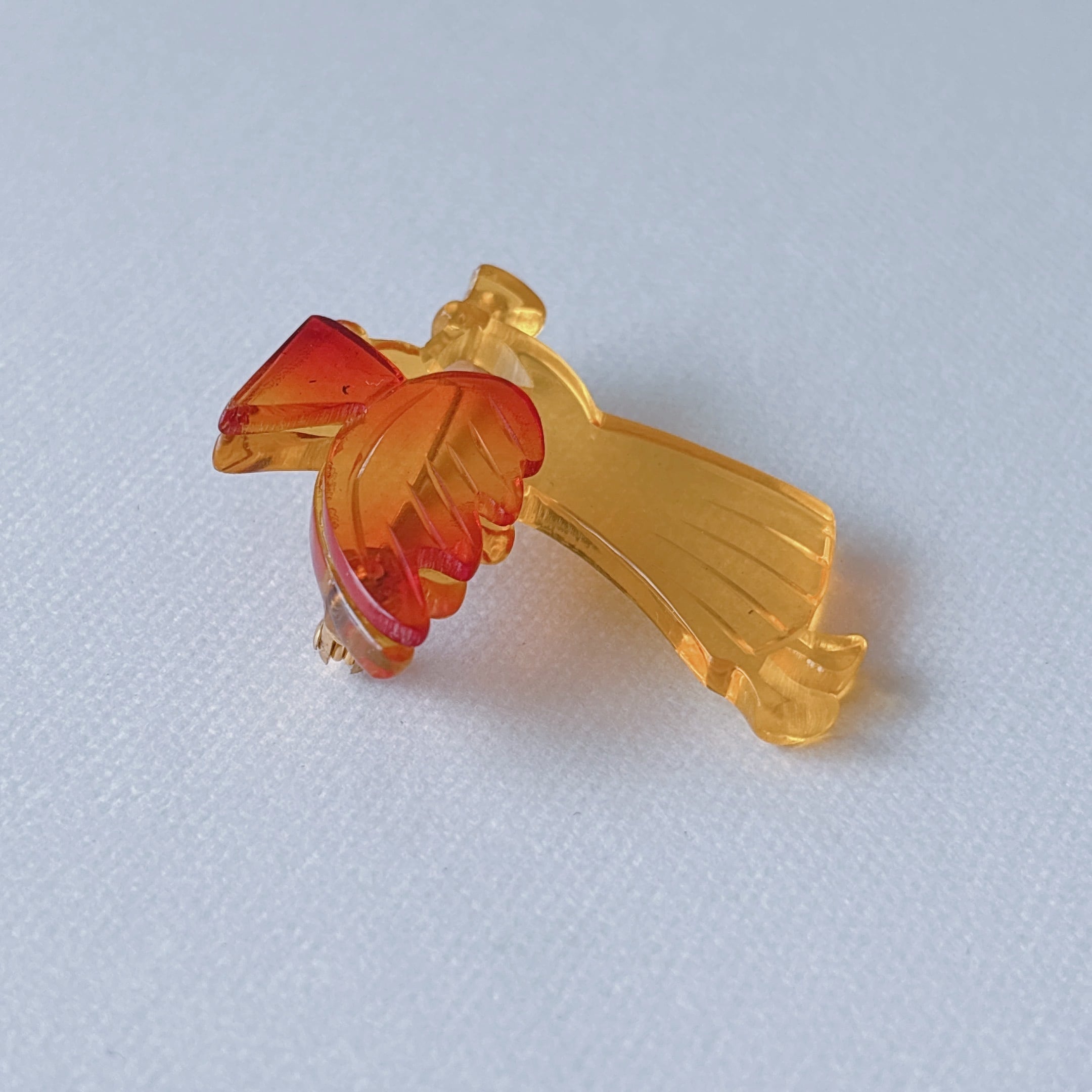 Vintage yellow orange amber acrylic plastic angel brooch ヴィンテージ イエロー オレンジ アンバー アクリル プラスチック エンジェル 天使 ブローチ