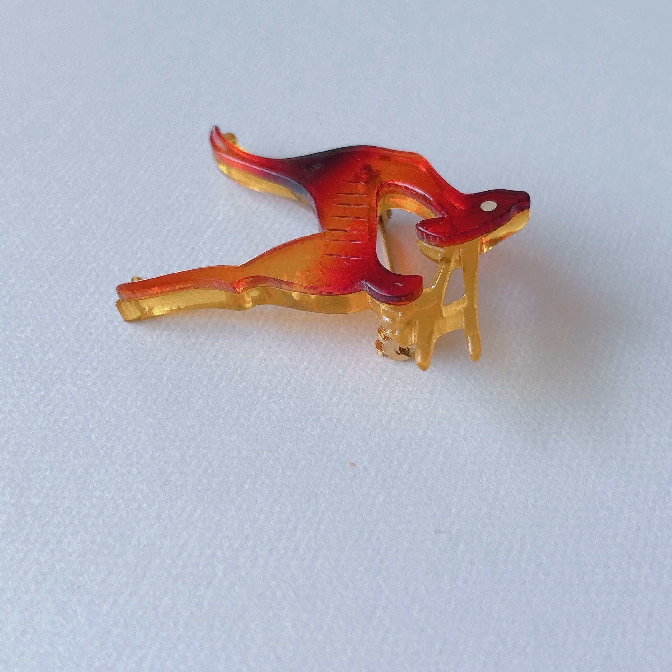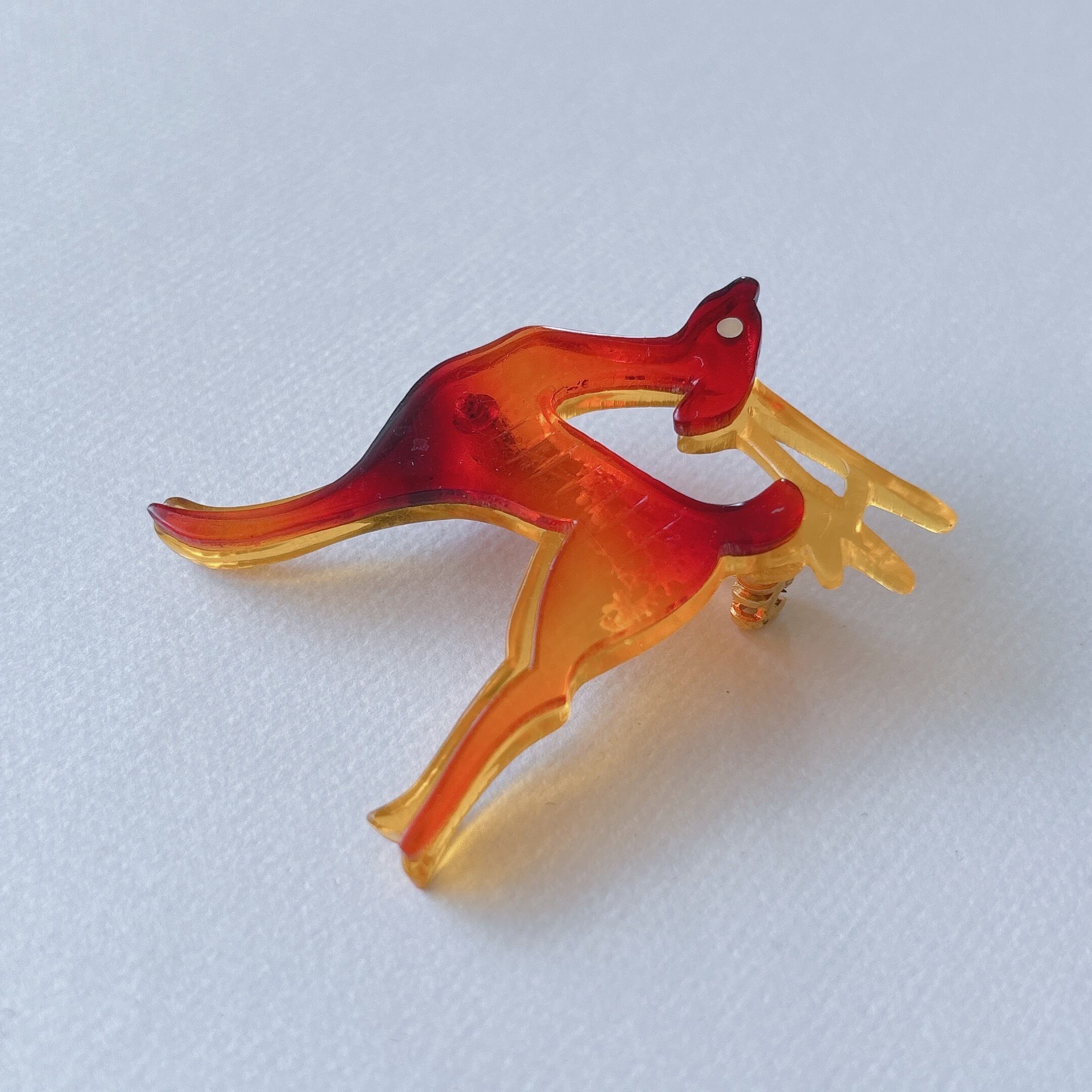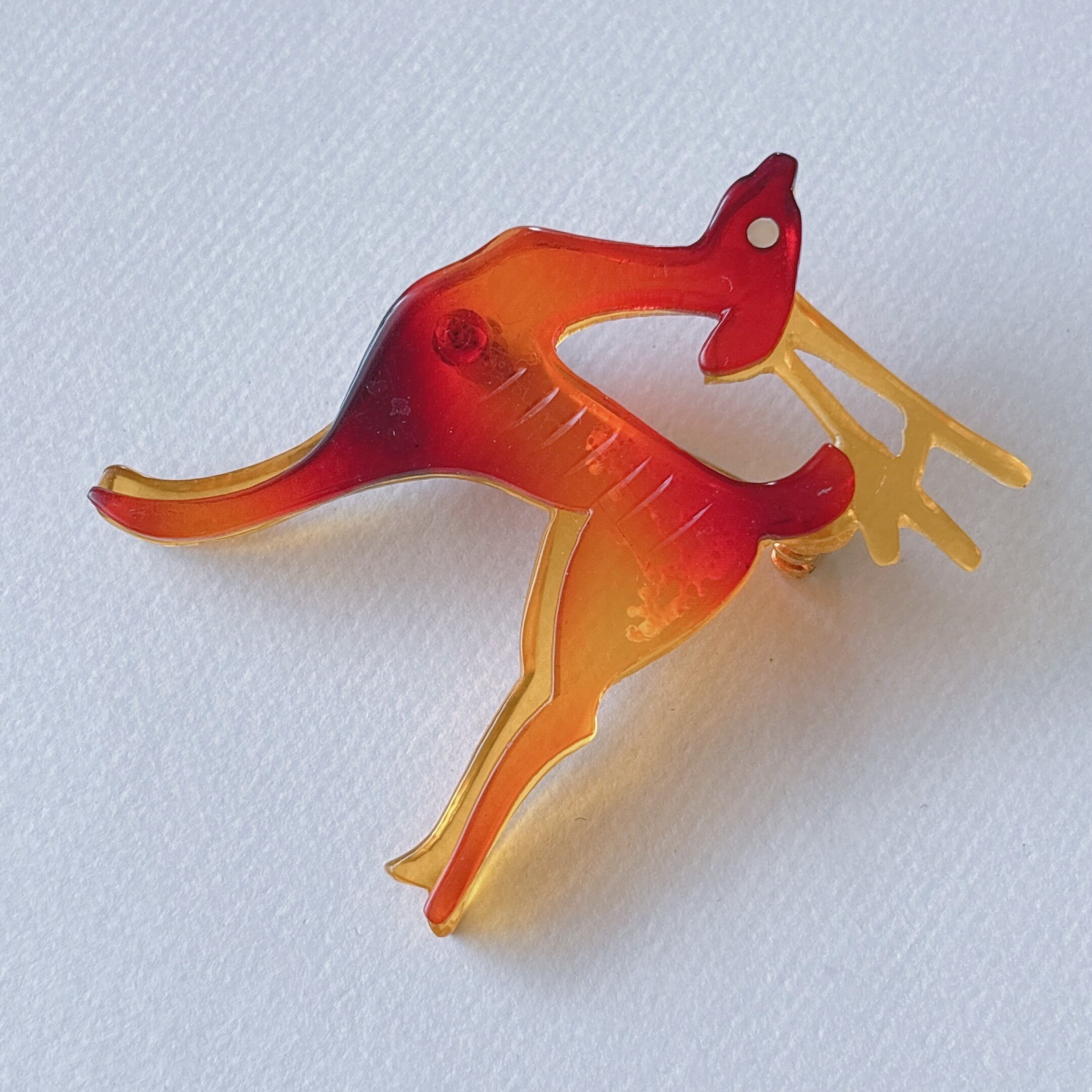Vintage yellow orange amber acrylic plastic deer brooch ヴィンテージ イエロー オレンジ アンバー アクリル プラスチック 鹿 ブローチ