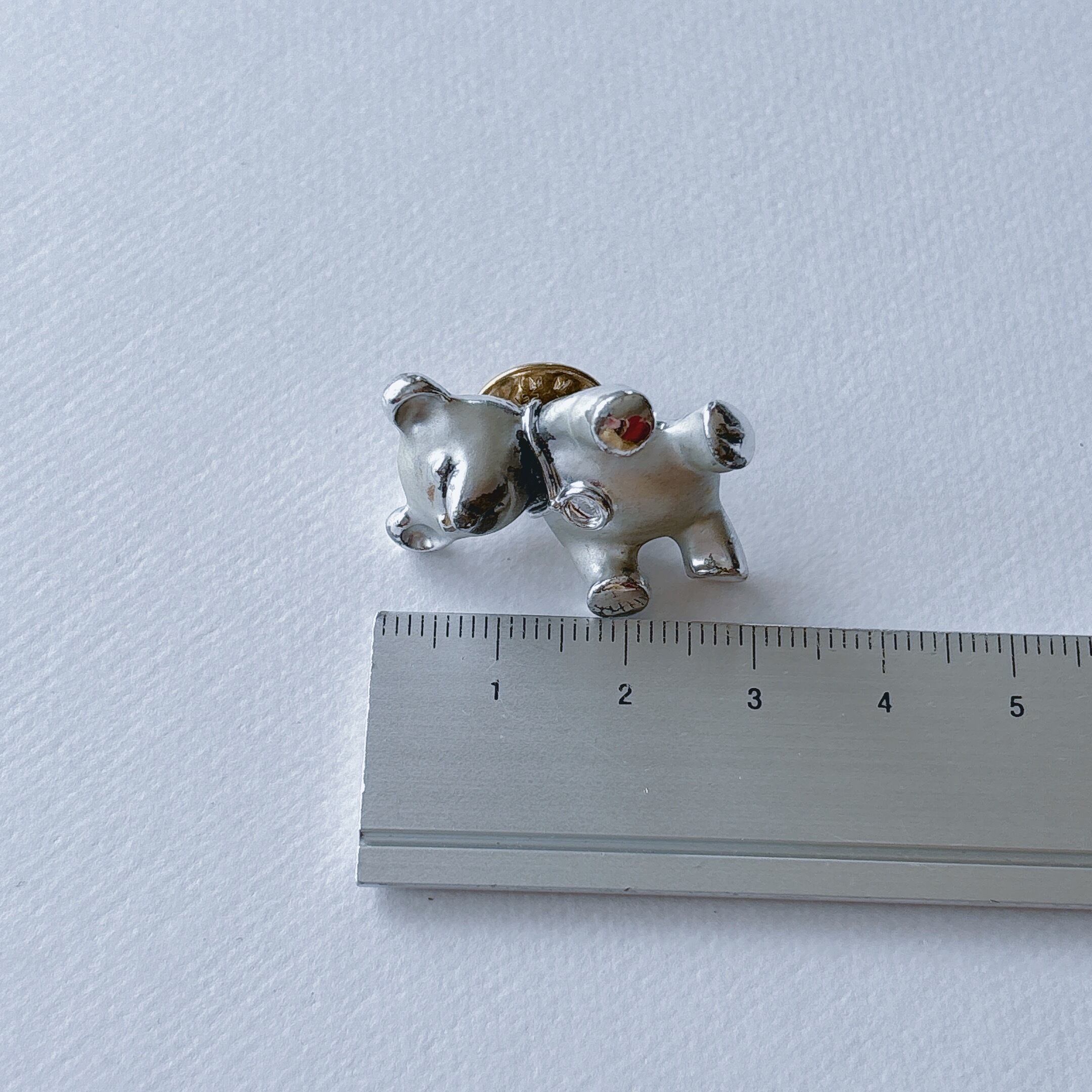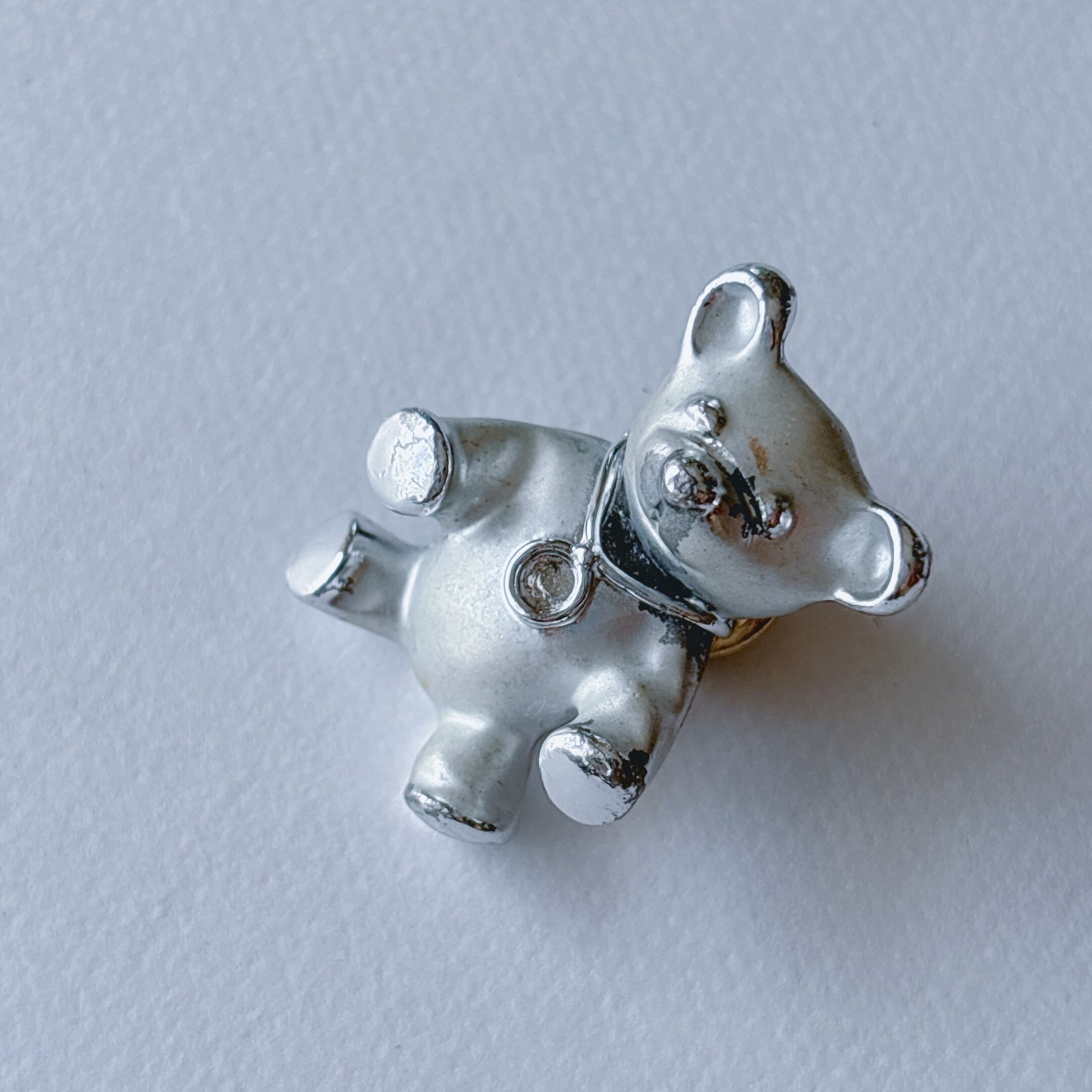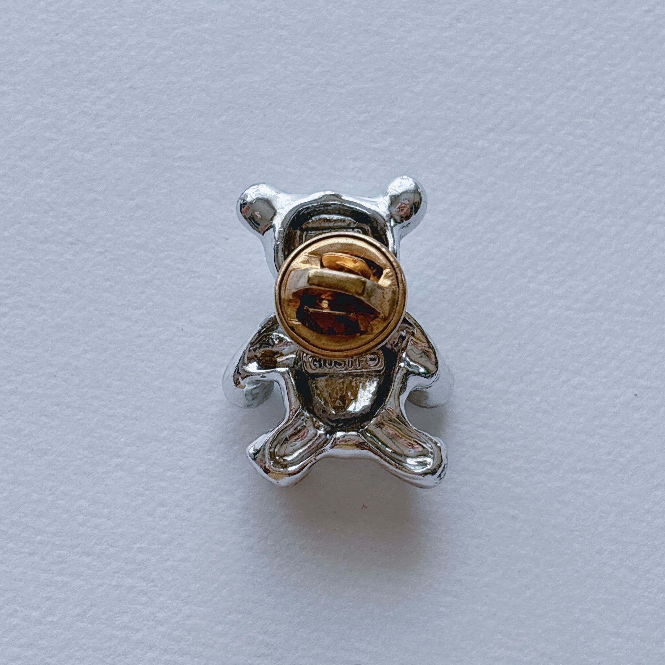 シルバーメタルのテディベアモチーフ。