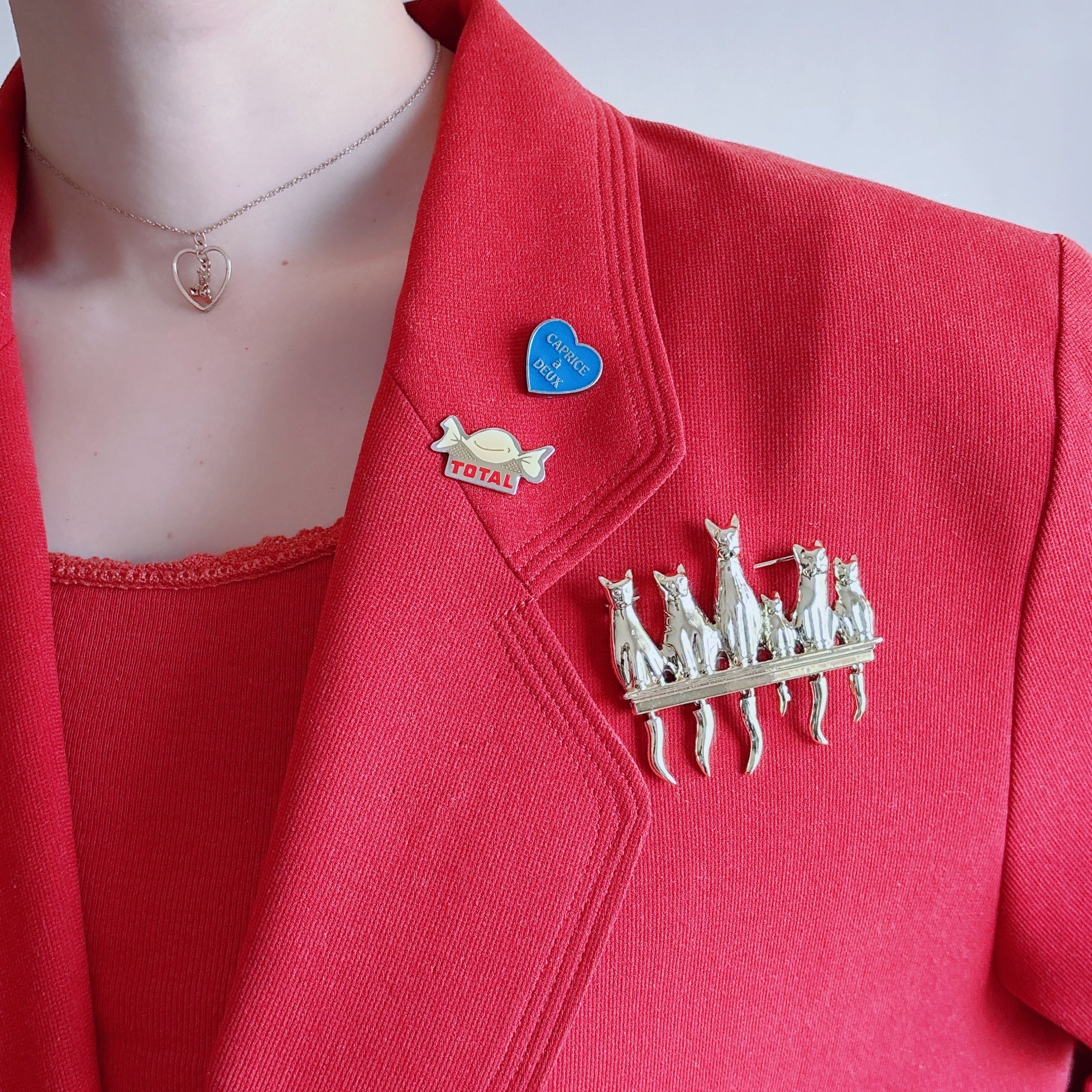 AJC Vintage 80s gold tone cats brooch ヴィンテージ 80年代 ゴールドトーン 猫 ブローチ