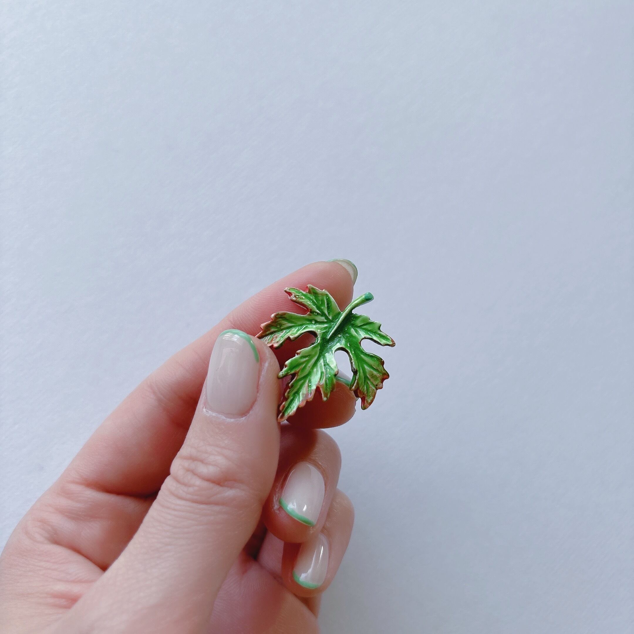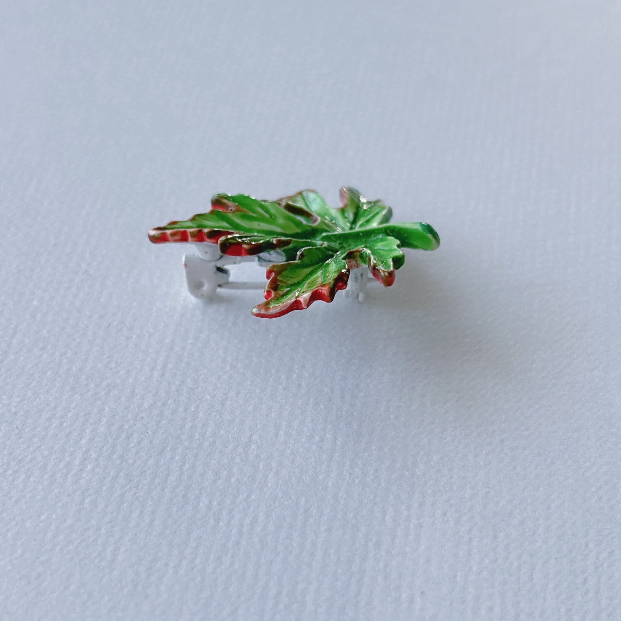 GERRY'S Vintage 60s - 70s green brown enamel maple leaf brooch ヴィンテージ 60年代 - 70年代 グリーン ブラウン エナメル メープル リーフ 葉っぱ ブローチ