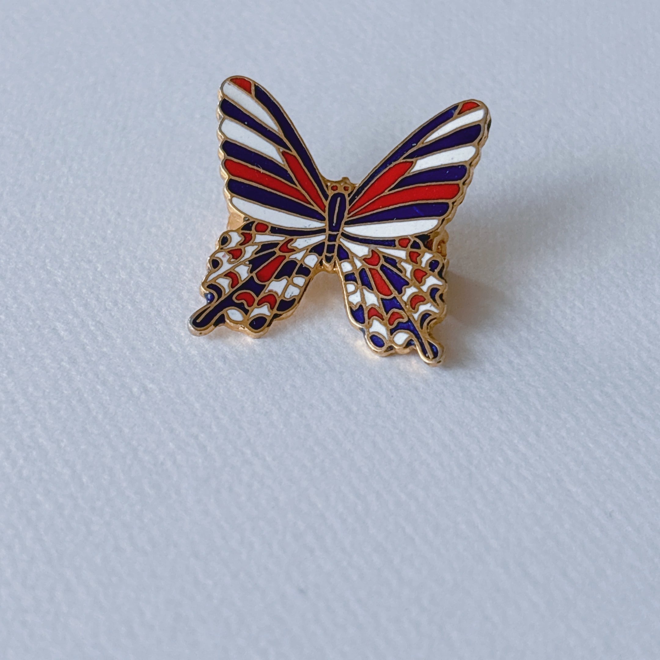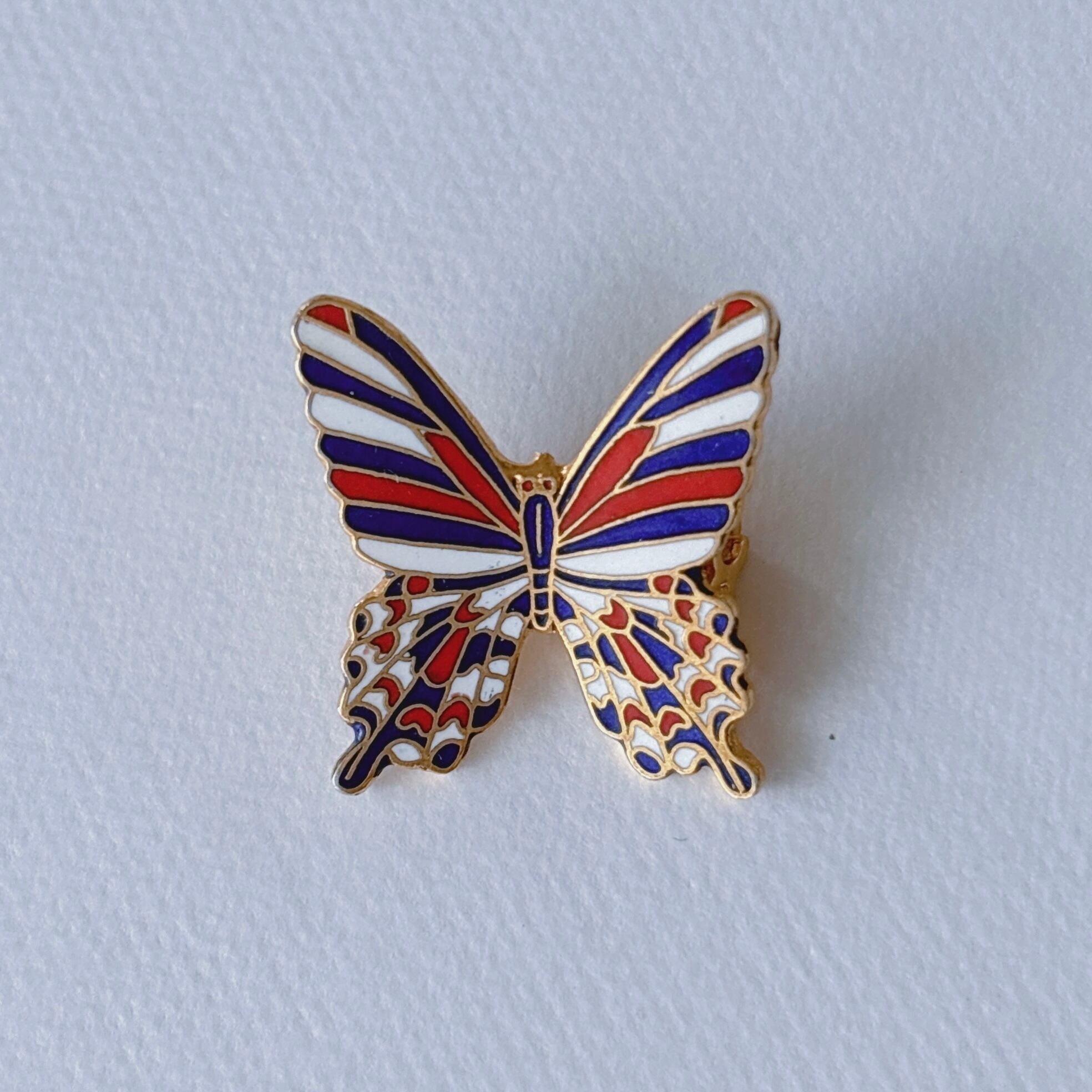 AVIVA Vintage 70s - 80s TAIWAN gold tone red white blue enamel butterfly brooch ヴィンテージ 70年代 - 80年代 台湾製 ゴールドトーン レッド ホワイト ブルー エナメル バタフライ 蝶々 ブローチ