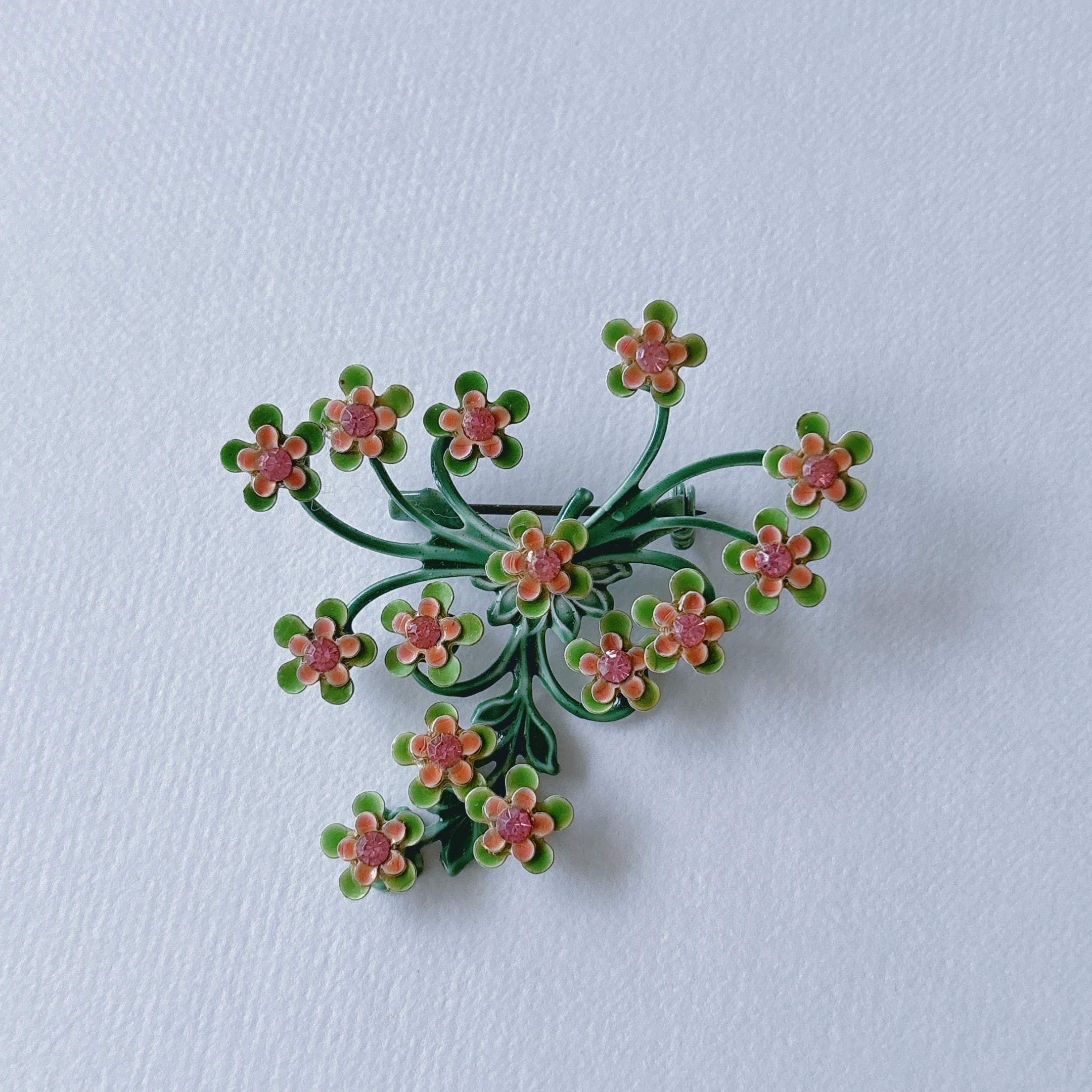 Vintage 50s - 60s green pink enamel flower brooch ヴィンテージ 50年代 - 60年代 グリーン ピンク エナメル フラワー 花 ブローチ