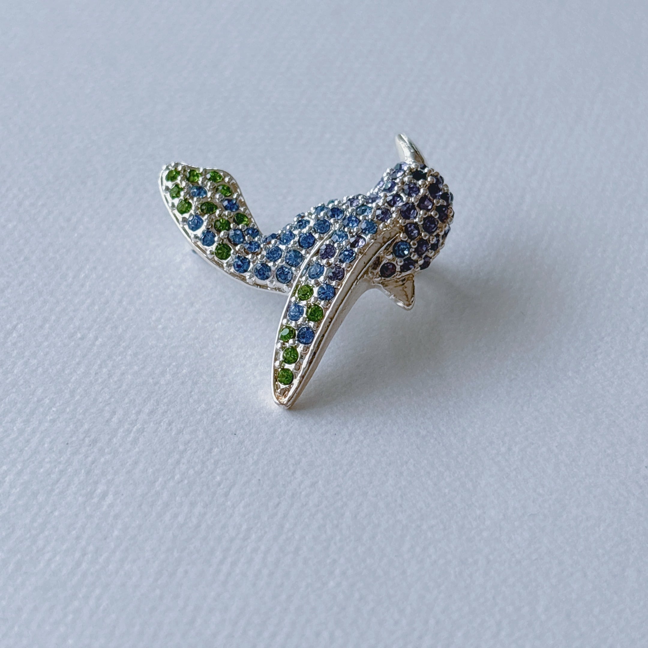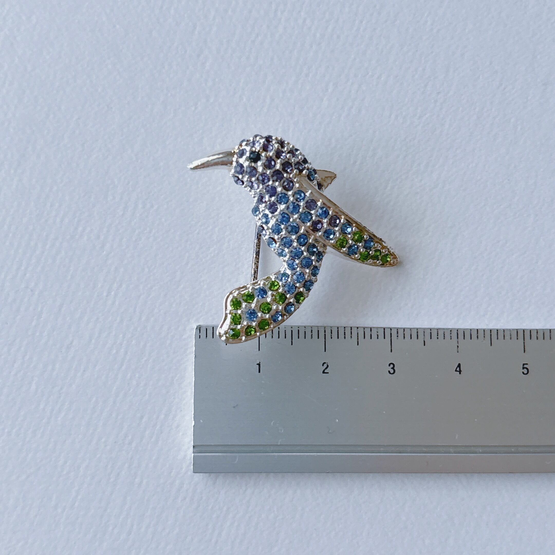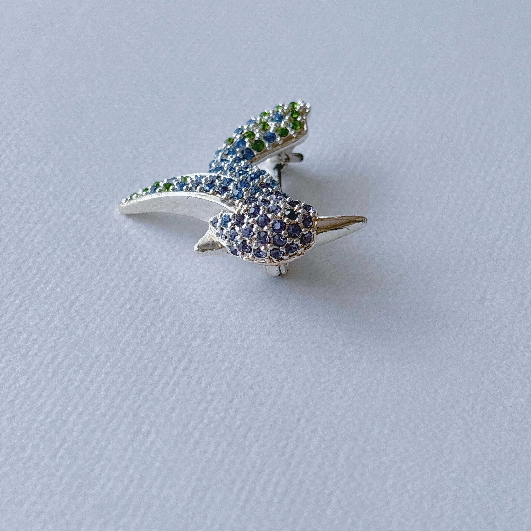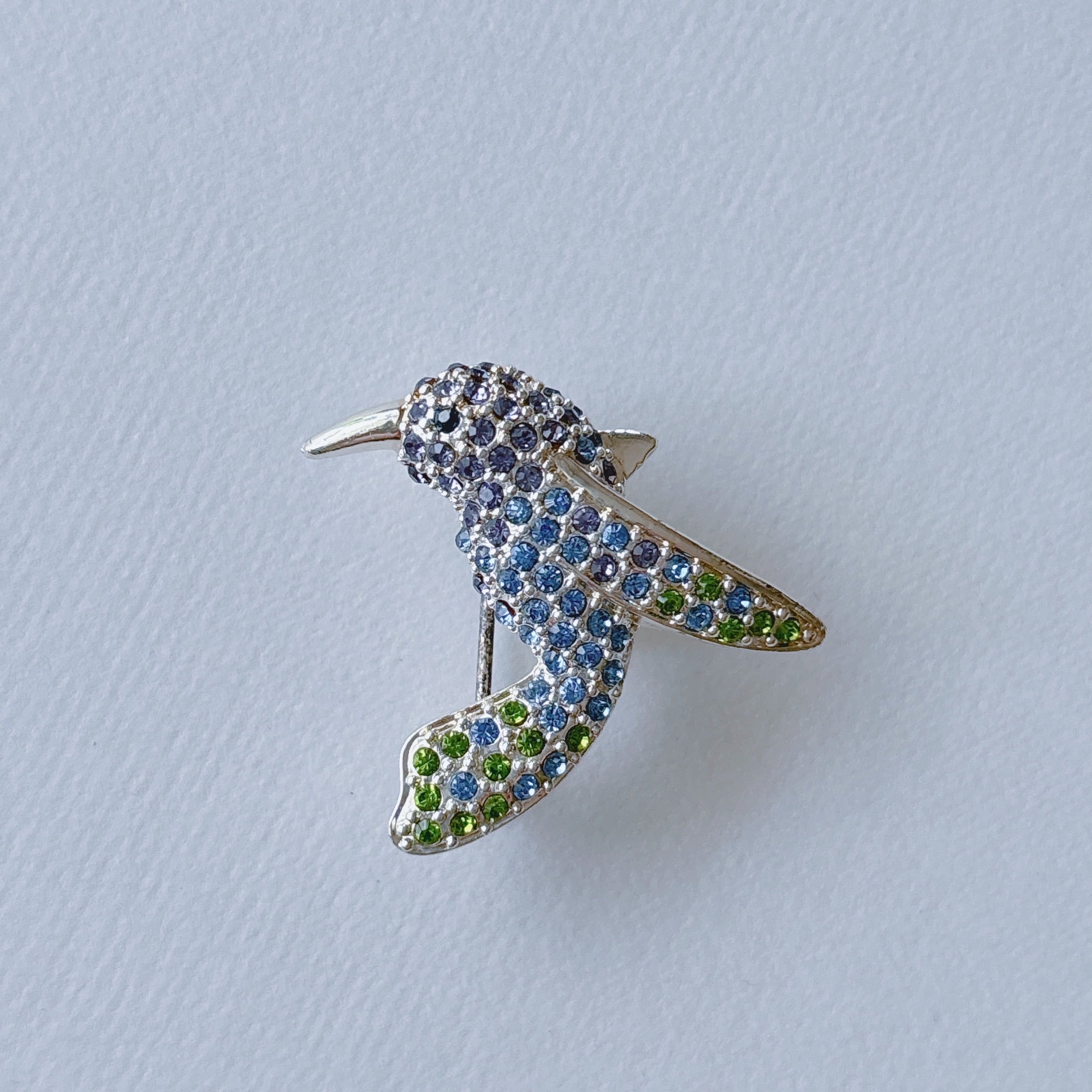 MONET Vintage 80s silver tone blue green rhinestone bird hummingbird brooch ヴィンテージ 80年代 シルバートーン ブルー グリーン ラインストーン 鳥 ハチドリ ハミングバード ブローチ