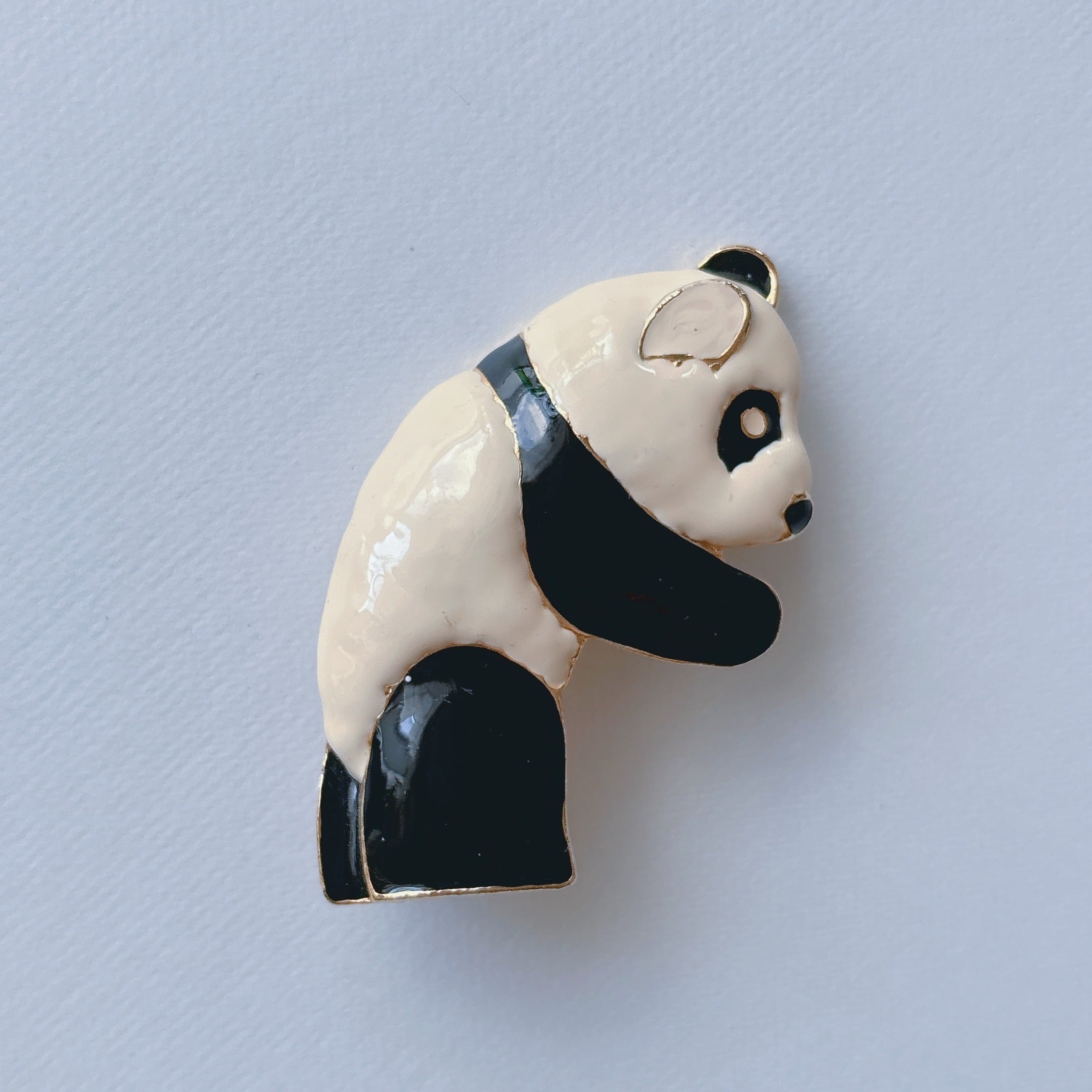 Vintage 80s white ivory black enamel panda brooch ヴィンテージ 80年代 ホワイト アイボリー ブラック エナメル パンダ ブローチ