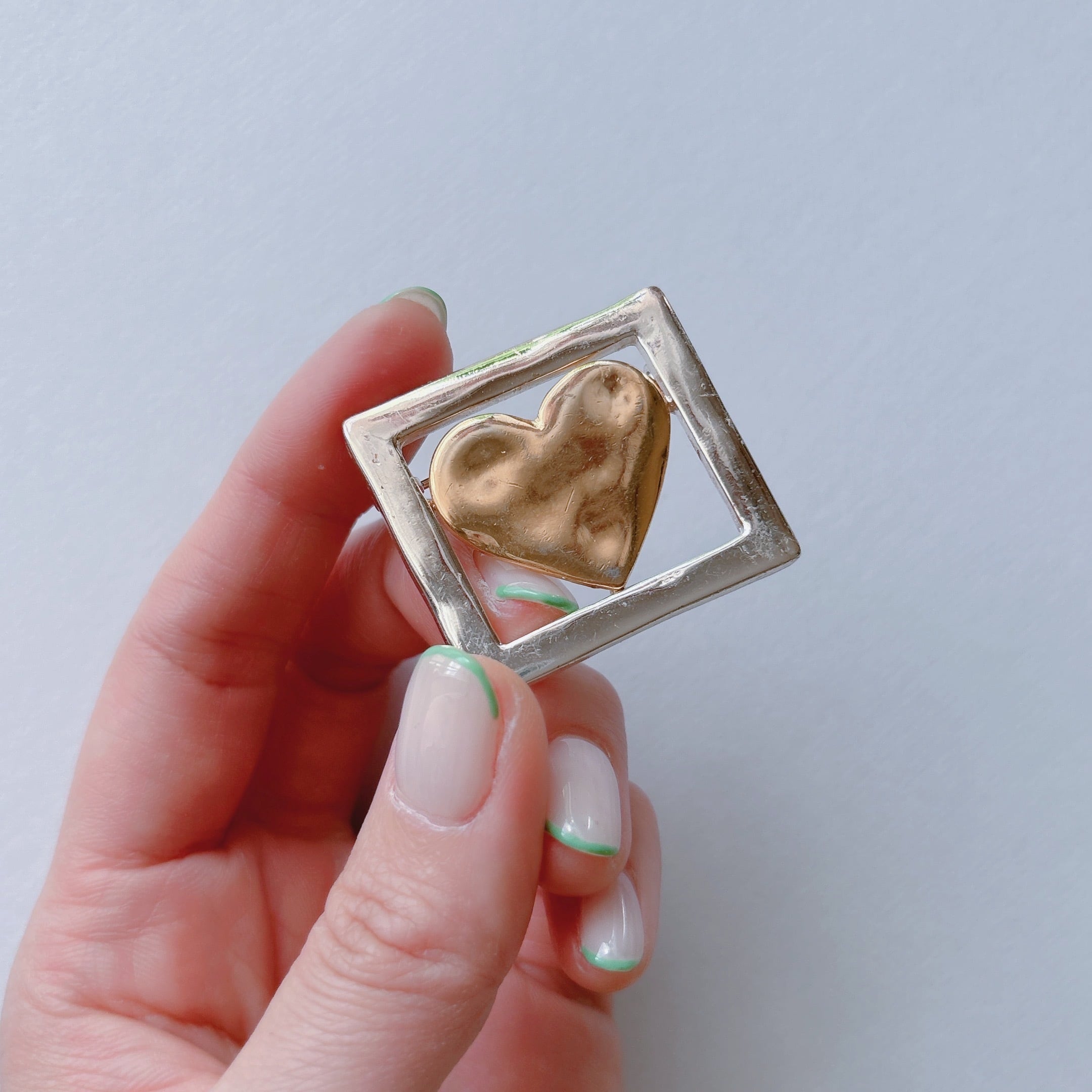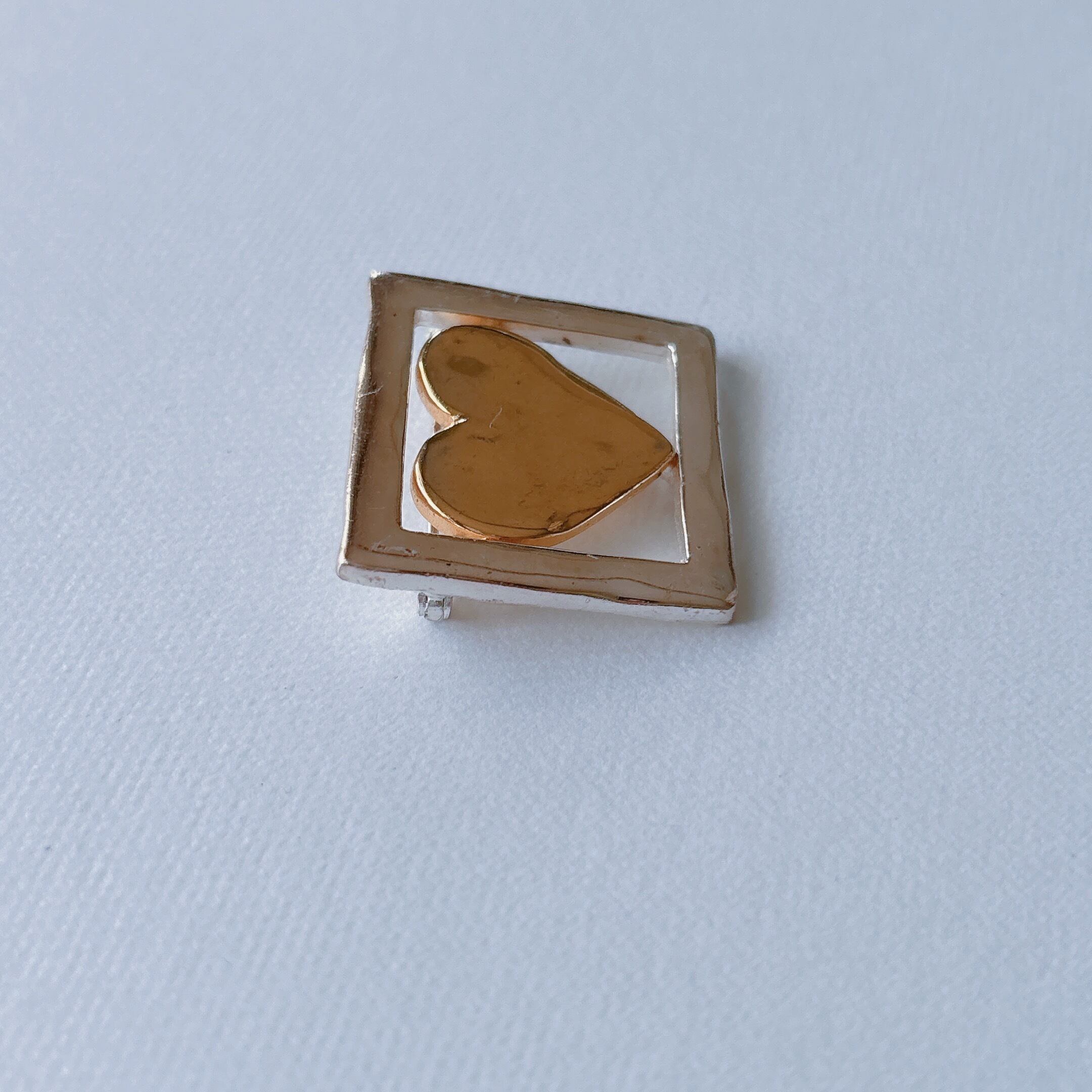 Vintage 80s - 90s silver gold tone square heart brooch ヴィンテージ 80年代 - 90年代 ゴールド シルバー スクエア ハート ブローチ