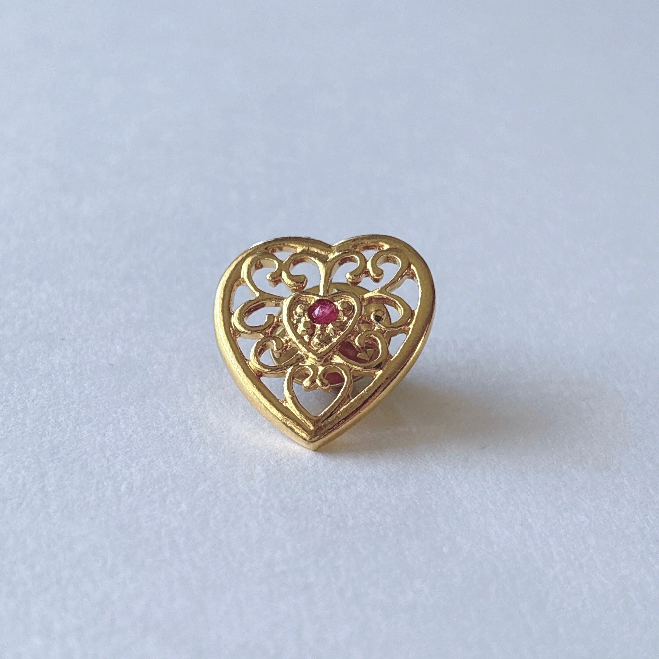 Vintage 80s - 90s gold tone filigree heart brooch pin ヴィンテージ 80年代 - 90年代 ゴールドトーン フィリグリー ハート ブローチ ピンズ ピンバッジ