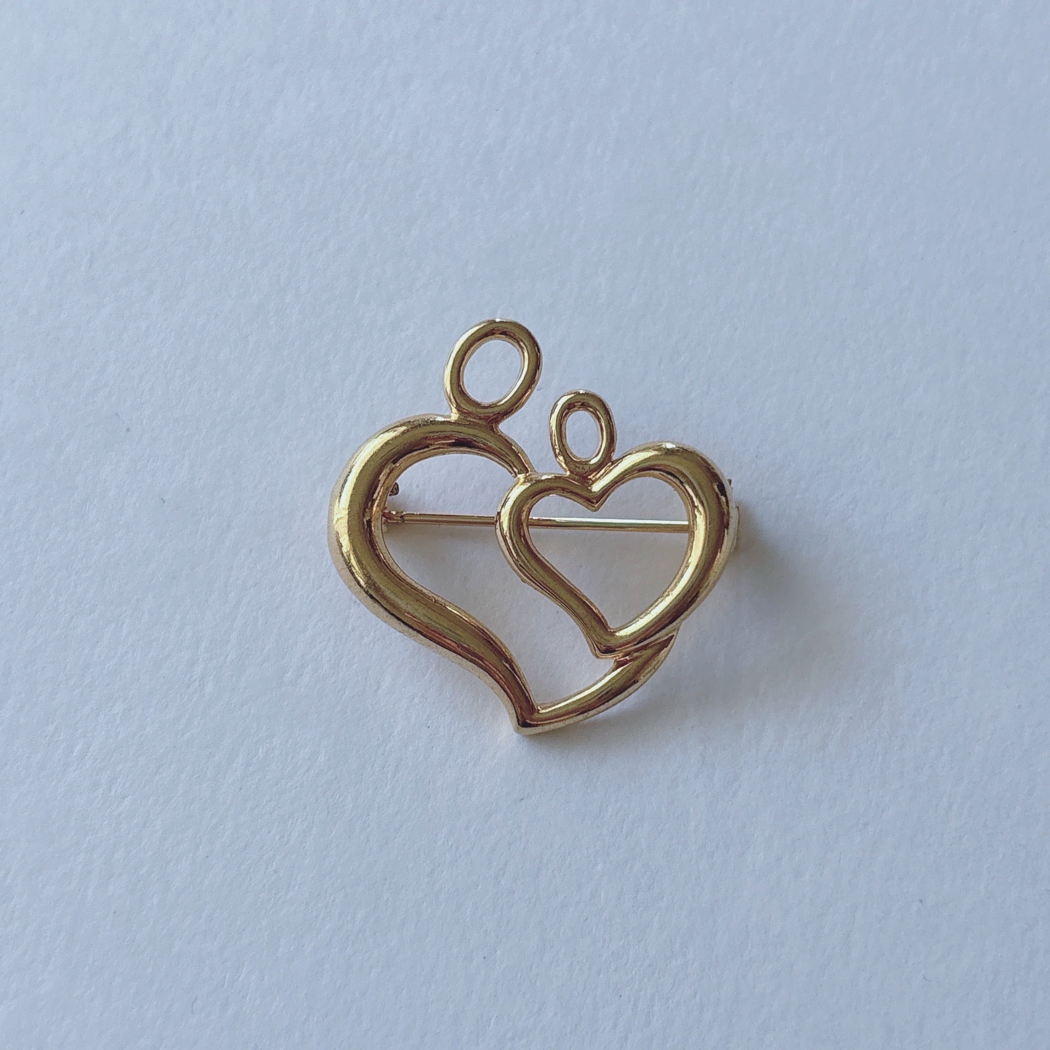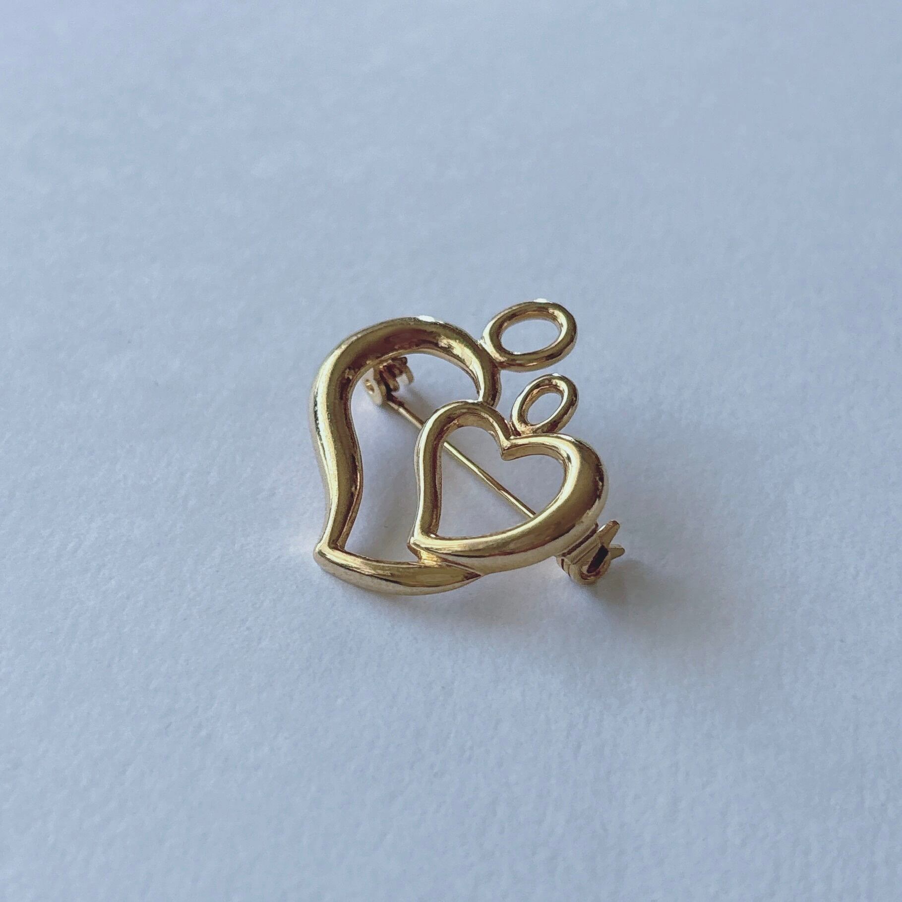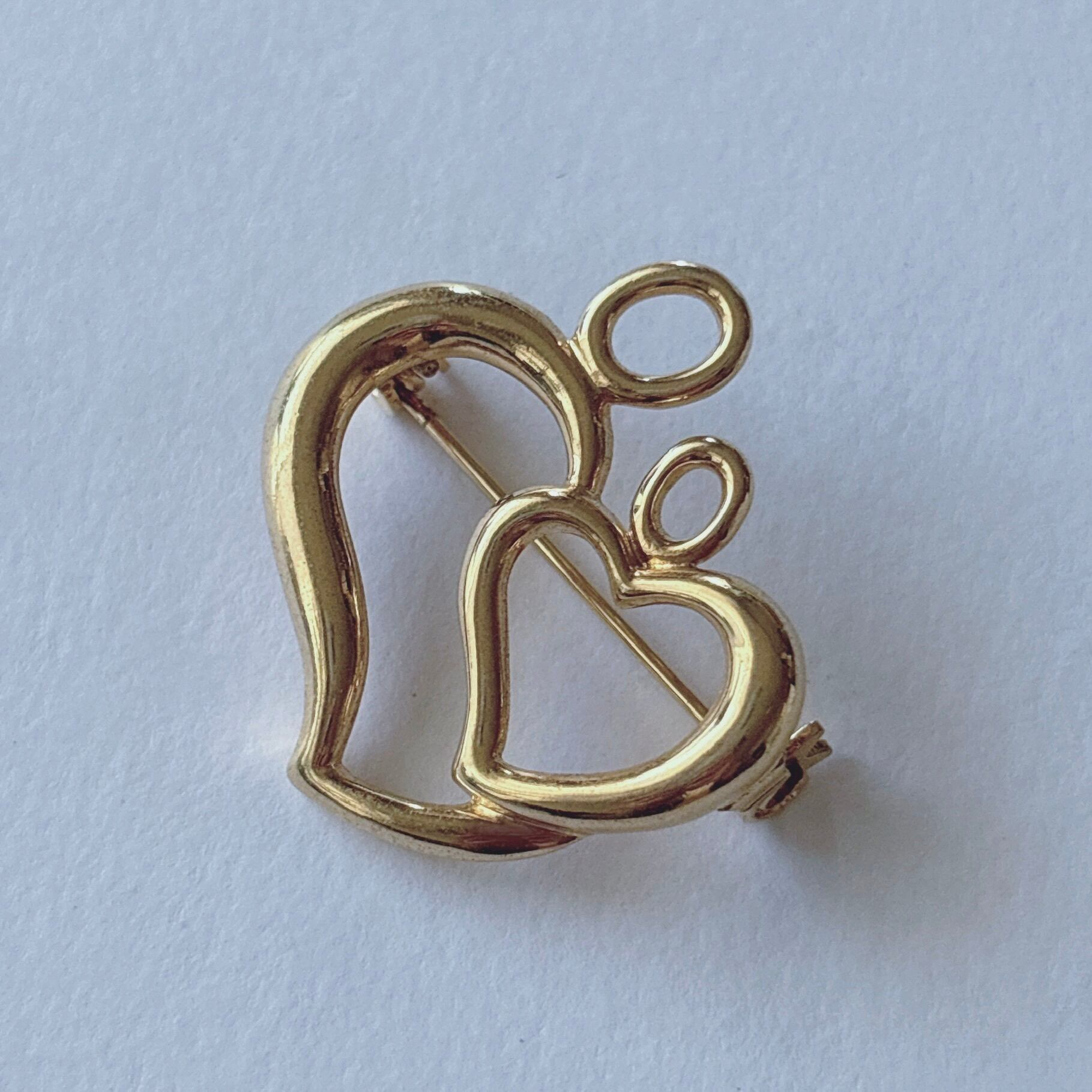 Vintage 80s - 90s gold tone double heart brooch ヴィンテージ 80年代 - 90年代 ゴールドトーン ダブル ハート ブローチ