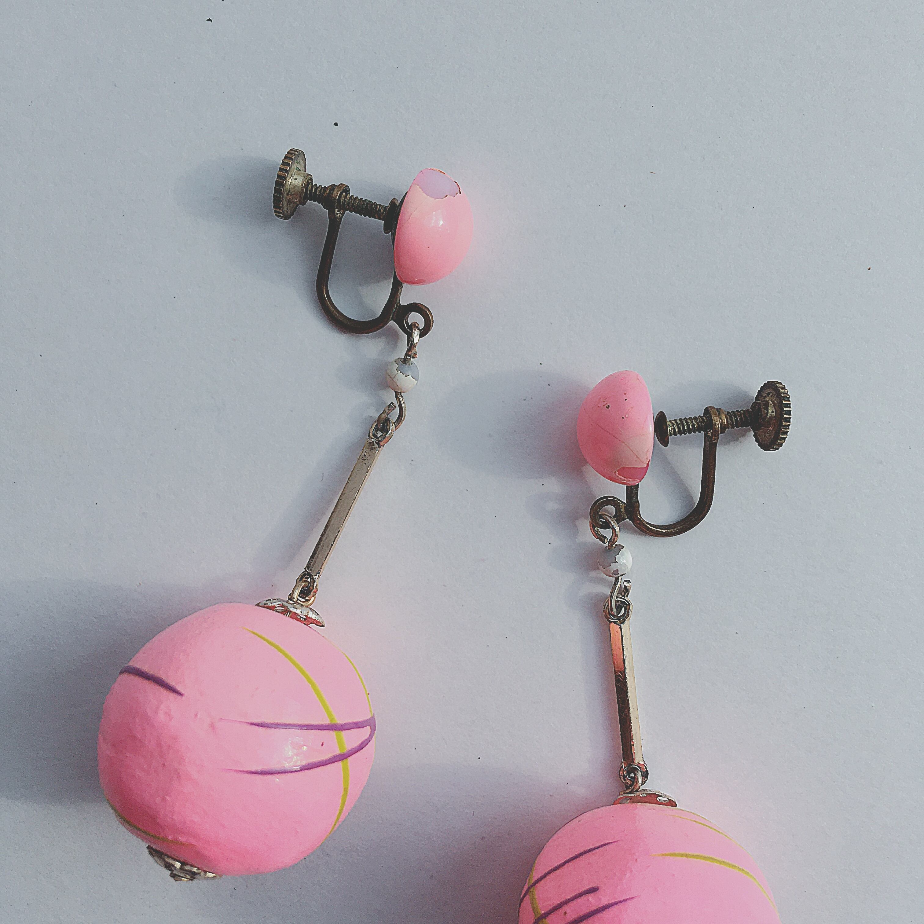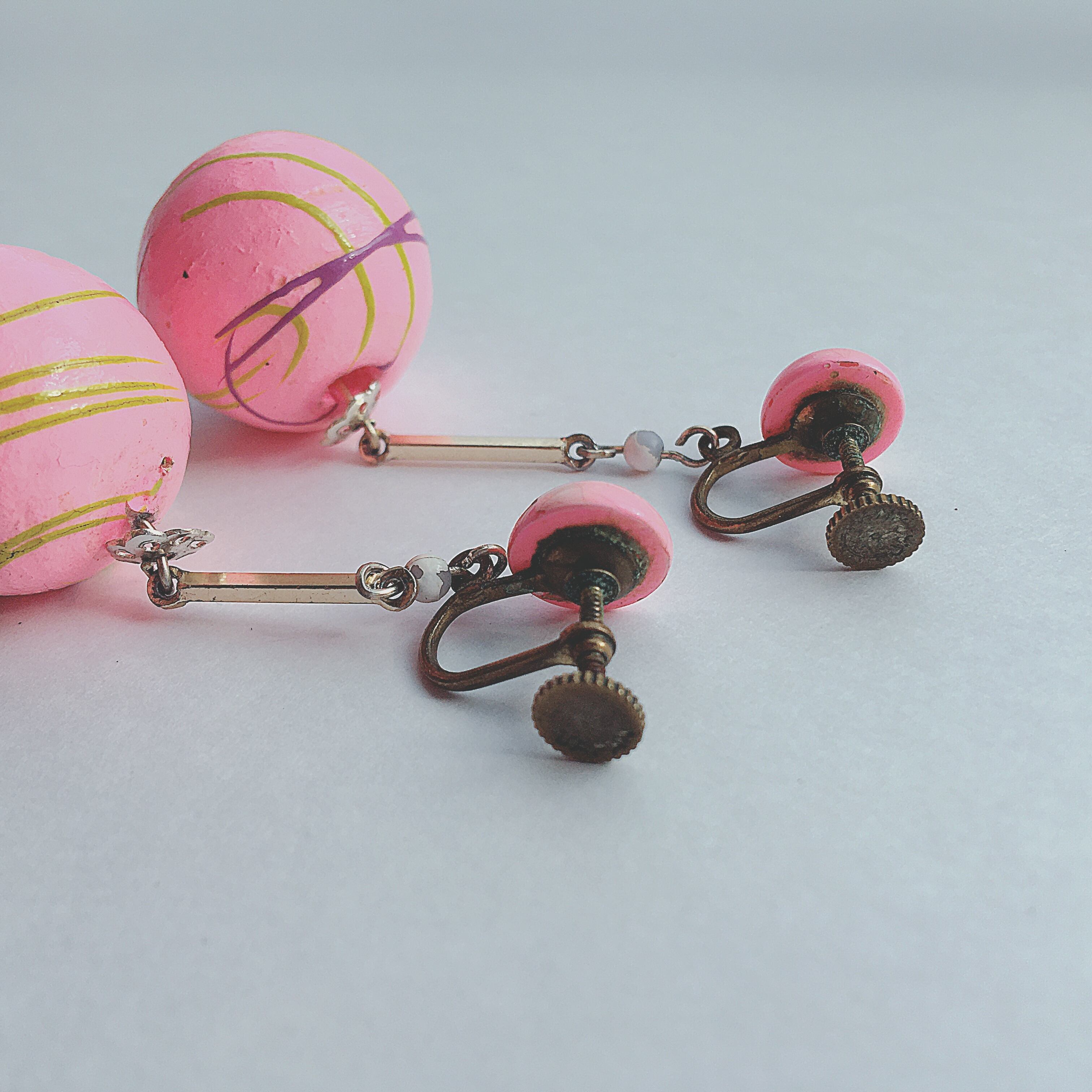 Vintage 80s Japan pink dangle earrings ヴィンテージ 80年代 日本製 ピンク ダングルタイプ イヤリング b819