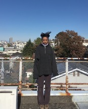 暗めの色味のお洋服にバチッと生えるピンクがとてもキュートです。