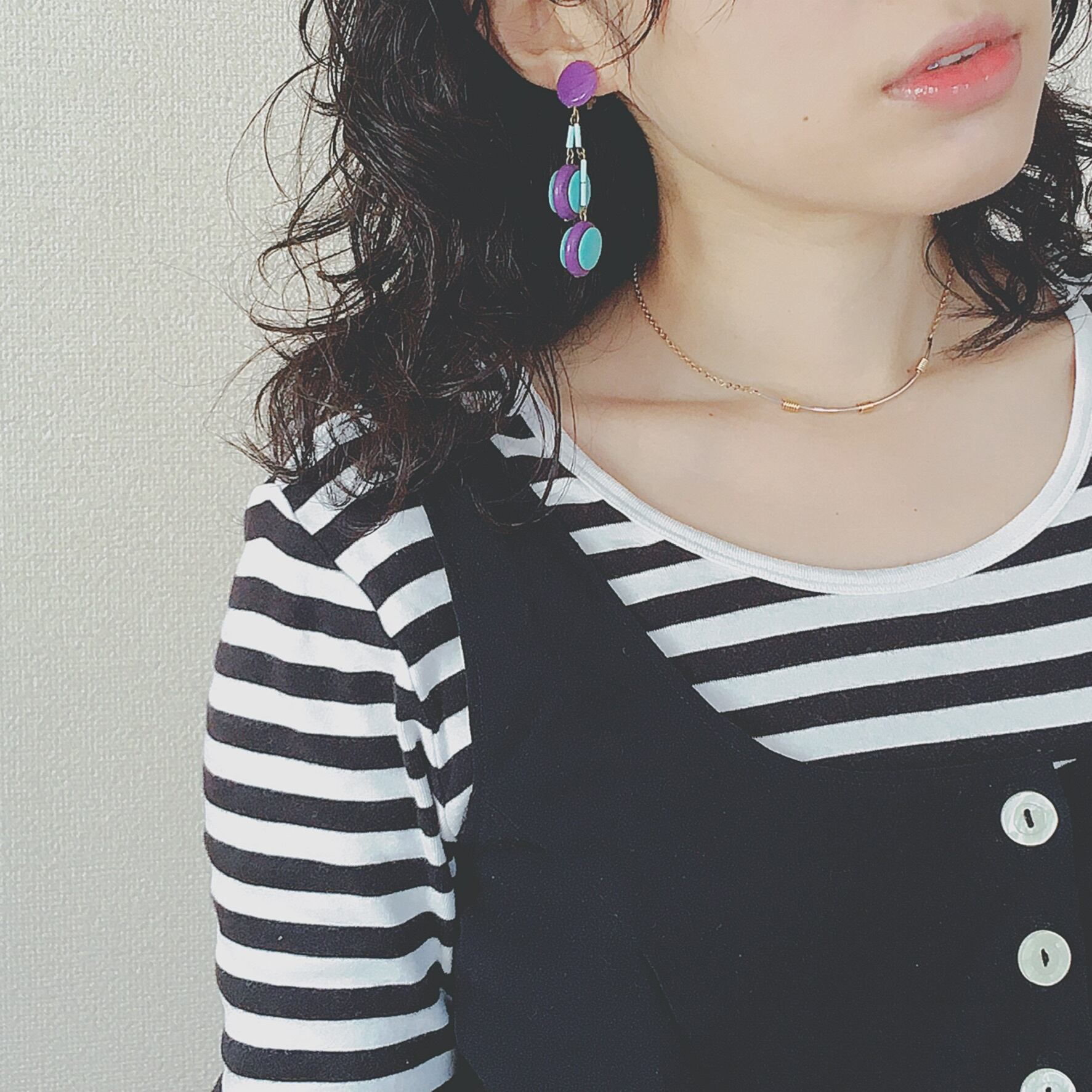 細いブルーのビーズの長さを変えて繋げているのがラブリー!