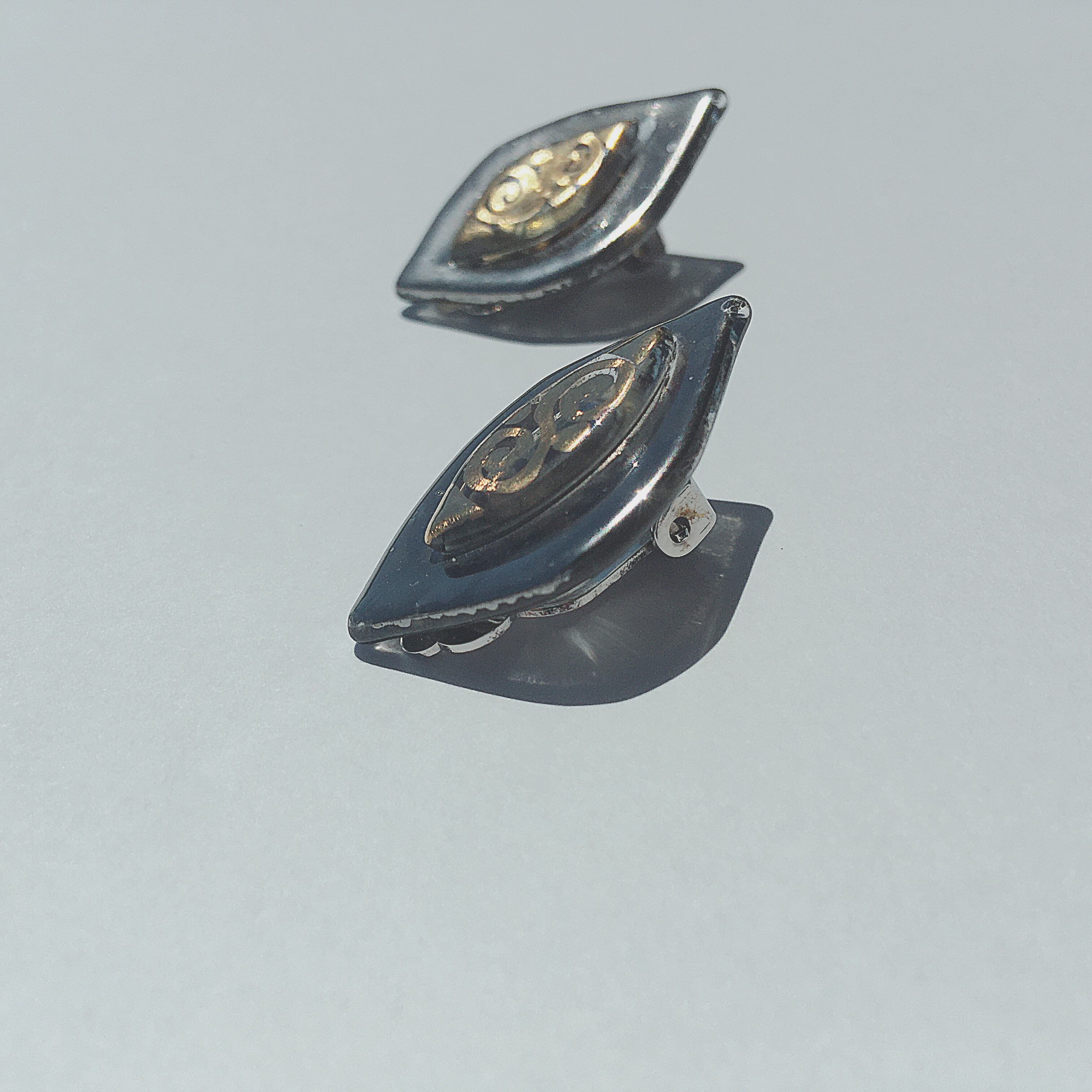 Vintage silver tone clear glass gold paint earrings ヴィンテージ シルバー クリア ガラス ゴールド ペイント イヤリング b324 | OBAKEPEACH