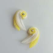 Vintage 50s - 60s Germany yellow × white soft plastic feather earrings ヴィンテージ 50年代 60年代 ドイツ製 イエロー ホワイト ソフトプラスチック フェザー 羽根 イヤリング b310 | OBAKEPEACH