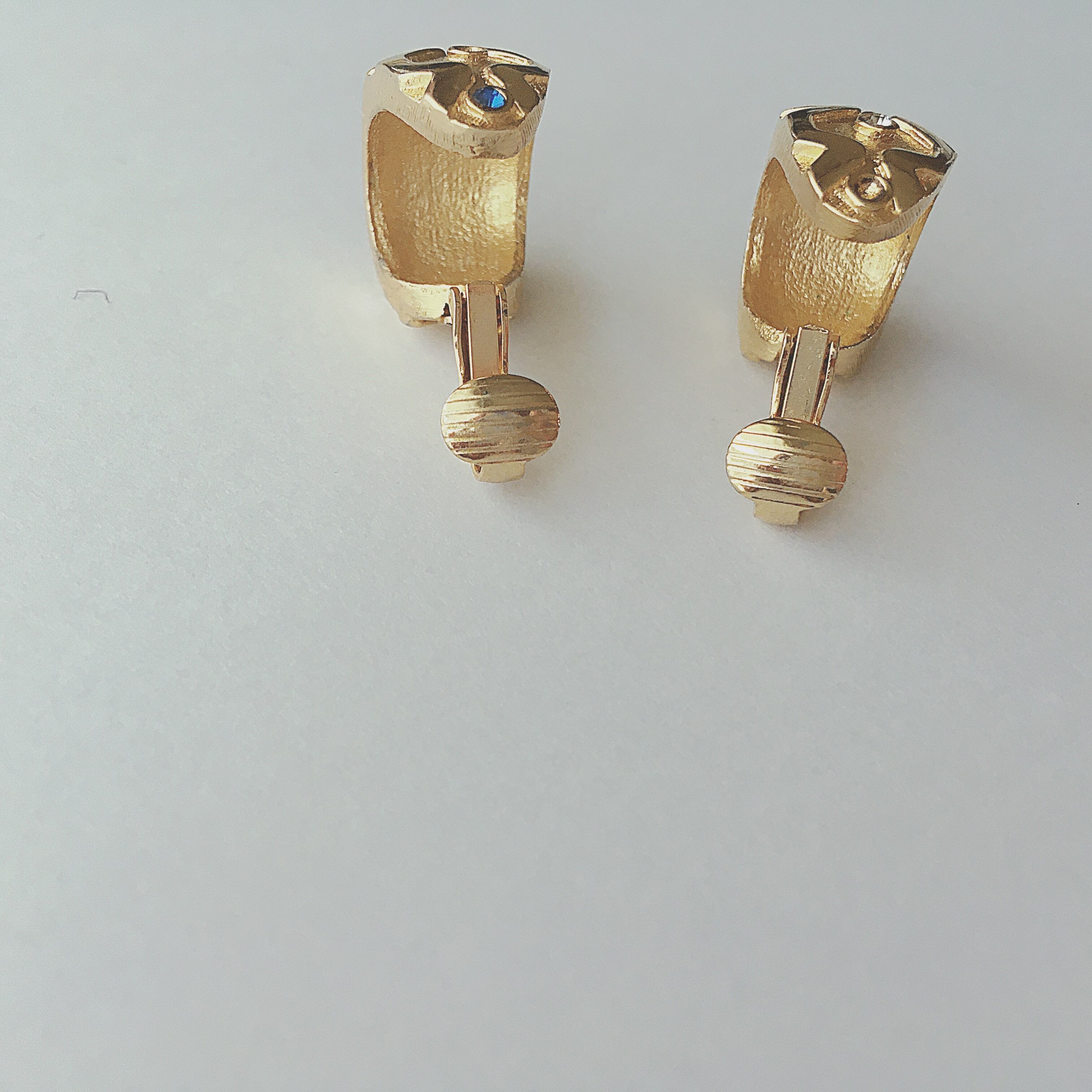Vintage gold tone red blue clear rhinestone earrings ヴィンテージ ゴールドトーン レッド ブルー クリア ラインストーン イヤリング b296 | OBAKEPEACH